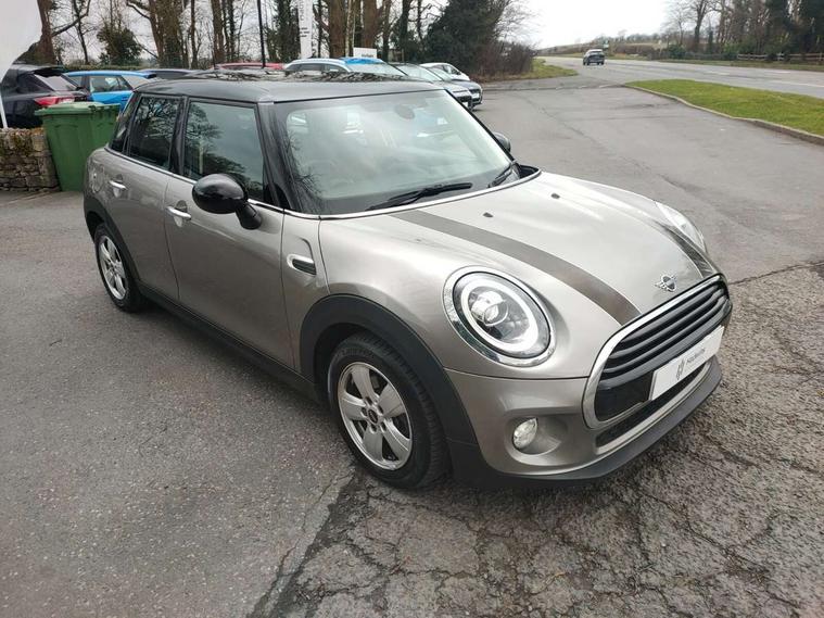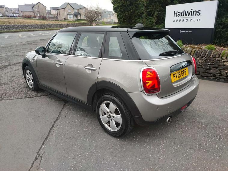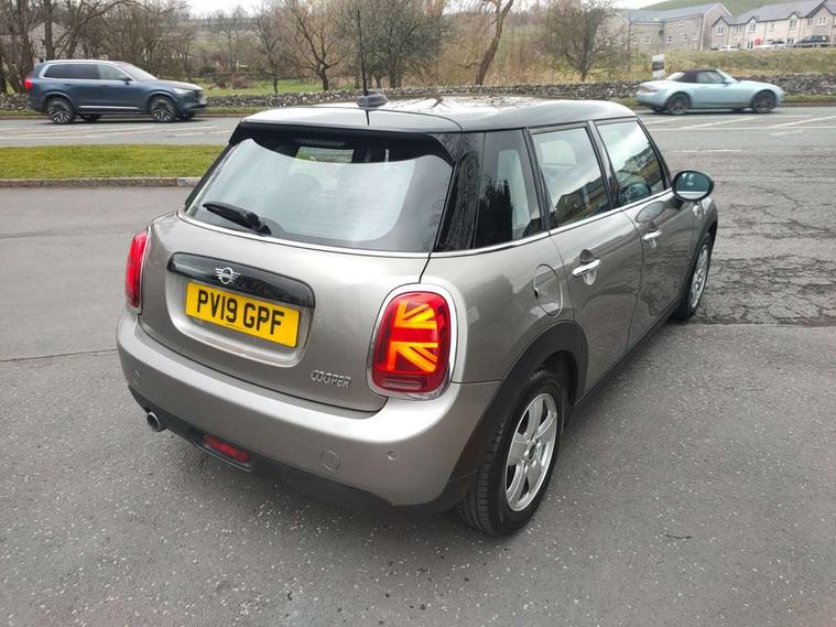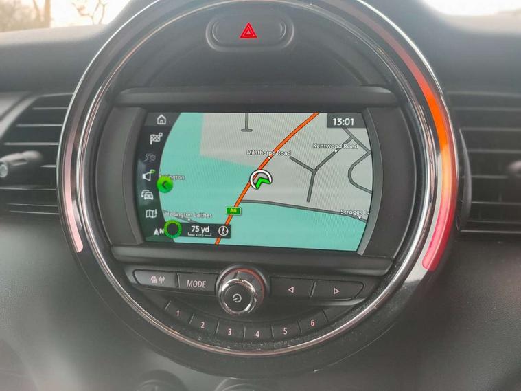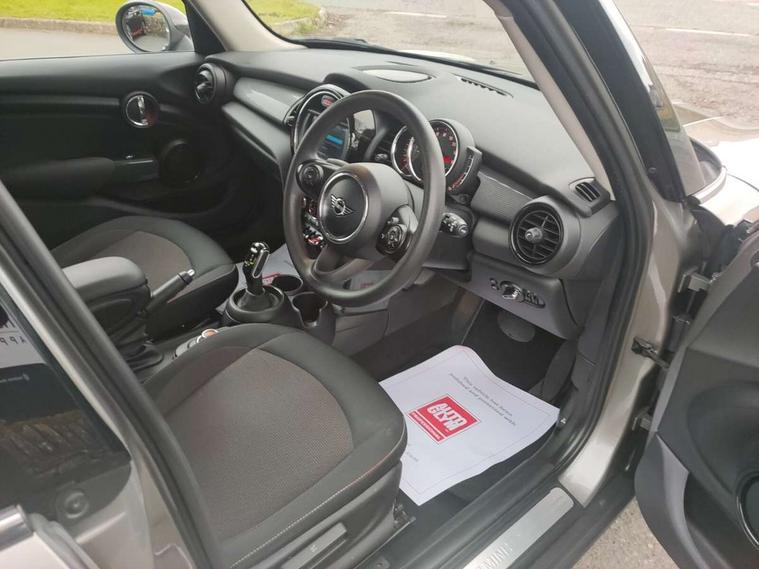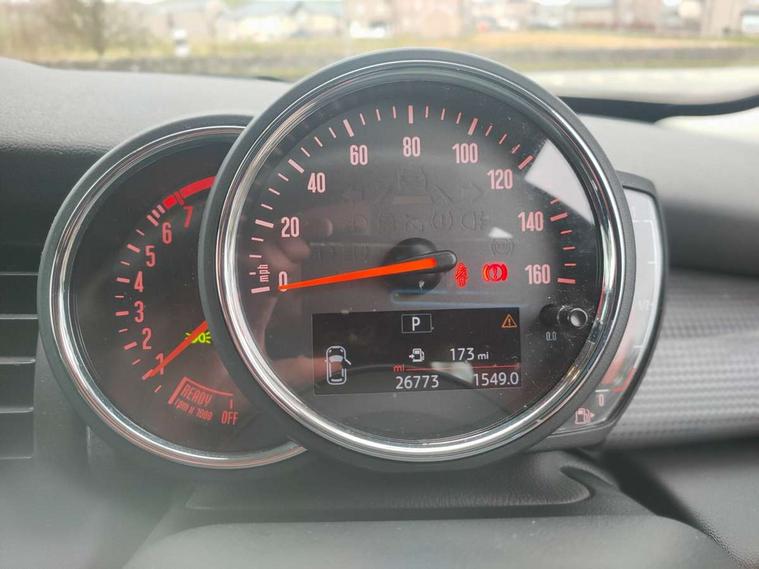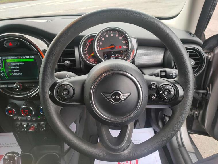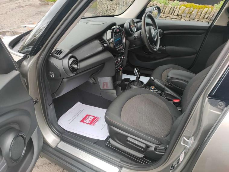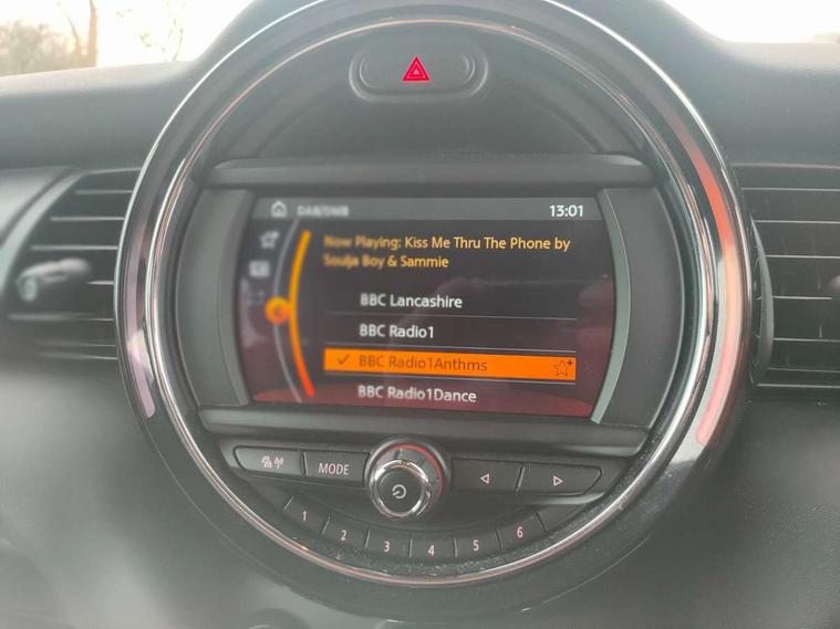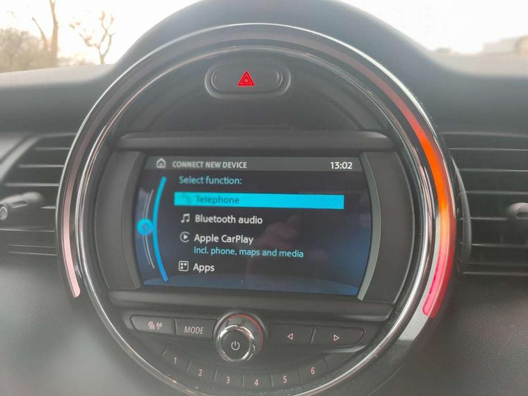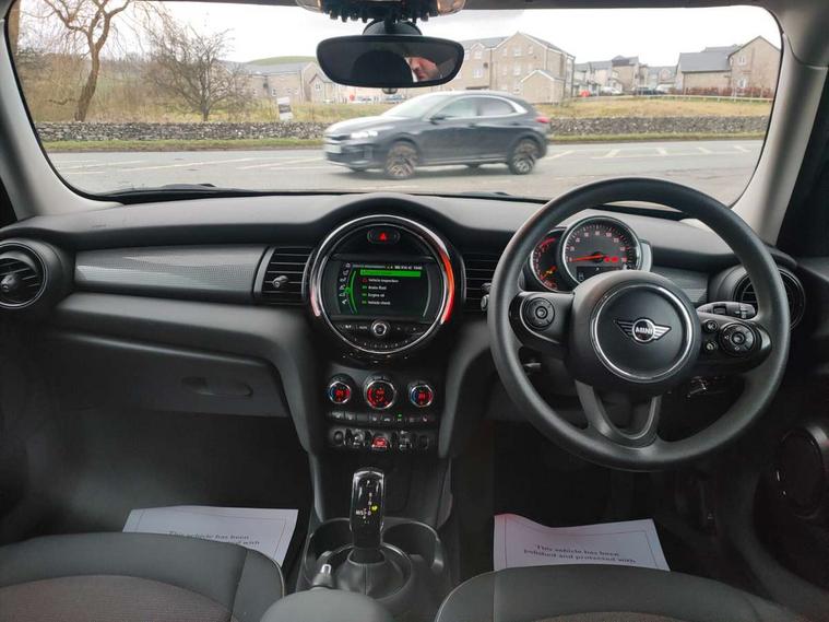 Compatible mobile phone bluetooth with audio streaming, Instrument cluster, Mini E-call, MINI TeleServices, On board computer, Service interval indicator, Steptronic transmission with double clutch, 6.5" touchscreen with LED ring, FM tuner and DAB digital radio, Automatic headlight activation switch, Body colour fuel filler cap, Chrome border high gloss black slats radiator grille, Dynamic brake lights, Electric front+rear windows, Heated rear window, Heated windscreen washer jets, LED headlight with closed ring and daytime driving lights, Left exhaust tailpipe with chrome finisher, Metal door sill strips with MINI imprint, Model logo Cooper on right of tailgate, Rain sensor window wipers, Rear fog lights, Rear LED lights with union jack design, Rear window wiper, Side scuttle panel with integrated indicator, Sun/heat protection glass, White indicator lenses, 12V Accessory socket in centre console, 4 lashing eyes in luggage compartment, 60/40 split folding rear seat, Chrome interior highlights, Colour line - Carbon black, Cupholders, Front and rear isofix with front passenger airbag deactivation, Glove compartment, Height and length steering column adjustment, Interior lighting with 12 basic colours selectable via toggle switch in roof, Leather gearshift lever and handbrake gaiters, LED reading lights, vanity mirror lights, front foot well light and spotlight on front seats, Manual air conditioning, Mechanical seat adjustment, driver seat height adjust, forward/back and front seats backrest, Mini logo projection on floor from drivers exterior mirror, Multifunction steering wheel, Satellite grey headlining, Storage compartments in doors, Sunvisors with vanity mirrors, 3 point seatbelts on all five seats, 6 Airbags - front, side, head and seat belt tensioners, Anti-lock braking system (ABS), DSC - Dynamic Stability Control, Front and rear disc brakes, Hill start assist, Single tone fanfare horn, Tyre pressure monitoring system, Alarm system with tilt sensor, monitoring doors, bonnet interior and tailgate, Electronic vehicle immobiliser, Start/stop toggle with keyless go, Tool kit,
