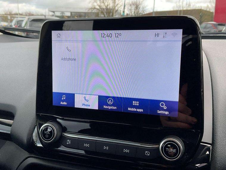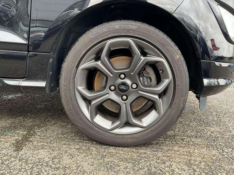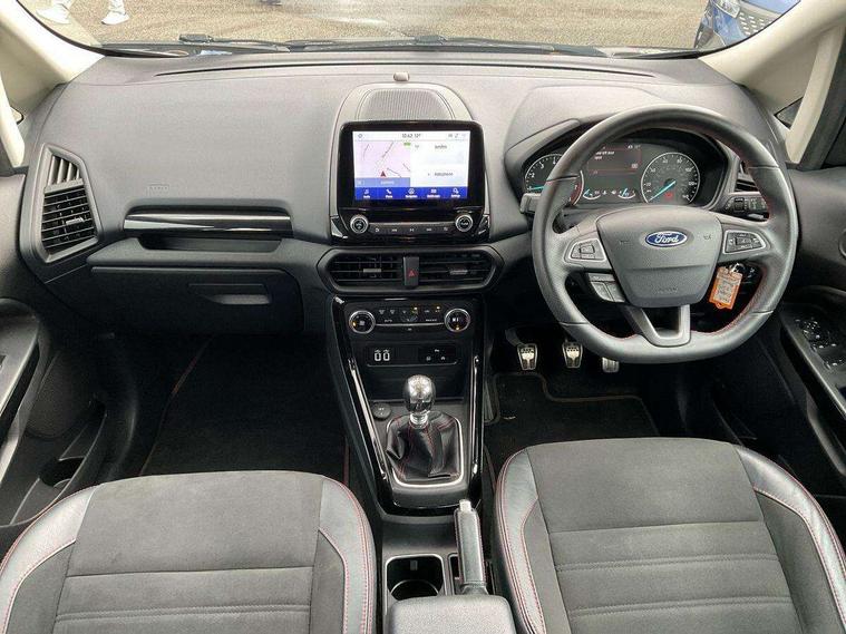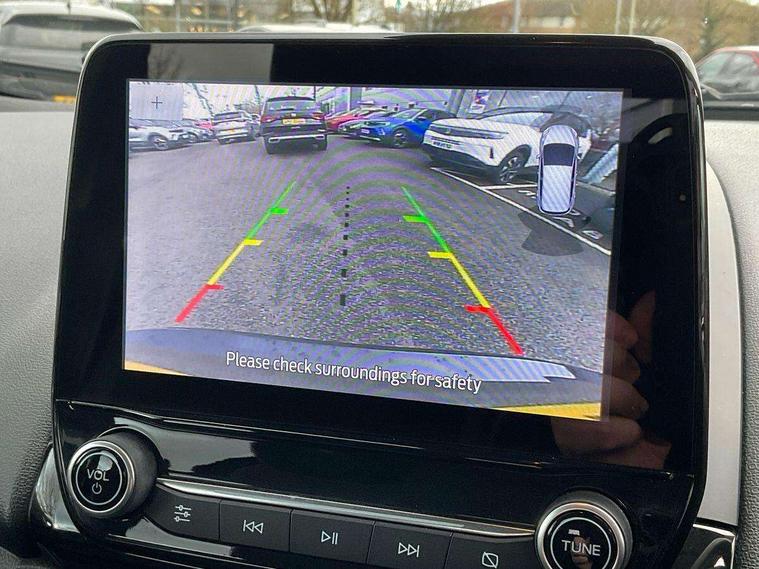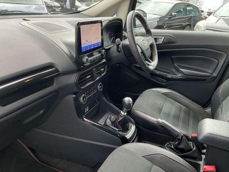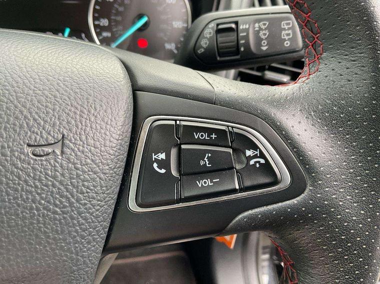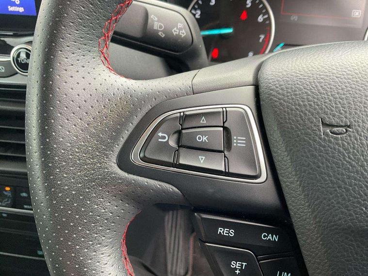 Cruise control with Intelligent speed assist, Easy fuel capless refuelling system, Ford pass connect embedded modem, PAS, Rear parking sensors and rear view camera, SYNC 3 nav system with DAB radio, 8" screen, voice control, emergency assistance, Apple car play/Android auto, 2x USB, Ford pass connect, Traffic sign recognition, Trip computer, Sports suspension, 7 speakers, Steering wheel mounted audio controls, 'Quickclear' heated windscreen/heated washer jets, Auto dimming rear view mirror, Automatic headlights, Black roof rails, Body colour door handles, Body coloured bumpers, Electrically adjustable and heated door mirrors, Front door threshold plates with ST-Line logo, Front fog lights, Headlight levelling control, Large rear spoiler, Power front and rear windows with global opening/closing, Rain sensing front wipers, Rear wiper, ST-Line body styling kit, ST-Line front grille, 12V socket in front and rear, 60/40 split rear seats, 7 shade adjustable ambient lighting, Centre console with sliding front armrest, Cooled glovebox, Courtesy lights with map reading light, Driver seat height/lumbar adjust, Driver's side glovebox, Driver/passenger sunvisors and lidded vanity mirrors, EATC - Electronic Auto Temperature control, Folding grab handles, Front head restraints, Front seat back map pockets, Front/rear floor mats, Illuminated glovebox, Illuminated luggage compartment, Isofix system on outer rear seats, Luggage compartment carpet, Overhead console with sunglasses holder, Partial leather upholstery, Rake adjustable rear seats, Reach + rake adjustable steering column, Rear headrests, Sensico trimmed steering wheel, handbrake and gearshift gaiter with red stitching, Stainless steel sports pedals, Storage drawers under front seats, Tie down hooks, Variable boot floor, 3x3 point rear seatbelts, ABS, Autonomous emergency braking, Child locks on rear doors, Curtain airbags, Driver airbag, Drivers knee airbag, Electronic Stability Programme with hill launch assist, Front passenger airbag deactivation, Front side airbags, Passenger airbag, Pre collision assist system, Seatbelt reminder for driver and front passenger, Traction control, Tyre pressure monitoring system, Immobiliser, MyKey system, Remote central locking, Thatcham 1 volume sensing alarm, Low rolling resistance tyres, Tyre inflation kit,