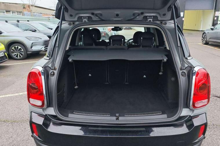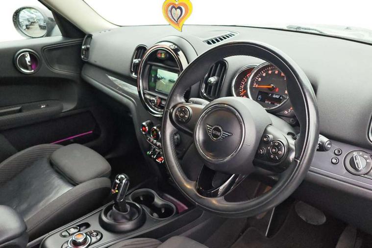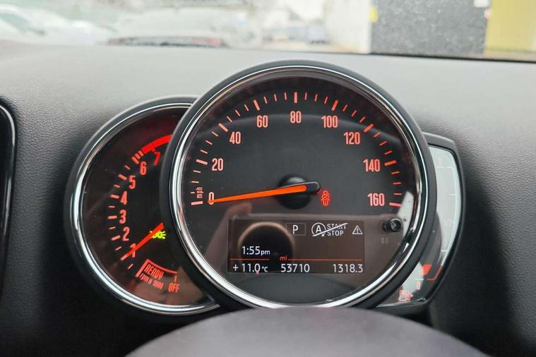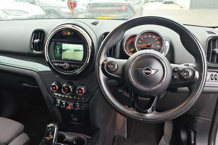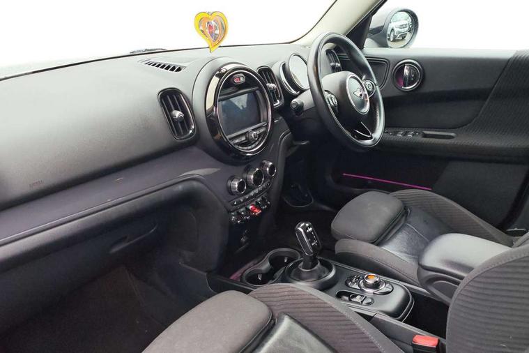 Active Guard incl speed limiting and lane departure functions with auto steering, and front collision warning with brake intervention, Automatic start/stop function with brake energy recuperation, Electro-mechanical speed dependant steering assistance, Instrument cluster, Mini E-call, MINI TeleServices, On board computer, Rear parking distance control, Double Vanos system, Fully variable valve control, High precision injection, Steptronic transmission with double clutch, FM tuner and DAB digital radio, Body colour fuel filler cap, Day time driving lights, Door sill strips, Dynamic brake lights, Electric windows, Heated rear window, Heated windscreen washer jets, Left exhaust tailpipe with chrome finisher, Model logo, Model logo on Tailgate, Radiator grille, Rain sensor with auto headlights, Rear fog lights, Rear window wiper, Side scuttle panel with integrated indicator, Split rear doors, Sun/heat protection glass, White indicator lenses, 12V Accessory socket in centre console, 360L luggage compartment capacity, 4 lashing eyes in luggage compartment, 40:20:40 split folding rear seats, Chrome interior highlights, Colour line - Carbon black, Cupholders, English handbook, Front headrests, Glove compartment, Headliner with grab handles and clothes hooks, Height and length steering column adjustment, Isofix rear child seat preparation, Leather gearshift lever and handbrake gaiters, LED reading lights, vanity mirror lights, front foot well light and spotlight on front seats, Manual air conditioning, Mechanical seat adjustment, driver seat height adjust, forward/back and front seats backrest, Multifunction steering wheel, Passenger seat height adjuster, Rear headrests, Storage compartments in doors, Sunvisors with vanity mirrors, Excitement pack - Countryman, Navigation pack - Countryman, 2 tone horn, 3 point seatbelts on all seats, 6 Airbags - front, side, head and seat belt tensioners, Anti-lock braking system (ABS), DSC - Dynamic Stability Control, Electronic handbrake, Front and rear disc brakes, Hill start assist, Tyre pressure monitoring system, Alarm system with tilt sensor, monitoring doors, bonnet interior and tailgate, Auto drive away locking, Deadlocking function, Electronic vehicle immobiliser, Locking wheel bolts, Start/stop toggle with keyless go, Tool kit,