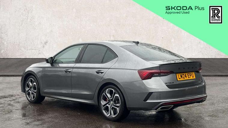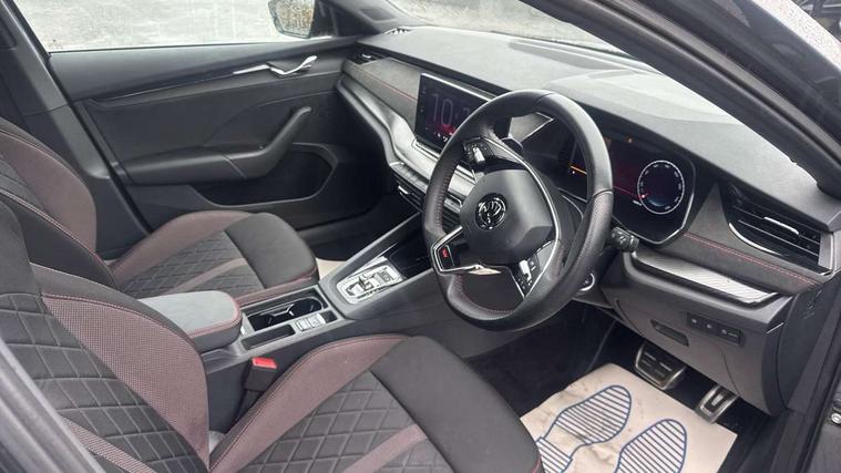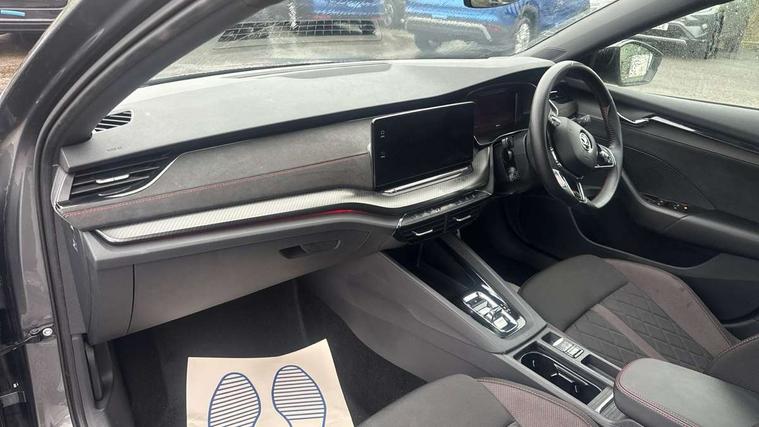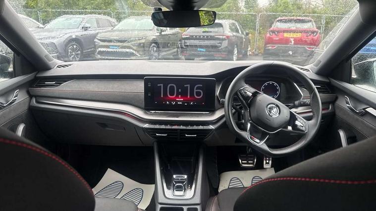 1x USB Type C port in rear view mirror (charging only), 2x USB Type C ports in rear of front centre armrest (charging only), Bluetooth system, Columbus satellite navigation with 10" touchscreen display, Driver fatigue sensor, eCall emergency system, Front and rear parking sensors with manoeuvre assist, Front assist system, Progressive dynamic steering, Speed limiter, Turn Assist, Virtual Cockpit - 10.25" digital display, Virtual pedal with electrically operated boot door (Rear LED lights (high functionality), dynamic indicators, Voice control system, Wireless SmartLink for Apple Car Play, Electronically controlled limited slip differential, Front and rear stabilizers, 2x USB Type C ports (for charging and data transfer), 8 Speakers, DAB Digital radio, Aero front windscreen wipers with intermittent function, Auto dimming rear view mirror, Body colour door handles, Chrome exhaust tailpipes, Door sills with vRS logo, Electric front and rear windows, Exterior gloss black sports styling including front grille, side strip, window surrounds, door mirror and badging, Full LED Matrix headlights with AFS, rear LED lights (high functionality) and dynamic indicators and cornering front fog lights, Headlight washers, Heated rear windscreen, High level third brake light, Ice scraper in fuel cap, LED daytime running lights, Rain and light sensors, Rear fog light on one side, Rear privacy glass, Rear side wing doors, vRS bumpers and lip spoiler, 3 rear headrests, 3 seat bench in 2nd row, 4 foldable roof handles, Aluminium pedals, Black headlining, Black microsuede padded dash panel with red contrast stitching, Chrome inner door handles, Front centre armrest, Front head restraints, Heated front seats, Illuminated glovebox, Leather trimmed gearshift lever, Luggage compartment lighting x1 light, Mechanical rear seat release, Parcel shelf - folding, Single front passenger seat, Sunglasses storage, Textile floor mat set, Three spoke leather sports multifunction steering wheel with paddles, Ticket holder, Umbrella in door panel, Unsplit rear bench seat and split folding backrest, LED interior light pack - Octavia, 3 point front/outer rear seatbelts+pre-tensioners, Alarm with interior monitoring, tilt sensor and back up horn, Automatic door unlocking in case of crash, Automatic fuel cut off in case of crash, Automatic warning lights in case of emergency braking, Curtain airbags and front side airbags, Driver and front passenger airbags, Drivers knee airbag, Electronic parking brake, ESC including ABS, EBV, MSR, ASR, EDS, HBA, DSR, Front and rear disc brakes, Front central airbag, Hill hold control, Hill start assist, ISOFIX on front passenger seat and outer rear seats, Manual rear child locks, Passenger airbag deactivate switch, Pro active services, Red brake calipers, Two tone horn, Tyre pressure monitor, Visual and acoustic seat belt reminder, Warning reflectors in front door, Door locks with immobiliser, Keyless entry and start/stop including rear doors, Remote central locking, Carbon optic decorative inserts, Gloss black air vent surrounds, 19" Altair anthracite alloy wheels,