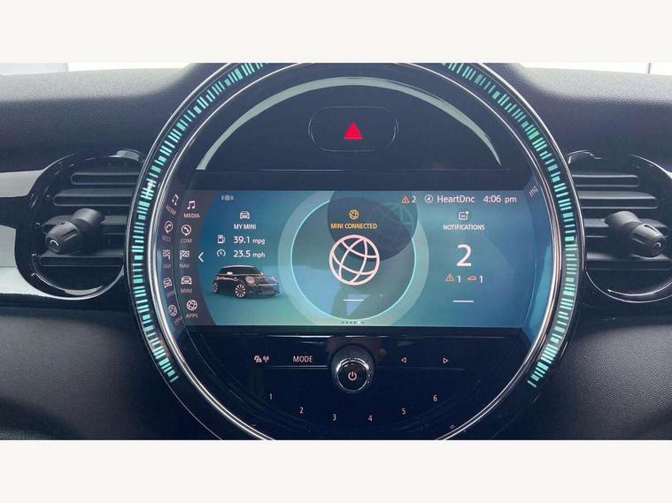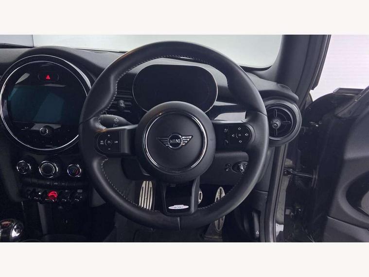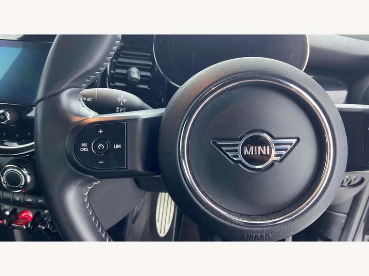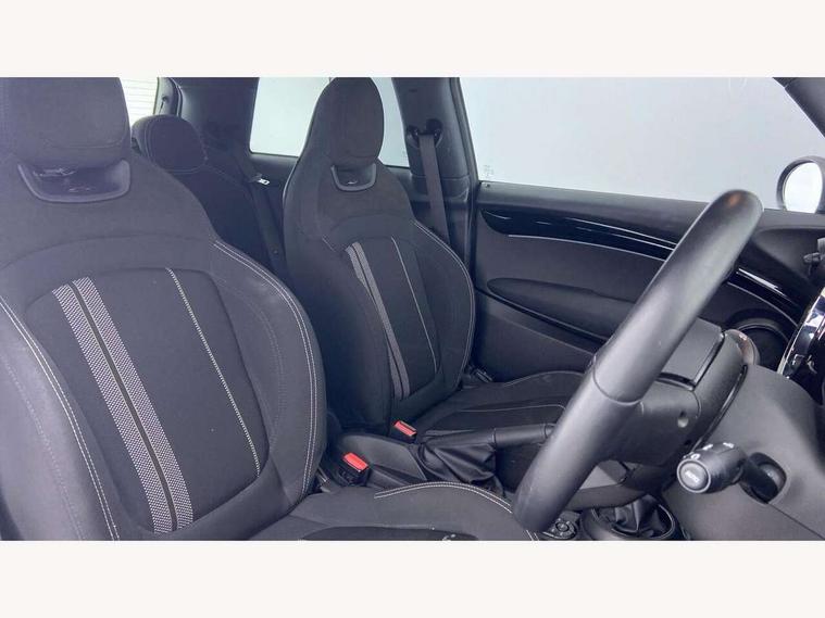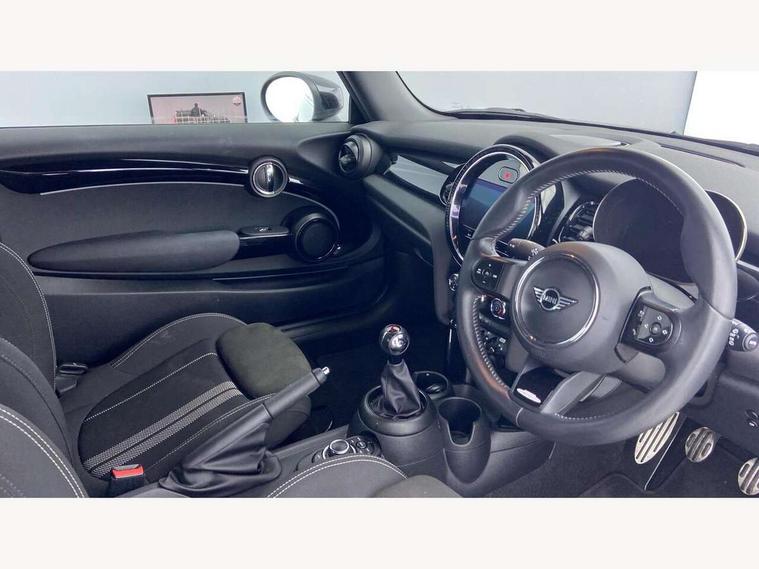 Automatic start/stop function with brake energy recuperation, Compatible mobile phone bluetooth with audio streaming, Cruise control with brake assist, Electro-mechanical speed dependant steering assistance, Flexible car sharing preparation, Instrument cluster, MINI Driving Modes - centre toggle switch to control driving setting (sport, mid and green), Mini E-call, MINI TeleServices, On board computer, Rear park distance control, Service interval indicator, 6 Speed manual transmission including gear change indicator display, Adaptive suspension, Double Vanos system, Fully variable valve control, High precision injection, Performance Control, 4 speakers in front door trims and underneath front seats, 8.8" touchscreen with LED ring, FM tuner and DAB digital radio, Automatic headlight activation switch, Body colour fuel filler cap, Chrome border high gloss black slats radiator grille, Dynamic brake lights, Electric front windows, Exhaust tailpipe on left with chrome finisher, Heated rear window, Heated windscreen washer jets, JCW Aerodynamic kit - Front and rear bumpers with sporty JCW styling and part-painted side sills with MINI John Cooper Works door sill finishers, John Cooper Works rear spoiler, LED headlight with closed ring and daytime driving lights, Metal door sill strips with MINI imprint, Model logo Cooper on right of tailgate, Rain sensor window wipers, Rear fog lights, Rear LED lights with union jack design, Rear window wiper, Side scuttle panel with integrated indicator, Sun/heat protection glass, White indicator lenses, 12V Accessory socket in centre console, 4 lashing eyes in luggage compartment, 60/40 split folding rear seat, Anthracite headliner including grab handles and clothes hooks, Carbon black colour line - Knee roll and door armrest, Chrome interior highlights, Cupholders, Front and rear isofix with front passenger airbag deactivation, Glove compartment, Height and length steering column adjustment, Interior lighting with 12 different colours across the dashboard, underneath door bezel with illuminated laser-engraved design on central display, JCW Sport seats with integrated headrests, adjustable thigh support and John Cooper Works logo, Leatherette gearshift lever and handbrake gaiters, LED reading lights, vanity mirror lights, front foot well light and spotlight on front seats, Manual air conditioning, Mechanical seat adjustment - forward/back & backrest for front seats and driver seat height adjust, Multifunction steering wheel, Passenger seat height adjuster, Storage compartments in doors, Sunvisors with vanity mirrors, Velour floor mats, Walknappa leather steering wheel with grey seam and John Cooper Works badge on Piano Black lower steering wheel spoke, Piano black exterior pack - Mini Hatchback Cooper, 3 point seatbelts on all four seats, 6 Airbags - front, side, head and seat belt tensioners, Anti-lock braking system (ABS), DSC - Dynamic Stability Control, Front and rear disc brakes, Single tone fanfare horn, Tyre pressure monitoring system, Alarm system with tilt sensor, monitoring doors, bonnet interior and tailgate, Electronic vehicle immobiliser, Start/stop toggle with keyless go, Piano black interior trim, Tool kit,