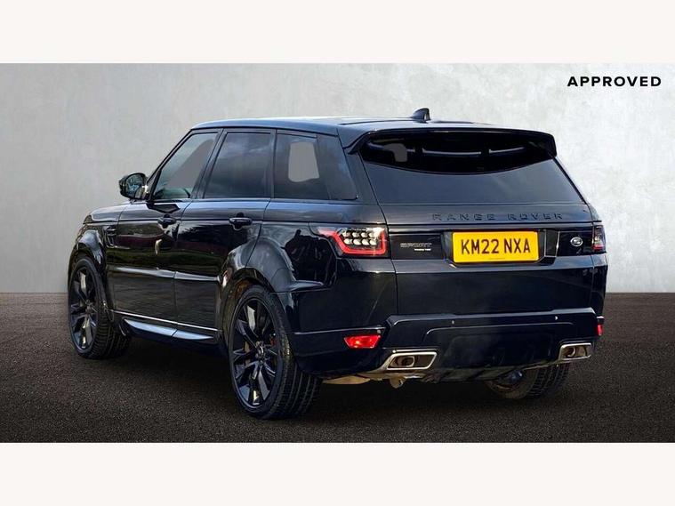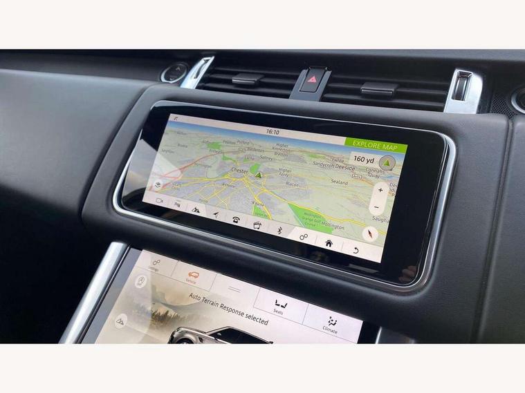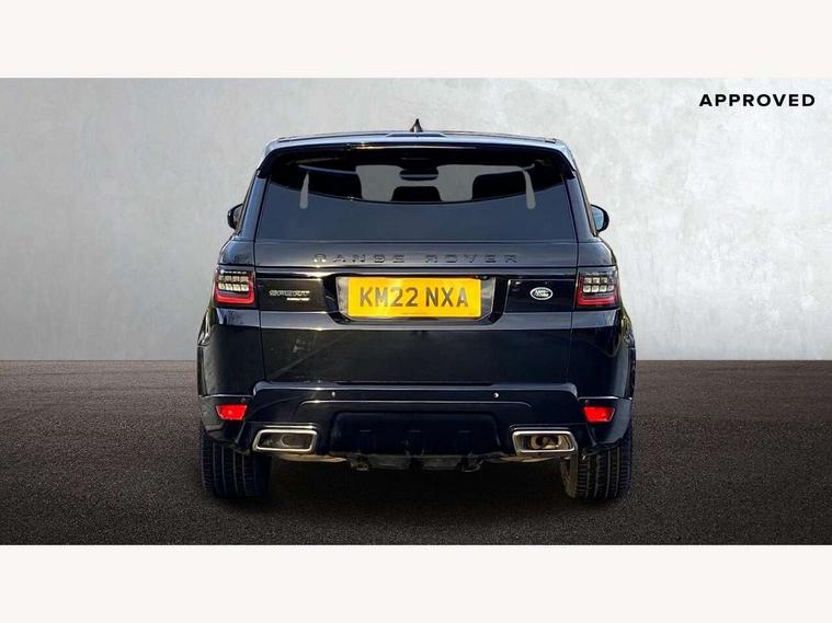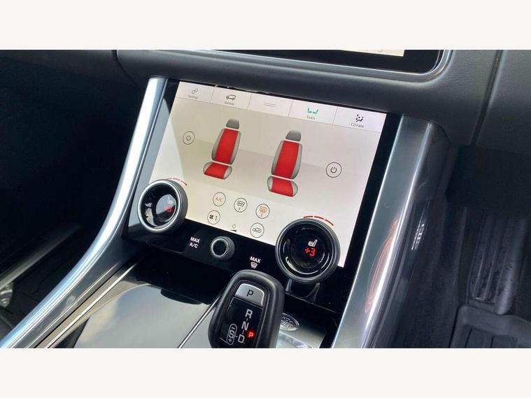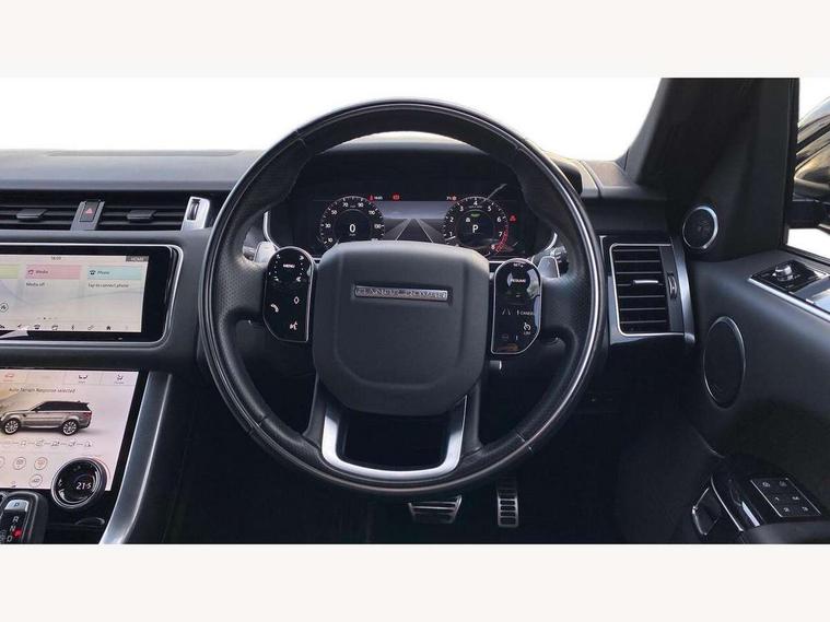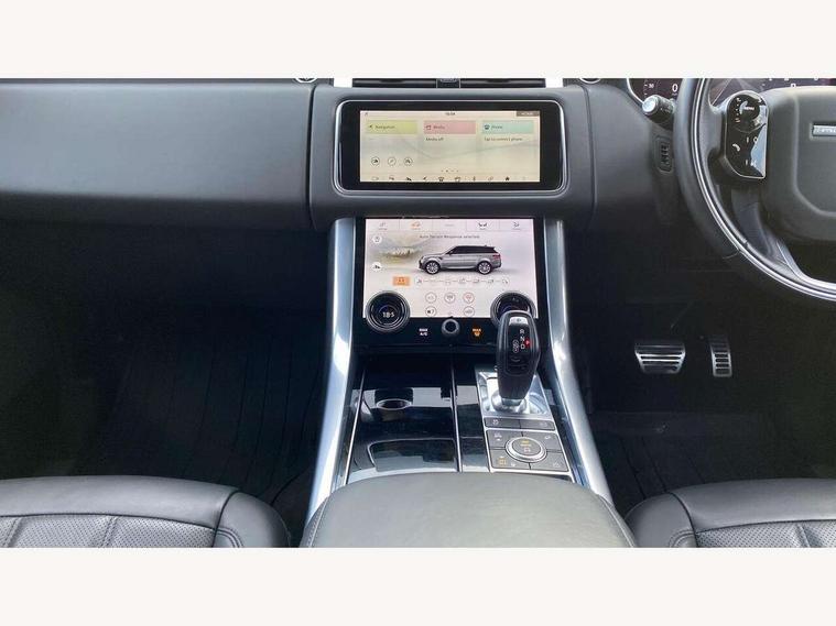 All Terrain Info Centre, Android Auto, Apple car play, Bluetooth connectivity, Electric power assisted steering (EPAS), Incontrol apps in vehicle touchscreen, Interactive Driver display instrument cluster, Mist sensor, Navigation pro system with 10" touch screen, app interface and media storage, Pro services and wifi hotspot, Push button start, Remote premium - Upgraded Incontrol remote app including remote climate control (engine dependent), remote lock + Unlock and remote beep + flash, TFT Virtual Instrument Panel, Touch pro duo system, Trip computer, 7 kW onboard charger, Adaptive dynamics, Electronic active differential with brake torque vectoring, Electronic air suspension, Gradient release control (GRC), Public charging cable, Terrain Response 2 with dynamic program, Twin speed transfer box, Bluetooth audio streaming, DAB Radio (Digital Audio Broadcasting), Incontrol protect - SOS emergency call with automatic collision detection, optimised assistance call and Incontrol remote app essential, USB/aux input socket, Acoustic front and toughened rear side glass, Acoustic laminated front windows, Adaptive brake lights, Auto dimming interior rear view mirror, Automatic headlights, Body coloured side sills and bumpers corners, Centre high mounted stop light, Electric windows with one touch open/close and anti trap, Electrical towing preparation, Engine cover, Follow me home lighting, Front and rear recovery eyes, Front fog lights, Headlight power wash, Heated rear window, Heated windscreen includes heated washer jets, Illuminated metal treadplates with brand name script, LED rear lamps, Privacy glass (Tinted glass rear of B pillar), Rain sensing windscreen wipers, Rear fog lights, Rear side wing doors, Rear wash/wipe, Remote window closing, Side repeater indicators in mirror, Sport Badge in black, Standard bonnet, Trailer stability assist, Twin bright tailpipes, 2 way active front head restraints, 2 way rear head restraints, 3 seat bench in 2nd row, Auto air recirculation, Bright metal foot pedals, Centre console with armrest, Climate control memory, Customer configurable single point entry, Driver's footrest, Extended leather upgrade includes door top rolls and leather instrument panel mid section, Front and rear cupholders, Front door storage space, Front map lights, Front seat back map pockets, Front stowage pocket, Front/rear passenger grab handles, Heated steering wheel, Isofix child seat preparation, Leather steering wheel with Atlas inserts, Loadspace light, Loadspace mounting provisions, Lockable glovebox, Multifunction steering wheel, Perforated Windsor leather upholstery, Pollen filter, Power socket, Reach/rake electric adjustable steering column + entry/exit tilt away, Rear centre armrest, Rear ISOFIX, Roller blind loadspace cover, Satin chrome gearshift paddles, Single front passenger seat, Sports pedals, Three 12V accessory power outlets, Black Exterior pack - Range Rover Sport Dynamic, Smartphone pack - Range Rover Sport, 3 point seatbelts on all seats, Anti-lock braking system (ABS), Brake pre-fill technology, Cornering brake control (CBC), Curtain airbags, Customer configurable autolock, DSC - Dynamic Stability Control, Dual stage driver/passenger airbags, EBD - Electronic brakeforce distribution, Electric parking brake, Electronic traction control, Emergency braking includes city, urban AEB and pedestrian, Front seatbelt pretensioners, Gradient acceleration control, Height adjustable front seatbelts, Hill descent control, Hill launch assist, Low traction launch, Passenger seat occupant detector with front airbags, Power operated child locks, Roll stability control, Seatbelt warning, TPMS (Tyre pressure monitoring system), Immobiliser, Intrusion sensor, Keyless entry, Locking wheel nuts, Perimetric and volumetric anti theft alarm, Remote locking, Grand black veneer, 21" 9 spoke gloss black alloy wheels - style 9001, Tyre repair system,