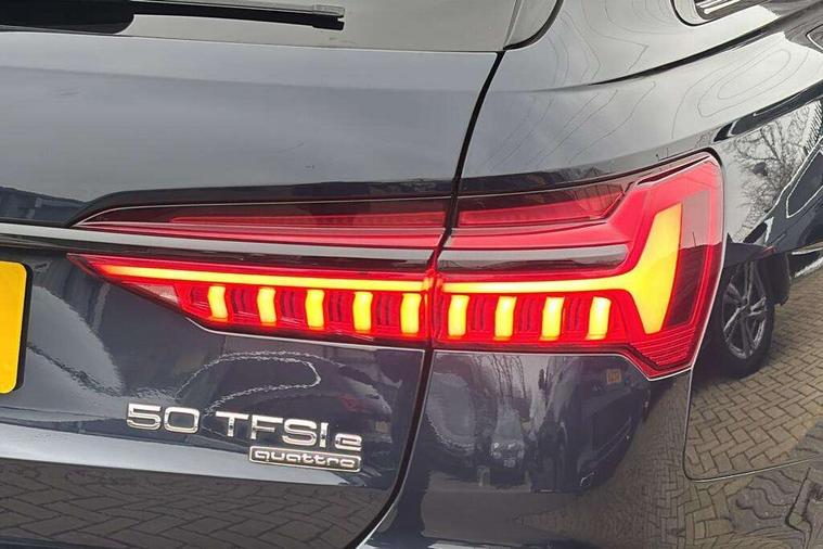 7" high resolution colour driver information display system, Audi connect safety and service (e-call), Audi connect with Amazon Alexa Integration, Audi drive select, Automatic start/stop system with coasting functionality, Bluetooth interface, Electric boot lid release, Lane departure warning system, Progressive steering, Service interval indicator, Smartphone interface includes wireless Apple carplay/Android Auto, Voice control system, 3 pin 10 amp domestic charging cable, 52 litre fuel tank, Hybrid propulsion system, Quattro on demand, Sports suspension, Type 2 mode 3 32 amp charging cable, Type 2 socket for AC charging, Audi front music interface, Auxiliary input socket, DAB Digital radio, USB connection, Black roof rails, Electric front/rear windows, Frameless auto dimming interior rear view mirror, Front intermittent wipers, Gloss black highlights on the exterior area of the Audi Single frame, Gloss black highlights on the front and rear bumpers, Gloss black highlights on the radiator grille, Gloss black highlights on the side windows trim strips, Headlight washers, Heat insulating darkened glass in side and rear windows, Heat insulating glass in windshield, LED rear lights, LED signature front daytime running light, LED third brake light, Matrix LED headlights, Matt black rear diffuser with diffuser strip and tailpipes in chrome, Matt black side air intake grille with inlay in matt aluminium, Privacy glass, Rain and light sensors, Rear side wing doors, Rear wiper, Signature rear LED light design, 4 way electric lumbar support for driver and front passenger, 4 zone deluxe automatic climate control, 40/20/40 split folding 3 rear seat bench in 3 parts with rear centre armrest, Black cloth headlining, Black front and rear carpet floor mat, Black steering wheel insert, Electrically adjustable front seats with driver memory, Front centre armrest, Front head restraints, Heated front seats, Height/reach adjust steering wheel, Illuminated door sill trims with S logo, Illuminated sun visors with vanity mirrors, ISOFIX child seat mounting and Top Tether with front passenger airbag deactivation, Leather gear knob, Rear headrests, Single front passenger seat, Stainless steel pedals and foot rest, Comfort and sound pack - A6, Non smoking pack - A6, Technology pack - A6, 3 point seatbelts on all seats, Airbags - Front side, front and rear including head, Audi pre-sense front, Black seatbelts, EBD - Electronic brakeforce distribution, Electromechanical parking brake, Electronic Stability Control (ESC) including ABS, ASR and EDL, Extended pedestrian protection measures, Manual child proof rear door locks, Seatbelt monitoring, Tyre pressure warning light, Warning triangle and first aid kit, Anti theft alarm with tow away protection, Anti-theft wheel bolts and wheel loosening detection, Immobiliser, Remote central locking, Carbon twill inlays, Tool kit, Tyre repair kit,