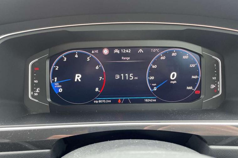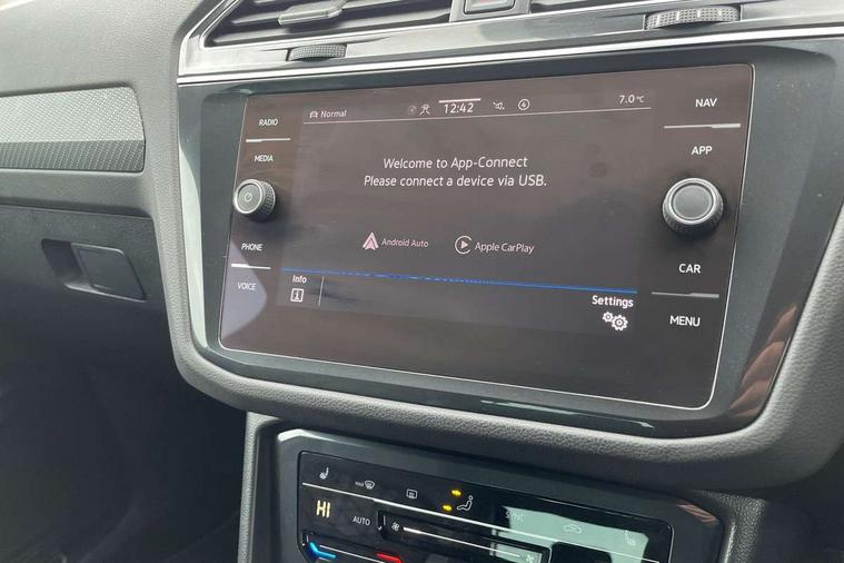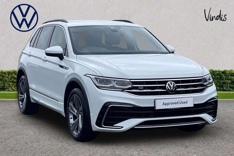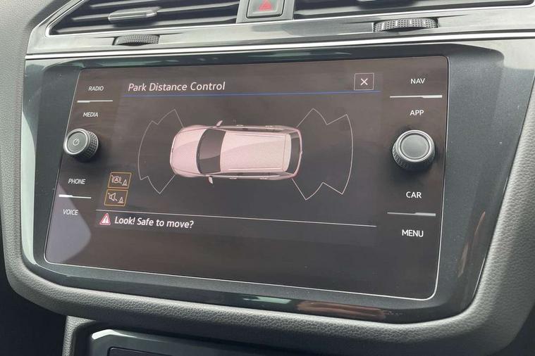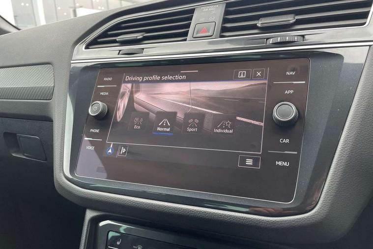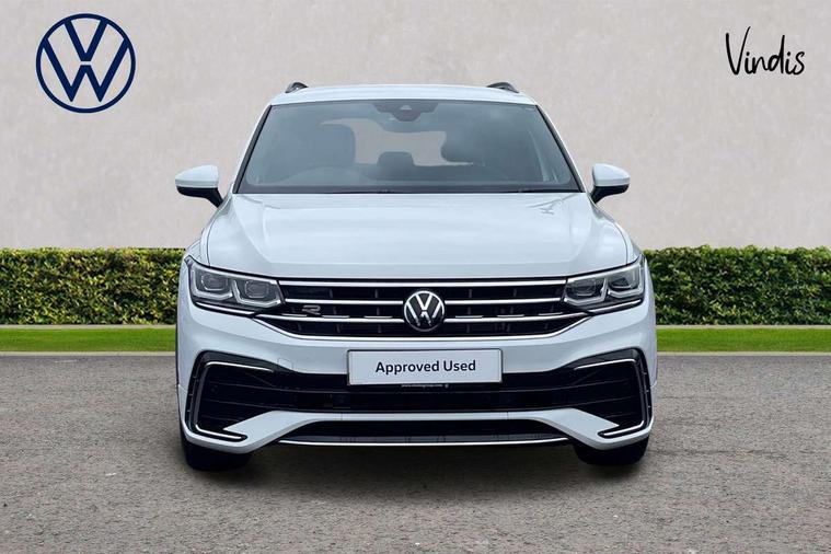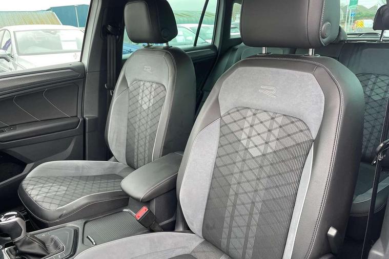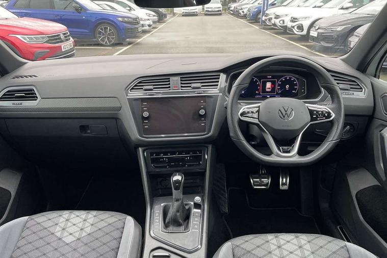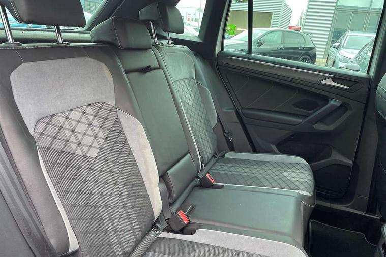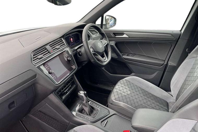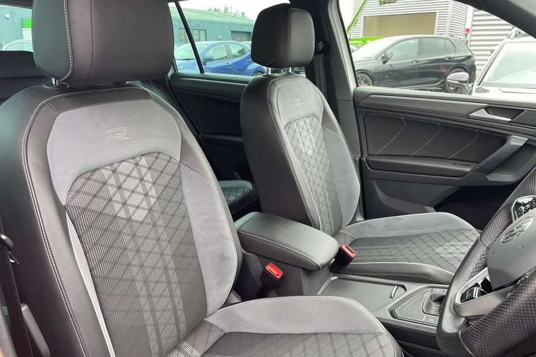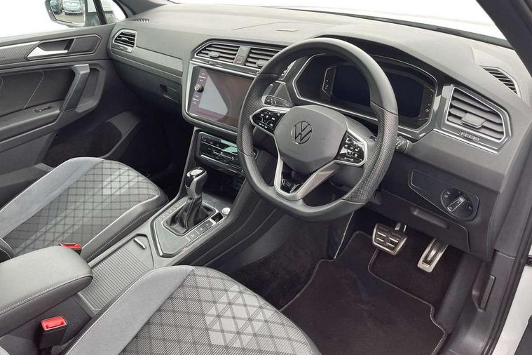 Adaptive cruise control ACC stop and go including speed limiter, App-Connect incl. App-Connect Wireless for Apple CarPlay and Android Auto, Bluetooth phone integration system, Comfort drive travel assist, Digital cockpit pro, Driver alert system, Driver profile selection, Dynamic road sign display, eCall emergency call system, Electromechanical speed sensitive power steering, Emergency assist, Front and rear parking distance sensors, Instrument cluster mph speedometer Great Britain, Lane keeping system Lane Assist, Lights on warning, Multifunction front facing camera, Outside temperature display, Premium multifunction display with multi colour display, Rev counter, Service interval indicator, Speed limit display, Start/stop system with regenerative braking, Trip computer, Warning sound and light for doors and tailgate open, Battery regeneration during braking, Digital radio reception DAB+, Diversity antenna for FM reception, Radio, Auto dimming interior rear view mirror, Automatic headlight control system, Body colored bumpers in R-Line style, Body colored exterior mirror housings, Body colour door handles, Chrome moldings on the side windows, Coming/leaving home lighting function, Dynamic headlight range control, Front and rear electric windows, Heated rear window, High level 3rd brake light, Laminated safety glass windshield, heat and sound insulating, LED rear combination lamps, LED rear number plate lights, License plate carrier in front and rear, Poor weather light and cornering light, Privacy glass for rear side windows and rear window, R Line body kit, R Line side sills, Rain sensor, Rear exhaust tailpipe, Rear fog lamp, Rear side wing doors, Rear spoiler in R style, Rear windscreen washer and wiper with interval delay, Side and rear windows in heat insulating glass, Trailer Stability Programme, Unique R Line badging, Windscreen wipers/ intermittent wipe + 4 position delay, 12V outlet in center console rear and in luggage compartment, 12V outlet in front and tray, 2 LED front reading lights, 2 LED rear reading lights, 3 bench rear seats in 2nd row, 3 rear headrests, Air Care Climatronic 3 zone automatic climate control with enhanced air filter and controls in the rear, Backrest release for left front seat, Black headlining, Brushed stainless steel pedals and footrest, Carpet mats in front and rear with decorative stitching in Gray, Climate control unit rear with touch function, Door and side trim panel in foam film, insert in leatherette, Front footwell illumination, Front scuff plates in aluminum with R-Line logo, Front seats head restraints (x-adjustment), Height/reach adjust steering wheel, Isofix Preparation 2 Rear child seats, Leather gear knob, Rear bench seat asymetrically split folding, longitudinally movable and folding with load-through hatch and center armrest, Remote unlocking for rear seat backrest, Single front passenger seat, Sun visors with illuminated vanity mirrors, Tool kit, Driver assistance pack plus - Tiguan DSG, 3 point seat belt for centre rear seats, 3 point seat belts with seat belt pretensioners for the outer rear seats, Curtain airbags for front and rear passengers, Driver/Front Passenger airbags, Drivers knee airbag, Electronic parking brake with auto hold, Electronic Stability Control with driver steering recommendation, ABS, ASR, EDL, EDTC and trailer stabilization, Front assist with autonomous emergency braking (for Adaptive Cruise Control ACC up to 130 mph), Front disc brakes, Front passenger airbag deactivation, Front side airbags, Height adjustable front 3 point seatbelts + pretensioners, Manual child proof rear door locks, Pedestrian monitoring system, Proactive passenger protection system in combination with front assist, Rear disc brakes, Two tone horn, Warning sound and light for front seat belts if unfastened, Warning triangle, Anti theft alarm system with interior monitoring, backup horn and towing protection, Anti theft wheel bolts, Electronic engine immobiliser, Chrome elements on the mirror switch power window switches and door pulls, Decorative inserts Carbon Gray for dashboard and front door trim panels, Interior door handle in matte chrome,