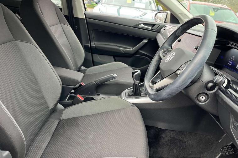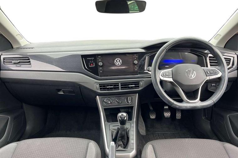 Adaptive cruise control without follow-to-stop and speed limiter, Advanced driver attention and drowsiness monitor, Bluetooth mobile phone interface, Dynamic road sign display, Emergency call service, Multifunction front facing camera for distance control, Park distance control, Power assisted speed sensitive steering, Preparation for navigation system with media and internet package, Preparation for We connect and We connect plus, Rear view camera, Speedo and rev counter, electronic odometer, trip, service interval display and exterior temperature gauge, Standard rear axle, Travel Assist - Lane keeping system and traffic jam assist, Travel assist including emergency assist, Trip computer, Warning signal and warning light for front and rear seatbelts not fastened, Washer fluid level indicator, Wireless app connect, Front wheel drive, Rear shock absorpion, Start-stop system with battery regeneration (recuperation - energy recovery during braking), DAB Digital radio, Diversity antenna for FM reception, Front and rear 6 speakers, Automatic dimming interior rear view mirror, Automatic headlight control with LED separate daytime running lights with coming/leaving home function, Body colour bumpers with chrome inserts, Body colour door handles, Body colour door mirrors, Electric front windows, Engine badge deletion, Headlight range adjustment, Heat insulating and laminated safety glass windshield, LED Headlights, LED rear combination lamps, Power folding adjustable/heated exterior mirrors and front passenger exterior mirror lowering function, Rain sensor, Rear electric windows, Rear fog light, Rear side wing doors, Rear tinted glass from B-pillar backwards approx 65% tinted, Rear windscreen washer and wiper with interval delay, Third brake light, 12V power socket in centre console, 2 front and 2 rear reading lights with switch off delay and dimmer, 2 USB-C ports in the front, 2 USB-C charging sockets on the center console in the rear, 3 rear head restraints, 60/40 split folding rear seat and rear seat bench not split, Ceramique roof lining, Chrome plated radiator grille inserts, air vent surrounds and light switch surrounds, Door and side trim panel, Driver and front passenger seat height adjustment, Driver/passenger sunvisors with illuminated vanity mirrors, Front centre armrest, Front seat backrest storage pockets, Front standard seats, Handbrake lever handle in leather, Hartley/Thomas cloth upholstery, Headliner in recycled material, Isofix child seat preparation easy-fit (for two outer rear seats, and front passenger seat) compatible with I-size, Leather trimmed gear knob, Luggage compartment cover, Luggage compartment lighting, Removable luggage compartment floor, Single front passenger seat, Standard climatic zones, Standard pedal cluster, Three spoke leather wrapped multifunction steering wheel, Light and vision pack - Polo, 3 point height adj front seatbelts + pretensioners, 3 point seat belt for centre rear seat, 3 point seatbelts, outer rear with ECE lable, ABS, Driver and front passenger airbag with front passenger airbag deactivation, Drivers and front passengers safety optimised head restraints, ESC (Electronic stability control) + EDL (Electronic Differntial lock) and ASR (Traction control), Extended and predictive pedestrian/ cyclist protection, Front assist with autonomous emergency braking (for Adaptive Cruise Control ACC up to 130 mph), Front curtain and side airbags with center airbag, Front disc brakes, Hill hold control, Manual child lock in rear doors, Rear drum brakes, Single tone horn, Tyre pressure loss indicator, Alarm with interior protection, Anti-theft alarm system with interior monitoring, backup horn, and towing protection, Anti-theft wheel bolts, Electronic engine immobiliser, Lava stone black gloss/matt decorative inserts in dash and front door panels, 16" Torsby alloy wheels, Low rolling resistance tyres,