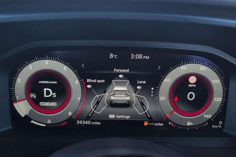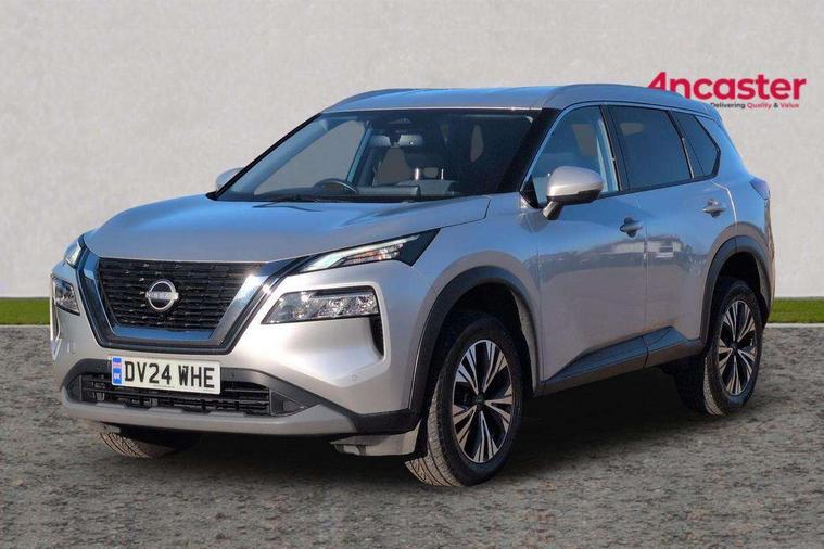Android auto/Apple CarPlay (Wired), Blind spot warning, Drive modes (sport, normal, eco), Electric speed sensitive power steering, Emergency and breakdown call, Front and rear parking sensors, Full Digital 12.3" TFT Digital Combimeter, Google maps services - search, weather, 3D maps and Google street view, Idle stop/start system, Intelligent around view monitor, Intelligent Cruise control (ICC), Intelligent driver alert system, Intelligent forward collision warning, Intelligent lane departure warning, Intelligent lane intervention, Intelligent lane keep assist, Maximum speed limiter, Moving object detection, Nissan connect 12.3 inch touchscreen infotainment system, Nissan connect nav with TomTom traffic, Push button starter, Rear cross traffic alert, Rear view camera, Remote control services - door locks, lights, horn and car locator, Telematics - notifications and connectivity services, TomTom live traffic services, Traffic sign recognition with legal speed adjustment, Trip computer, Virtual personal assistant and firmware over the air capability, Wireless apple carplay, Wireless charging pad, 6 speakers, AM/FM audio system with DAB, Bluetooth audio streaming, Front USB connections (Type-A and Type-C), Rear USB charging only ports (Type-A and Type-C), 3rd brake light, Auto dimming rear view mirror, Auto rear wiper when reversing, Body colour mirror caps, Body coloured door handles, Bodyside mouldings, Chrome side window finisher, Electric auto folding door mirrors, Electrically adjustable and heated door mirrors, Follow me home headlights, Headlights auto levelling system, High beam assist, Intelligent auto headlights, LED daytime running lights, LED Headlights, LED rear lights, One touch front and rear electric windows with remote opening and closing, Partially body coloured bumpers, Rain sensing wipers, Rear privacy glass, Rear reversing light (bulb lighting), Rear roof spoiler, Rear side wing doors, Rear styling plate, Shark fin antenna, Splash free wipers, Super UV and infrared cut glass, Three blink turn signal, 12v power socket in dashboard and luggage, 3 bench rear seats in 2nd row, 3 rear headrests, 60/40 split folding rear seat bench, Butteryfly console, Chrome interior door handles, Cloth monoform upholstery, Driver and front passenger sunvisors with illuminated vanity mirrors, Driver seat back pocket, Dual zone automatic climate control with pollen filter, Front centre console and armrest, Front cupholders, Front door with bottle holders, Height adjustable driver's seat, Height adjustable front headrests, Height adjustable passenger seat, Leather shift knob, Leather steering wheel, Luggage board system, Luggage space lighting, Multifunction steering wheel, Passenger seat back pocket, Rear armrest with 2 cupholders, Rear door bottle holders, Single front passenger seat, Tilt/telescopic adjustable steering wheel, Two rear isofix child seat anchorage points with top tether, 3x3 point rear seatbelt pretensioners + load limiters, ABS with EBD and brake assist, Active brake limited slip, Auto hold function, Child locks on rear doors, Curtain and front side, far side airbags, Driver and passenger airbags, Driver, passenger and 2nd row rear seat belt reminder, Electronic parking brake, Front seatbelt pretensioners + load limiters, Height adjustable front seatbelts, Hill start assist, Intelligent blind spot intervention, Intelligent front emergency braking with pedestrian, cyclist recognition and junction assist, Intelligent rear automatic braking, Tyre pressure monitoring system, Vehicle dynamic control, Engine immobiliser, Intelligent Key, Remote central door locking with deadlocking, Thatcham Cat.1 alarm, 18" Diamond cut alloy wheels, Tyre puncture repair kit,