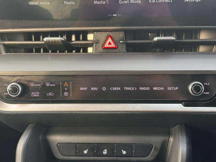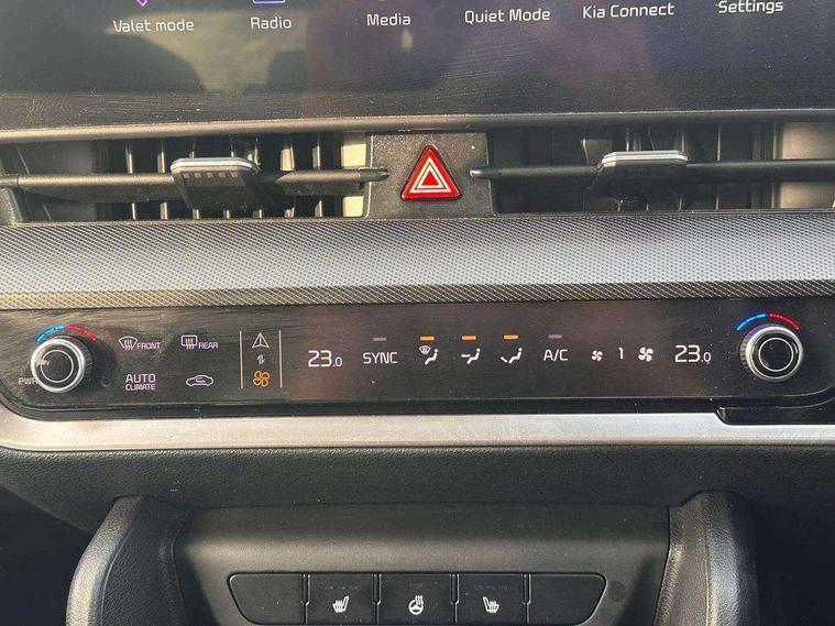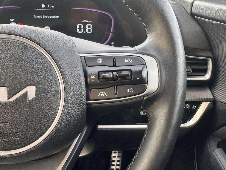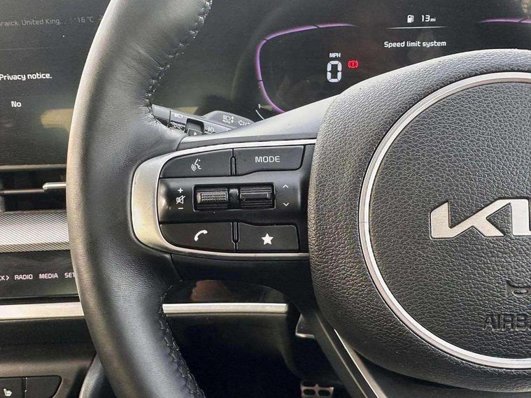 12.3" Display with navigation, 4.2" supervision colour cluster display, Apple car play/Android Auto with voice control, Cruise control + speed limiter, Drive mode selector, E-call, Forward collision avoidance assist (FCA) - city/pedestrian/cyclist/junction covering, Front and rear parking sensors, Intelligent speed limit assist, Kia Connect (UVO), Lane Following Assist (LFA), Lane keep assist, Low washer fluid warning, Rear view monitor, Reversing camera system integrated into centre fascia screen, Speed sensitive power steering, Trip computer, Windscreen washer level indicator, Intelligent Stop and Go, 6 speaker audio system, Bluetooth audio streaming, DAB Radio with MP3, Rear USB port, Steering wheel mounted audio controls, USB C type charging ports on centre console, USB C type charging ports on side of front seats, USB port for connection of a media device, All round electric windows with drivers and front passenger auto up/down function, Automatic headlight control system, Automatic window defogger, Backlite glass heated with timer, Black bumpers, Body colour and black bumper with silver accents, Body colour exterior door handles, Body colour radiator upper garnish and door garnish, Electrically adjustable/heated/folding door mirrors with LED indicators, Front and rear chrome skid plates, Gloss black door mirrors, Gloss black radiator grille, Gloss black side sill and wheel arch body mouldings, Glossy black roof rack, High beam assist, Interior electrochromic mirror, LED daytime running lights, LED front fog lamps, LED headlamps (low and high beam - MFR type), LED High mounted stop light, LED rear combination lamp, Rain sensing wipers with aero blades, Rear fog lamp, Rear privacy glass, Rear side wing doors, Rear spoiler, Rear wiper, Satin finished beltline, Silver coloured inserts to bumpers, Tinted rear glass, Trailer stability assist, 12V power socket in front centre fascia and luggage compartment, 2nd row personal lamps, 3 seat bench in 2nd row, 3 x passenger assist grips, 40/20/40 split folding rear seat, All-round height adjustable headrests, Black headlining, Centre console storage box, Cupholders in rear armrest, D-Shaped sports leather steering wheel and perforated inserts with GT-Line logo, Door courtesy lamps, Drink holder at centre armrest, Driver and front passenger side sunvisors with illuminated vanity mirrors, Driver's seat manual height adjust, Drivers seat power lumbar support, Front and rear door storage, Front seat and rear pockets, Front/rear centre armrests, Gear shift indicator, Glovebox illumination, Heated front seats, Heated steering wheel, Interior door lock/unlock function, ISOFIX Child seat top tethers and anchor fixings outer rear seats, Luggage area light, Luggage area load cover, Luggage net with hooks, Metal paint interior door handles, Overhead console lamp, Rear cabin light, Rear coat hooks, Single front passenger seat, Sports pedals, Suede leather upholstery, Three zone climate control, Tilt/telescopic adjustable steering wheel, Ventilation ducts to rear compartment, Active front headrests, All round 3-point seatbelts, Anti-lock braking system (ABS), Dual front side airbags, Dual horn, Electronic parking brake, Electronic stability control with downhill brake control, Front passenger airbag cut-off switch, Front seatbelt pretensioners + load limiters, Height adjustable front seatbelts, Hill start assist control (HAC), Impact sensing auto door unlocking, Multi collision brake assist, Rear door child safety locks, Rear seat alert system, Traction control, Twin curtain airbags, Twin front airbags, Tyre pressure monitoring system, Advanced anti-theft system including immobiliser and alarm, Door deadlocks, Engine Start/Stop Button with Smart Entry System, Locking wheel nuts, Speed sensitive auto door locking, Visible vehicle identification number, Aluminium pattern finish centre fascia and door garnish, 19" GT-Line alloy wheels, Tyre mobility kit,