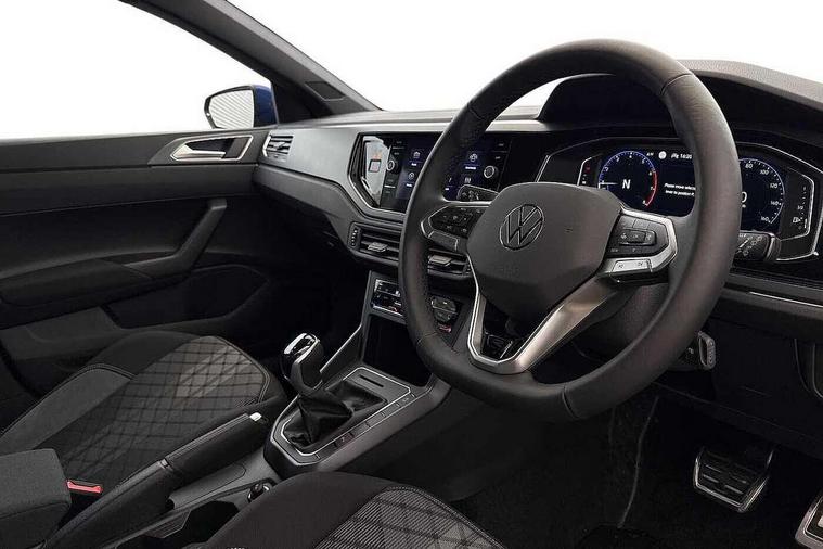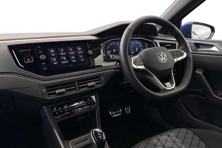 Adaptive cruise control with follow-to-stop and speed limiter, Advanced driver attention and drowsiness monitor, Bluetooth mobile phone interface, Digital Cockpit Pro with 10.25" Display, Dynamic road sign display, Emergency call service, Multifunction camera, Power assisted speed sensitive steering, Preparation for We connect and We connect plus, Speedo and rev counter, electronic odometer, trip, service interval display and fuel gauge, Standard rear axle, Travel Assist - Lane keeping system and traffic jam assist, Travel assist including emergency assist, Trip computer, Warning signal and warning light for front and rear seatbelts not fastened, Washer fluid level indicator, Wireless app connect, Front wheel drive, Rear shock absorpion, Start-stop system with battery regeneration (recuperation - energy recovery during braking), DAB Digital radio, Diversity antenna for FM reception, Front and rear 6 speakers, Body colour bumpers, Body colour door handles, Electric front windows, Front scuff plates with R-Line logo, Heat insulating glass windscreen, Power folding adjustable/heated exterior mirrors and front passenger exterior mirror lowering function, Rear electric windows, Rear fog light, Rear side wing doors, Rear windscreen washer and wiper with interval delay, Third brake light, 12V power socket in centre console, 2 USB-C ports in the front, 2 USB-C charging sockets on the center console in the rear, 3 rear head restraints, 60/40 split folding rear seat and rear seat bench not split, Air care climatronic air conditoning system with active combination filter and 2-zone temperature control, Black roof lining, Carpet mats, front and rear, Chrome plated radiator grille inserts, air vent surrounds and light switch surrounds, Door and side trim panel, Driver and front passenger seat height adjustment, Driver/passenger sunvisors with illuminated vanity mirrors, Front centre armrest, Front footwell illumination, Front seat backrest storage pockets, Front sports comfort seats, Handbrake lever handle in leather, Headliner in recycled material, Isofix child seat preparation easy-fit (for two outer rear seats, and front passenger seat) compatible with I-size, Karoso artvelours cloth upholstery, Leather trimmed gear knob, LED interior light with switch off delay and dimmer, 2 reading lights front and rear, Luggage compartment cover, Luggage compartment floor, Luggage compartment lighting, Lumbar adjustment for front seats, Single front passenger seat, Stainless steel pedals, Standard pedal cluster, Three spoke leather wrapped multifunction steering wheel with shifting paddles, Light and sight pack - Polo R-Line/Black Edition, 3 point height adj front seatbelts + pretensioners, 3x3 point rear seatbelts, ABS, Driver and front passenger airbag with front passenger airbag deactivation, Drivers and front passengers safety optimised head restraints, ESC (Electronic stability control) + EDL (Electronic Differntial lock) and ASR (Traction control), Extended and predictive pedestrian/ cyclist protection, Front curtain and side airbags with center airbag, Front/rear disc brakes, Hill hold control, Manual child lock in rear doors, Single tone horn, Tyre pressure loss indicator, Alarm with interior protection, Anti-theft alarm system with interior monitoring, backup horn, and towing protection, Anti-theft wheel bolts, Electronic engine immobiliser, Chrome applications on rotary light, mirror adjustment, window regulator switches, outlet with frame in black, Dark grey anodised matt decorative inserts in dash and front door panels, 16" Coventry alloy wheels, Low rolling resistance tyres,