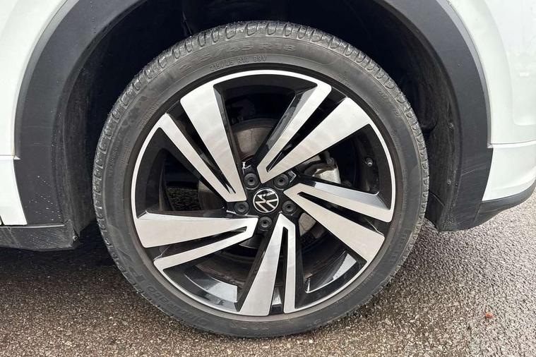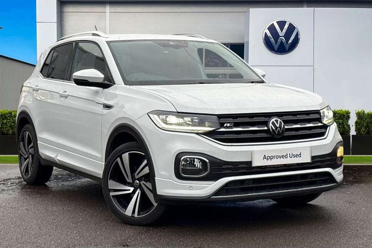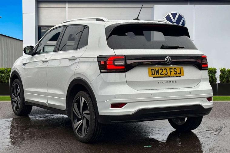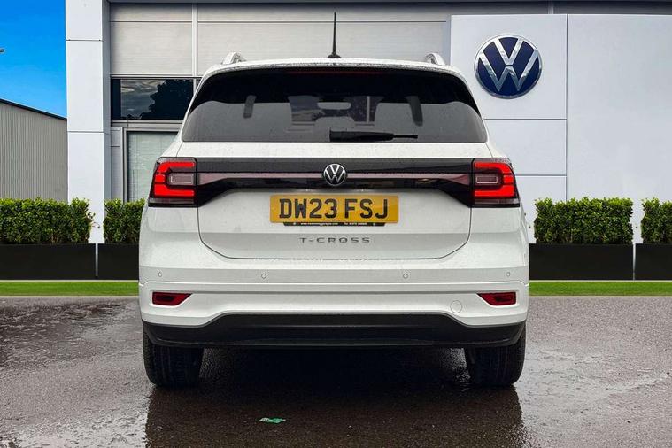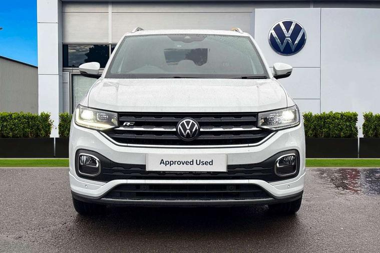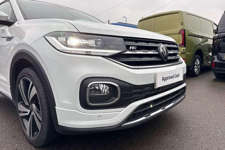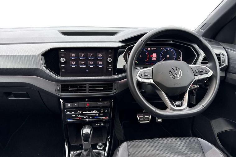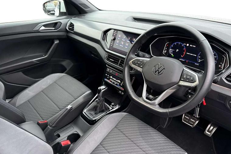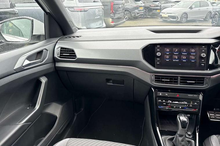 'Lights On' Reminder warning buzzer, 2D/3D map view, Active info display - 10.25" High resolution TFT dash display screen, Adaptive cruise control including front assist, forward collision warning, autonomous emergency braking, speed limiter, Blind spot monitoring, Bluetooth telephone and audio connection for compatible devices, Car information display, Driver alert system, eCall emergency call system, Lane assist, Low washer fluid warning light, Multifunction computer with visual gear change recommendation for fuel consumption, Operating permit alteration, Power assisted speed sensitive steering, Speed limit display, Speedo, rev counter, electronic odometer, trip, service interval display, exterior temperature and fuel gauge, Stop/start system, Tailgate, Warning sound and light for doors and tailgate open, Warning sound and light for front seatbelts unfastened, We connect plus preparation, Wireless Car net app connect with Apple CarPlay, combined functionality of Apple CarPlay/Android Auto and MirrorLink, Battery regeneration during braking, Misfuel prevention device, 2x USB connection with USB charging sockets and in rear centre console, DAB Digital radio receiver, Diversity antenna for FM reception, Multi device interface (MDI) with USB connection, Music playback - MP3, WMA and AAC files, Premium USB cable for Apple or Android smartphone compatibility, Simultaneous pairing of 2 compatible mobile devices, SMS Functionality, Three route options - Fast, Short, Eco, Title and cover art display, Automatic hazard lights activation under emergency braking, Body colour door handles, Body colour door mirrors with integrated indicators, Body colour rear roof spoiler, Body coloured bumpers, Dusk sensor + automatic driving lights, Electrically foldable, adjustable and heated door mirrors with reverse activated kerb view adjustment on passenger's side, Front and rear electric windows, Front fog lights with static cornering function, Galvanised body, Heated rear window, LED third brake light, Lower door sills and door pillars in black, Radiator grille with chrome trim and chrome bezel front fog lamp, Rear fog light on one side, reversing light on both sides, Rear lights incorporating LED technology, Rear side wing doors, Rear tinted glass 65% approx light absorbing from B pillar backwards, Rear window aerial, Rear windscreen washer and wiper with interval delay, Reflectors in all doors, Silver roof rails, Stainless steel door sill protection, Tailgate with integrated roof spoiler, Unique R Line badging, Windscreen wipers/ intermittent wipe + 4 position delay, 12V Accessory socket in centre console, 2 Front and rear reading lights incorporating LED technology, 2 Zone electronic climate control with automatic air recirculation, 3 rear head restraints and 3 rear three point seat belts with ECE label, 3 seat bench in 2nd row, 60/40 split folding rear seat backrest, Ambient lighting and sourround lighting, Black headlining, Branded points of interest, Brushed stainless steel pedals, Carbon flag cloth upholstery, Drawer under drivers seat, Driver and front passenger sunvisor with vanity mirror, Driver's sunvisor with ticket holder, Dust and pollen filter, Front and rear carpet mats with contrast stitching, Front centre armrest with storage compartment, Front footwell illumination, Front seat back storage pockets, Front seat R Line logo with rear seat backrest, Front sports seat with height and lumbar adjustment, Glovebox, Heating and fresh air system with 4 stage blower, Height/reach adjust steering wheel, Instrument lighting white adjustable panel illumination, Interior light with delay, Isofix child seat preparation for 2 rear child seats, Leather trimmed three spoke multifunction steering wheel with contrast stitching and aluminium inserts with R Line logo, Luggage compartment cover, Luggage compartment lighting, Moveable and foldable Rear bench seat, Scuff plates in door apertures, Steering wheel paddle shift, Storage compartment in drivers and front passengers door, R Line styling pack - T-cross, 3-point seat belts in front with electric tensioner + height adjustment, Anti-lock Braking System (ABS) with Hydraulic Brake Assist (HBA), Automatic post collision braking system, Driver and front passenger safety-optimised head restraints, Drivers and Front Passengers airbags with front passengers airbag deactivation switch, ESC with EDL, ASR, EDTC and trailer stabilisation function, Front and rear curtain airbags, Front seat side impact airbags, Hill start assist, Pre crash preventive occupant protection, Proactive passenger protection system in combination with front assist, Rear door child safety locks, Rigid safety cell with front and rear crumple zones, Single torn horn, Tyre pressure loss indicator, Volkswagen roadside assistance, Alarm with interior protection and deactivation via infotainment system, Child security locks in rear doors, Electronic engine immobiliser, Remote tailgate unlocking using key fob, Race decorative inserts in dash and doors, 18" Nevada black alloy wheels, Breakdown kit,