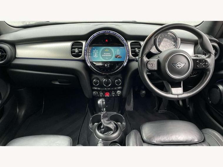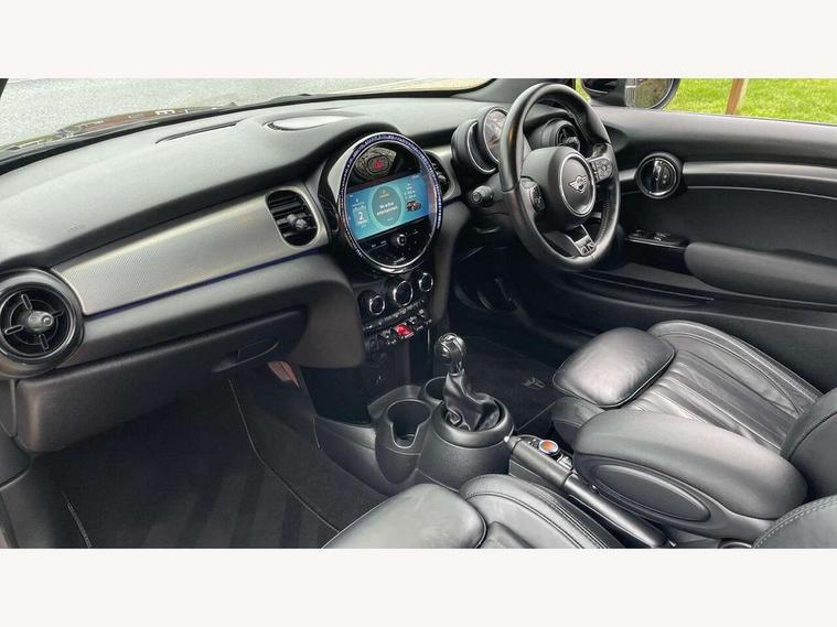 Automatic start/stop function with brake energy recuperation, Compatible mobile phone bluetooth with audio streaming, Cruise control with brake assist, Electro-mechanical speed dependant steering assistance, Flexible car sharing preparation, Instrument cluster, MINI Driving Modes - centre toggle switch to control driving setting (sport, mid and green), Mini E-call, MINI TeleServices, On board computer, Rear park distance control, Service interval indicator, 6 Speed manual transmission including gear change indicator display, Double Vanos system, Fully variable valve control, High precision injection, Performance Control, 4 speakers in front door trims and underneath front seats, 8.8" touchscreen with LED ring, FM tuner and DAB digital radio, Automatic headlight activation switch, Body colour fuel filler cap, Chrome line exterior - radiator grille bars, tailgate handle, lower front grille grating and rear central fog-light, Dynamic brake lights, Electric front windows, Heated rear window, Heated windscreen washer jets, LED headlight with closed ring and daytime driving lights, Metal door sill strips with MINI imprint, Model logo Cooper on right of tailgate, Rain sensor window wipers, Rear fog lights, Rear LED lights with union jack design, Rear window wiper, Side scuttle panel with integrated indicator, Sun/heat protection glass, White indicator lenses, 12V Accessory socket in centre console, 4 lashing eyes in luggage compartment, 60/40 split folding rear seat, Carbon black colour line - Knee roll and door armrest, Chrome interior highlights, Chrome line interior - air vents, gear lever base, door handles and speakers in doors, Cupholders, Front and rear head restraints, Front and rear isofix with front passenger airbag deactivation, Glove compartment, Height and length steering column adjustment, Interior lighting with 12 different colours across the dashboard, underneath door bezel with illuminated laser-engraved design on central display, Leatherette gearshift lever and handbrake gaiters, LED reading lights, vanity mirror lights, front foot well light and spotlight on front seats, Manual air conditioning, Mechanical seat adjustment - forward/back & backrest for front seats and driver seat height adjust, MINI yours badge on exterior pillar, Multifunction steering wheel, Passenger seat height adjuster, Satellite grey headlining including grab handles and clothes hooks, Storage compartments in doors, Sunvisors with vanity mirrors, Velour floor mats, Walknappa leather steering wheel with grey seam and MINI Yours badge on Piano Black lower steering wheel spoke, 3 point seatbelts on all four seats, 6 Airbags - front, side, head and seat belt tensioners, Anti-lock braking system (ABS), DSC - Dynamic Stability Control, Front and rear disc brakes, Single tone fanfare horn, Tyre pressure monitoring system, Alarm system with tilt sensor, monitoring doors, bonnet interior and tailgate, Electronic vehicle immobiliser, Start/stop toggle with keyless go, Tool kit,