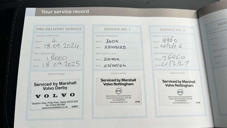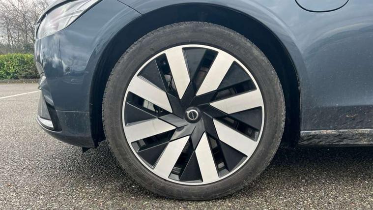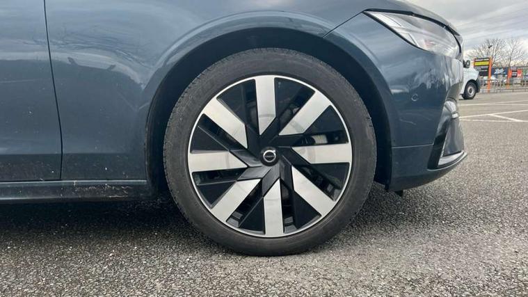 12.3" Progressive Driver Display, 360 degree surround view parking camera with side proximity sensors, 9" centre console touch screen, Adjustable steering wheel force, Apple carplay (wired), Bluetooth handsfree system, Drive mode settings, Driver alert control with lane keeping aid, Driver assistance (pilot assist and adaptive cruise control), Driver awareness - Blind spot system + steer assist, cross traffic alert with autobrake, rear collision warning and mitigation, E-call, Emergency assist, Front and rear park assist, Google automotive services - Enabled entertainment apps, navigation with google maps, voice recognition with google assistant, Handsfree bootlid opening/closing, Intelligent speed assistance, Oncoming Lane Mitigation, Power operated tailgate/boot lid, Speed sensitive steering, Volvo on call app, 3.7 kW monophase on board charger, 6m 3 phase 16amp Type 2 / mode 3 charge cable, 7m 10amp charge cable with 3 pin plug, 8 speed automatic transmission with start/stop + manual change functions, Dynamic chassis, Electric rear axle drive, Lithium-Ion Battery 18.8kWh, On board charger - 6.4 kW 2 phase/3.7kW single phase, Recharging port located in nearside front wing, DAB Radio (Digital Audio Broadcasting), Low speed exterior sound speaker, Premium Sound by Harman Kardon, dirac unison, dolby pro logic II surround sound, 13 speakers/600W output and fresh air subwoofer, Steering wheel remote infotainment controls, Adaptive brake lights with high level LED brake lights, Auto dimming interior + exterior mirrors, Automatic headlight levelling system, Automatic LED Headlights + Active high beam incorporating daytime running lights, Chrome window surround, Colour coordinated auto folding and heated power door mirrors, Front and rear power windows, Heated windscreen, High gloss black door mirrors and window surround, High gloss black front and rear bumper decoratives, High gloss black mesh front grille and surround, Home safe and approach lighting, Integrated roof rails in high gloss black, Puddle lights, Rain sensor with automatic windscreen wiper activation, Rear LED lights with sequential indicators, Rear side wing doors, Rear wiper, Roof antenna, Roof spoiler, Variable front intermittent wipers, Visible VIN plate, 2 zone electronic climate control with Clean zone air quality system + pollen filter, 3 seat bench in 2nd row, 3 Spoke tailored steering wheel with chrome trim, A-pillar parking ticket holder, Air purifier particulate matter (PM) filter, Ambient door and instrument panel lighting, B Pillar ventilation, Boot lid/tailgate illumination, Bright metal luggage compartment threshold, Cargo divider with grocery bag holder, Centre console cupholder and storage, Charcoal carpets and floor mats, Driver and front passenger seat power height adjustment, Extended front seat cushions, Front 12V socket tunnel console and cargo area, Front and rear cabin courtesy light, Front and rear footwell and side step illumination, Front and rear reading lights and centre armrest Storage Illumination, Front headrests, Front/rear door pockets and front cupholder illumination, Glovebox compartment with illumination, Heated front seats, Heated rear seats outer positions, Heated steering wheel, Height/reach adjustable steering column, Illuminated luggage compartment, Illuminated recharge aluminium tread plates, Illuminated vanity mirrors + ticket holder, Inner door release handle illumination, Integrated sun curtains in rear doors, ISOFIX attachment on outer rear seats, Leather upholstery, Load cover, Load protection net, Luggage compartment load hooks, Multi directional lumbar support, Power driver seat with memory for seat and exterior mirrors, Power folding rear headrests, Rear armrest with cupholder, Single front passenger seat, Underfloor cargo storage, Versatile split folding rear seat - 60/40, 3x3 point rear seatbelts, Active bonnet, City safety with steering support with Pedestrian + cyclist + front collision warning with full auto brake and rear auto brake, Drivers knee airbag, Dual stage driver/passenger airbags, Front seats SIPS airbags, Hill start assist, IC (Inflatable Curtains) - Full Length, Passenger airbag cut-off switch, Power child locks on rear doors, Power parking brake with auto hold function, Road sign information display, Run off Road Mitigation, Run off Road Protection, Seatbelt reminder and pretensioners for all seats, SIPS (Side Impact Protection System), Slippery road and hazard light alert, Stability and Traction Control with Spin control, Engine Drag Control and Corner Traction Control, Tyre pressure monitoring system, Vehicle deceleration control with Anti-lock Brake System, Electronic Brake Distribution and Emergency Brake Assist, Warning triangle and first aid kit, WHIPS whiplash protection system - front, 2x Key integrated remote control central locking + fuel flap with deadlocking system and auto open/close power windows, Anti-theft alarm including immobiliser/volume sensor + level sensor, Care key with user defined top speed, Keyless drive includes keyless entry and keyless start, Locking wheel nuts, Private locking for tailgate, Tailored Instrument Panel and Door Tops with Contrast Stitching, 19'' 8 spoke diamond cut black alloy wheels, Tyre sealant kit and compressor,