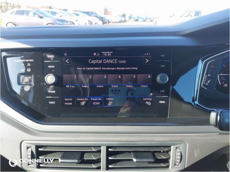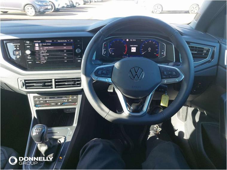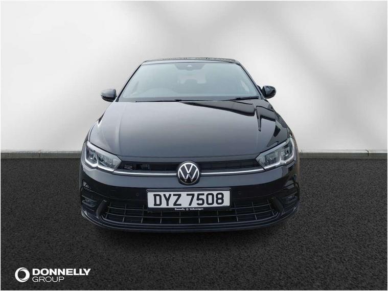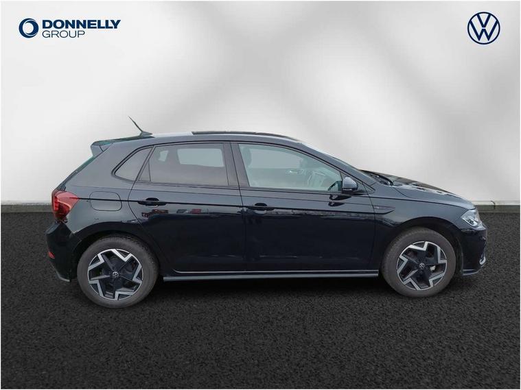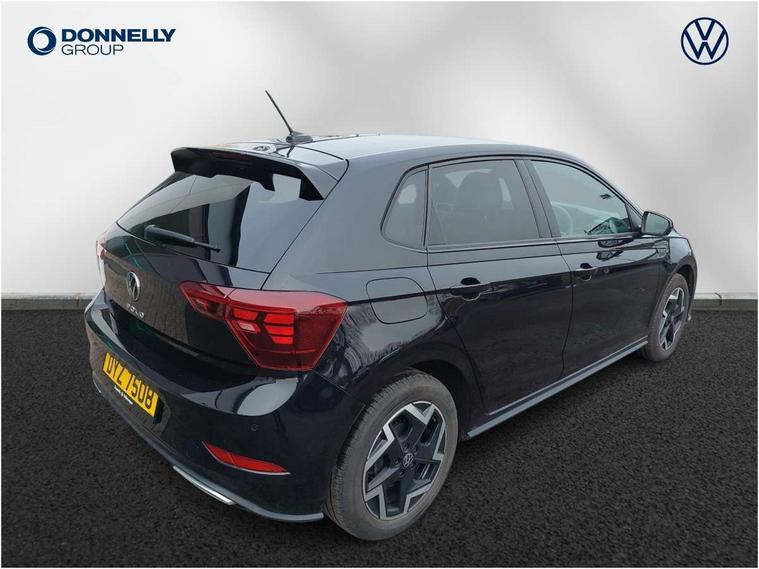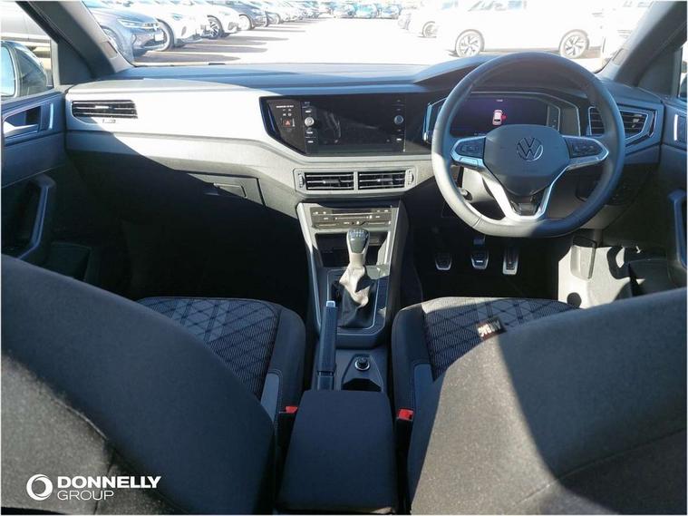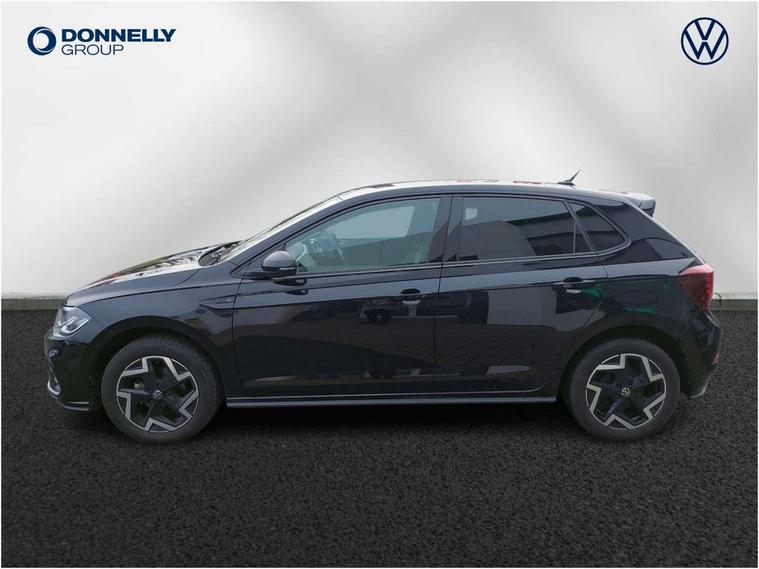 Advanced driver attention and drowsiness monitor, Bluetooth mobile phone interface, Digital Cockpit Pro with 10.25" Display, Dynamic road sign display, Emergency call service, Multifunction camera, Power assisted speed sensitive steering, Predictive adaptive cruise control without follow-to-stop and speed limiter, Preparation for We connect and We connect plus, Speedo and rev counter, electronic odometer, trip, service interval display and fuel gauge, Standard rear axle, Travel Assist - Lane keeping system and traffic jam assist, Travel assist including emergency assist, Trip computer, Warning signal and warning light for front and rear seatbelts not fastened, Washer fluid level indicator, Wireless app connect, Front wheel drive, Rear shock absorpion, Start-stop system with battery regeneration (recuperation - energy recovery during braking), DAB Digital radio, Diversity antenna for FM reception, Body colour bumpers, Body colour door handles, Electric front windows, Front scuff plates with R-Line logo, Heat insulating glass windscreen, Power folding adjustable/heated exterior mirrors and front passenger exterior mirror lowering function, Rear electric windows, Rear fog light, Rear side wing doors, Rear windscreen washer and wiper with interval delay, Third brake light, 12V power socket in centre console, 2 USB-C ports in the front, 2 USB-C charging sockets on the center console in the rear, 3 rear head restraints, 60/40 split folding rear seat and rear seat bench not split, Air care climatronic air conditoning system with active combination filter and 2-zone temperature control, Black roof lining, Carpet mats, front and rear, Chrome plated radiator grille inserts, air vent surrounds and light switch surrounds, Door and side trim panel, Driver and front passenger seat height adjustment, Driver/passenger sunvisors with illuminated vanity mirrors, Front centre armrest, Front footwell illumination, Front seat backrest storage pockets, Front sports comfort seats, Handbrake lever handle in leather, Headliner in recycled material, Isofix child seat preparation easy-fit (for two outer rear seats, and front passenger seat) compatible with I-size, Karoso artvelours cloth upholstery, Leather trimmed gear knob, LED interior light with switch off delay and dimmer, 2 reading lights front and rear, Luggage compartment cover, Luggage compartment floor, Luggage compartment lighting, Lumbar adjustment for front seats, Multifunction steering wheel, Single front passenger seat, Stainless steel pedals, Standard pedal cluster, Light and sight pack - Polo R-Line/Black Edition, 3 point height adj front seatbelts + pretensioners, 3x3 point rear seatbelts, ABS, Driver and front passenger airbag with front passenger airbag deactivation, Drivers and front passengers safety optimised head restraints, ESC (Electronic stability control) + EDL (Electronic Differntial lock) and ASR (Traction control), Extended and predictive pedestrian/ cyclist protection, Front curtain and side airbags with center airbag, Hill hold control, Manual child lock in rear doors, Single tone horn, Tyre pressure loss indicator, Alarm with interior protection, Anti-theft alarm system with interior monitoring, backup horn, and towing protection, Anti-theft wheel bolts, Electronic engine immobiliser, Chrome applications on rotary light, mirror adjustment, window regulator switches, outlet with frame in black, Dark grey anodised matt decorative inserts in dash and front door panels, 16" Coventry alloy wheels, Low rolling resistance tyres,