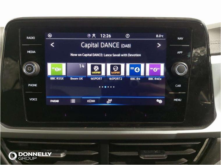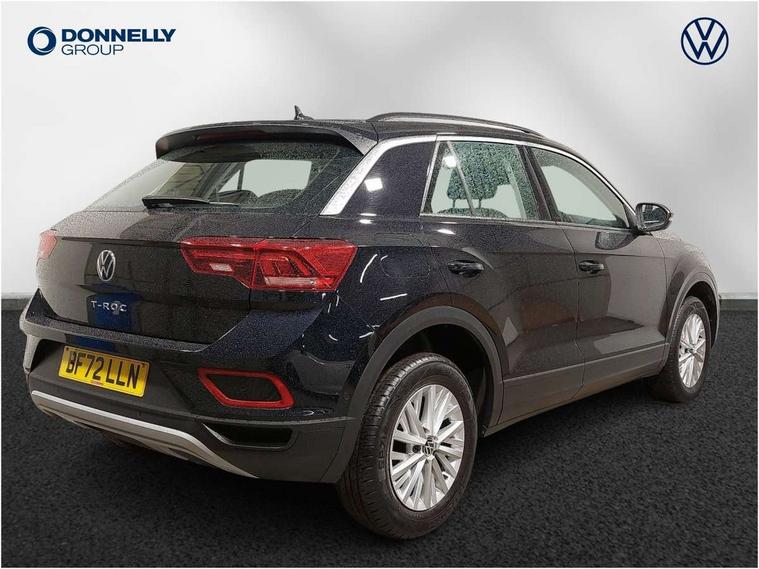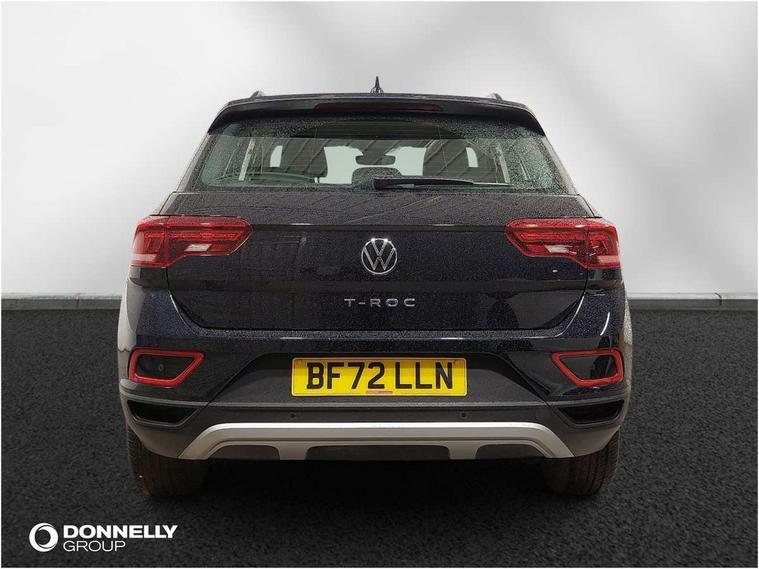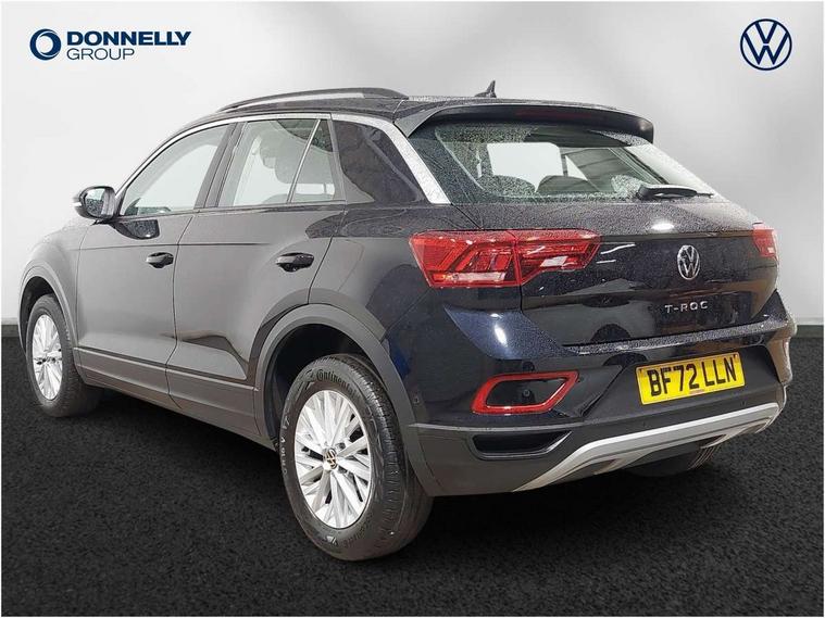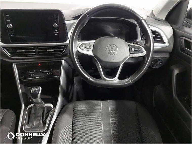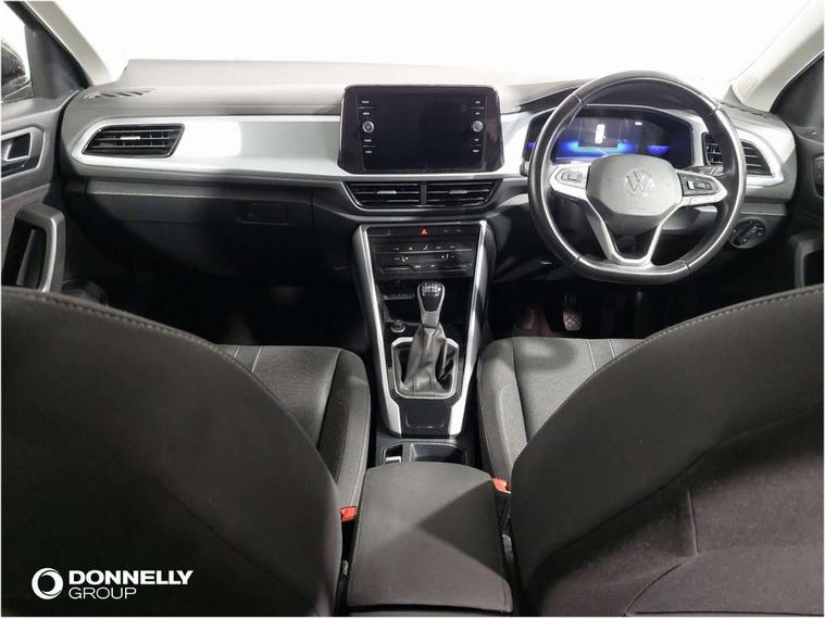 Bluetooth mobile phone interface, Driver alert system with fatigue detection, Driver tips and journey analysis, Emergency call service, Lane keeping system Lane Assist, Modified key software - reduce switch off time for key status change to Long no motion, Online services, Park assist including front and rear parking sensors, Power assisted speed sensitive steering, Service interval indicator, Tailgate/trunk lid release from outside, Think blue trainer driver tips and journey analysis, Warning sound and light for front seatbelts unfastened, Wireless app connect, Battery regeneration during braking, Front shock absorption, Rear shock absorption chassis with increased ride height, Start/stop function with battery regeneration, DAB Digital radio, Diversity antenna for FM reception, Front and rear 6 speakers, Music playback - MP3, WMA and AAC files, Premium USB cable in choice of either Apple or Android smartphone compatibility, SD card slot, Simultaneous pairing of 2 compatible mobile devices, Title and cover art display, We Connect and We Connect Plus functionality, 3rd brake light, Auto dimming interior rear view mirror, Automatic hazard lights activation under emergency braking, Automatic headlight control with LED separate daytime running lights with coming/leaving home function, Black roof rails, Body coloured bumpers and radiator grille with chrome trim and front fog lamps with chrome bezel, Body coloured exterior mirror housings and door handles, Extended roof spoiler, Exterior mirrors aspherical on driver side, convex on front passenger side, External USB type C socket and charging sockets, Front windscreen wiper with intermittent wipe and 4 position delay, Heated rear window, LED Headlights, LED rear combination lamps, LED rear number plate lights, LED tail lamp rear comination lamps, Power windows with comfort operation and circuit breaker, Rain sensor, Rear exhaust tailpipe, Rear fog light on one side and reversing lights on both sides, Rear side wing doors, Rear wash/wipe with intermittent wipe setting, Remote electrically foldable door mirrors, puddle lights and reverse activated passenger's door mirror, 12V power socket in centre console, 3 rear head restraints, 3 seat bench in 2nd row, 4 load lashing points in luggage compartment, Air care climatronic air conditoning system with active combination filter and 2-zone temperature control, Ambient lighting with mirror logo projection, Cloth upholstery, Door and side trim panel in cloth, Drawer under drivers seat, Driver/front passenger seat height adjustment, Front centre armrest, Front comfort sports seats, Front cupholders x 2, Front reading light, Instrument lighting, white adjustable panel illumination, Interior light delay, Isofix child seat preparation, Leather gearshift handle, Load-through provision with cup holder when folded down ('Unsplit rear seat bench, split folding backrest, with centre armrest), Luggage compartment lighting, Lumbar support for driver's and front passengers seat, Non-folding front passenger seat backrest, Single front passenger seat, Storage compartment in left and right luggage area, Storage compartment in rear doors, Storage compartments in driver and front passenger doors, Sunvisors with illuminated vanity mirrors, Variable boot floor, height adjustable and removable, Driver assistance pack without proactive passenger protection - T-Roc, 3 point height adj front seatbelts + pretensioners, 3 point seatbelts in outer rear with ECE label, ABS, Child locks on rear doors, Driver and front passenger airbag with front passenger airbag deactivation, Driver and front passenger safety-optimised head restraints, Drivers seatbelt reminder, Electronic parking brake, Electronic Stability Control (ESC) inc EDL (Electronic Differential Lock) and ASR (Traction Control), Front and rear passengers curtain airbag system including front side airbags, Front assist with city emergency braking and pedestrian monitoring, Front disc brakes, Front seat side impact airbags, Hill start assist, Predictive pedestrian protection, Rear disc brakes, Single tone horn, Tyre pressure loss indicator, Volkswagen roadside assistance, Alarm with interior protection, Anti-theft alarm system with interior monitoring, backup horn, and towing protection, Remote central locking with SAFELOCK, radio remote control with 2 remote control folding keys, Pewter matt decorative inserts for intrument panel, centre console and door panels at the front, Trims for alloy wheels,