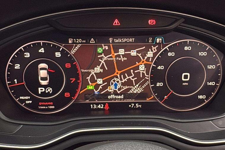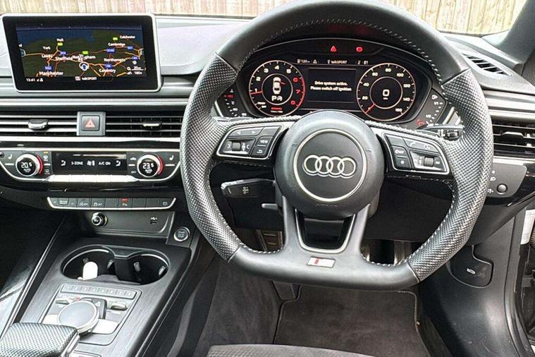 7" Colour driver information system, Audi connect, Audi drive select, Audi parking system plus with front and rear sensors, Audi smartphone interface, Automatic start-stop system with coasting functionality and efficiency programme, Bluetooth interface, Electric boot release, Electro-mechanical power steering, MMI Navigation, Service interval indicator, Voice control system, 2 x USB charging port with aux input socket, CD player, DAB Digital radio, Two SDXC card slots, Air inlets in titanium black with matt aluminium inlay, Auto dimming rear view mirror, Body colour bumpers, Chrome plated exhaust pipe, Electric adjustable heated door mirrors, Electric front windows, Front fog lights, High beam assistant, High gloss black door mirrors, Rain and light sensors, Rear diffuser in Twilight grey matt with honeycomb grille, S Line body styling, S line sill plates, S style high gloss black rear spoiler, Side and rear windows privacy glass, Titanium black frame and radiator grille, Titanium black front and rear air intakes, Titanium black window surround, Windscreen with acoustic glazing, 3 spoke flat bottom high multi-function leather steering wheel, 40/20/40 split folding 2 seater rear seat bench with rear centre armrest, Adjustable steering column, Black headlining, Black perforated leather gearknob, Centre console with cupholders, Contrast stitching on seats, steering wheel and gear lever gaiter, Deluxe 3 zone electronic climate control, Front centre armrest, Front head restraints, Front/rear floor mats, Gearshift paddles, Illuminated door sills, ISOFIX child seat mounting and top tether, Jack and tool kit, Luggage compartment mat, Rear headrests, S embossed logo on front sport seats, Stainless steel pedals and foot rest, Non Smokers pack, 6 airbags - Driver, front passenger, curtain and side airbags, Electromechanical parking brake, Electronic Stabilisation Control (ESC) including ABS, ASR and EDL, Front passenger airbag deactivation, Height adjustable front seatbelts, Hill hold function, Multi-Collision braking, Pop-up bonnet for pedestrian protection, Pre sense city, Seatbelt monitoring, Tyre pressure warning, Variable restraint system, Warning triangle and first aid kit, Anti theft alarm system, Anti theft wheel bolts, Immobiliser, Keyless Go, Remote central locking, Piano black finish inlay, 20" 5 arm rotor alloy design wheels with matt titanium finish, Tyre repair kit,