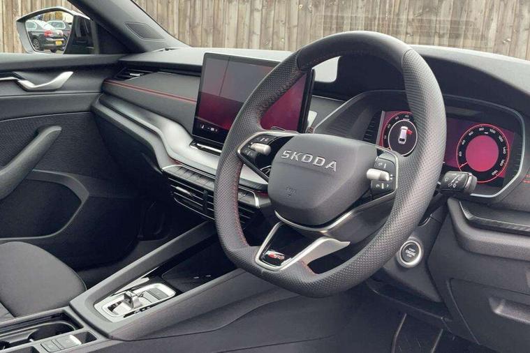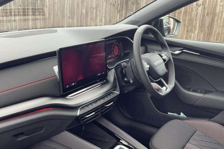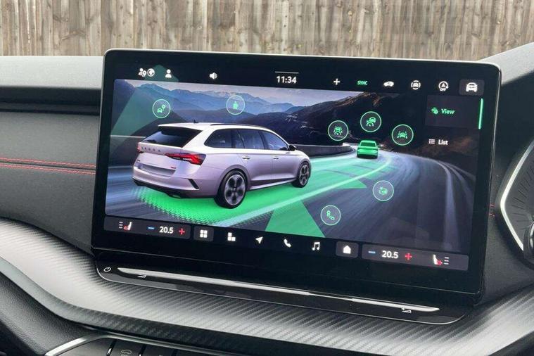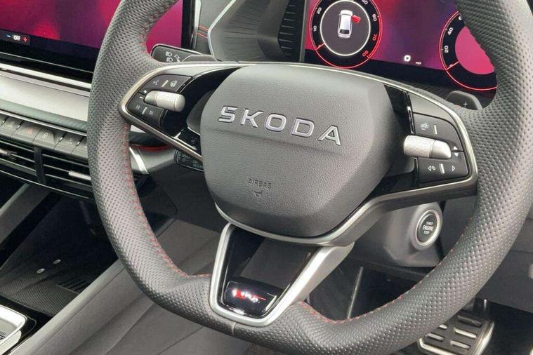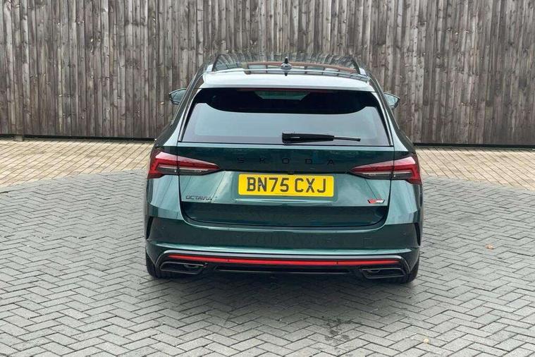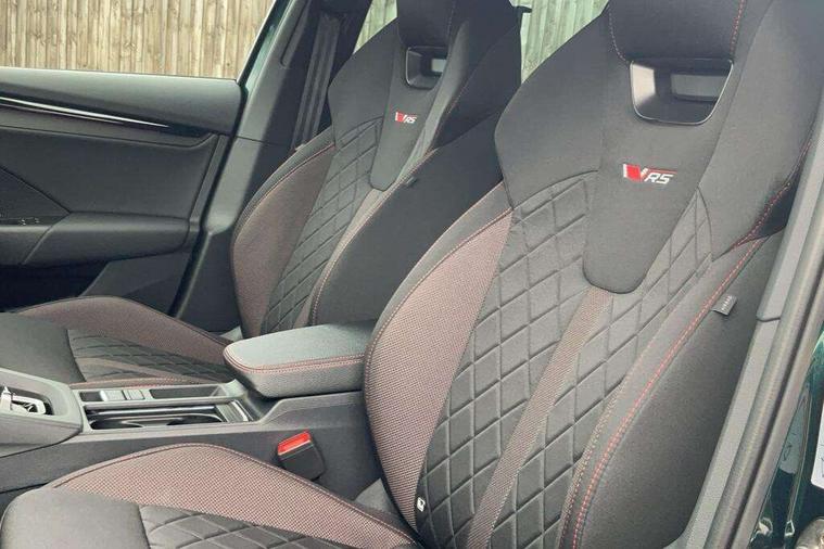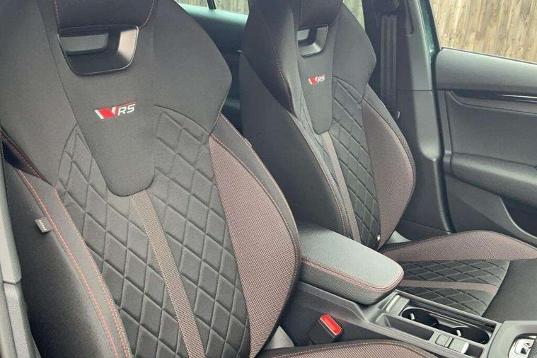 1x USB Typc C port in rear view mirror, 4x USB Type C ports - 2x in front centre console and 2x in rear (45W), Drive mode selection, Driver fatigue sensor, eCall emergency system, Electronic engine sound, Front assist system, Progressive dynamic steering, Traffic sign recognition, Turn Assist, Virtual Cockpit - 10.25" digital display, Voice control system, Wireless charging (15W) with cooling function, Wireless SmartLink for Apple CarPlay and Android Auto, Electronically controlled limited slip differential, vRS suspension, 13" touchscreen display with navigation, DAB Digital radio, Aero front windscreen wipers with intermittent function, Auto dimming rear view mirror, Black sport exhaust pipes, Body colour bumpers, Body colour door handles, Bumpers with rear red reflector strip, Electric front and rear windows, Exterior gloss black sports styling including front grille, window surrounds, door mirrors and badging, Gloss black diffuser, Gloss black roof rails, Gloss black spoiler, Heated rear windscreen, High beam control, High level third brake light, Ice scraper in fuel cap, LED daytime running lights, Logo projection in front doors, Rain and light sensors, Rear fog light on one side and reversing lights on both sides, Rear privacy glass, Rear side wing doors, Rear window wiper, Unique vRS bumpers and exterior styling, 12 volt socket in boot, 2x umbrella in door, 3 rear headrests, 3 seat bench in 2nd row, 4 foldable roof handles, Aluminium pedals, Front head restraints, Front sport seats, Heated front seats, Illuminated glovebox, Interior door handles in dark chrome, Jumbo Box storage, Luggage compartment lighting x2 lights, Mechanical rear seat release from boot, Single front passenger seat, Steering wheel in black leather with black stitching, Storage compartments in left and right of boot, Sun visors with mirrors, Sunglasses storage, Three spoke leather sports multifunction steering wheel with paddles, Ticket holder, Unsplit rear bench seat, split folding backrest with centre armrest with cupholder, Waste bin in door panel, Comfort package - Octavia Estate, Family package - Octavia, Light and view package plus - Octavia, vRS Design Selection pack - Octavia, 3x3 point rear seat belts, Alarm with interior monitoring, tilt sensor and back up horn, Curtain airbags and front side airbags, Driver and front passenger airbags, Drivers knee airbag, Electronic parking brake, ESC including ABS, EBV, MSR, ASR, EDS, HBA, DSR, Front central airbag, Hill hold assist, ISOFIX on front passenger seat and outer rear seats, Passenger airbag deactivate switch, Red brake calipers, Three point seat belts in front and rear, Two tone horn, Tyre pressure monitor, Visual and acoustic seat belt reminder, Warning reflectors in front door, Anti-theft wheel bolts, Keyless entry and start/stop, Remote central locking, Gloss black air vent surrounds, 19" Elias anthracite alloy wheels,
