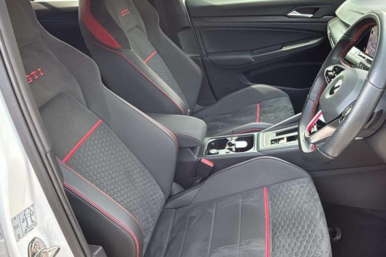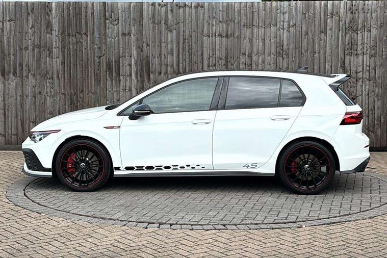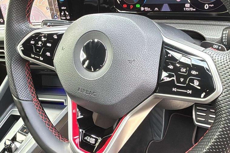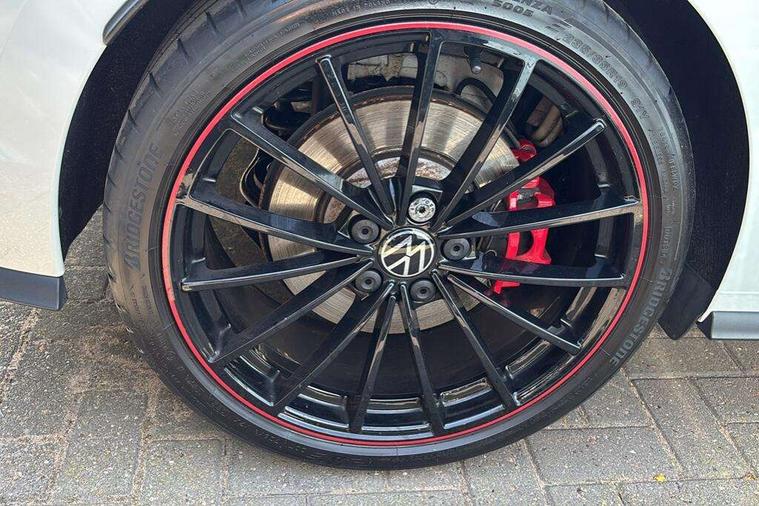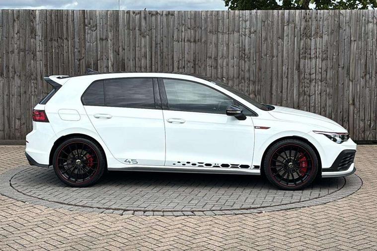 Adaptive cruise control (ACC) with speed limiter and front assist (reacting to vehicles pedestrians and cyclists), Car2X communication, Digital cockpit pro - 10.25" high resolution TFT dash display screen with customizable menus and information, Driver alert system, Driver profile selection, Dynamic road sign display, eCall - Emergency call service for SOS calls to emergency response, Lane assist, Lane change assistant, Mobile phone interface with wireless inductive charging function, Progressive steering, Speedo, rev counter, electronic odometer, trip, service interval display, exterior temperature and fuel gauge, Start/Stop function, Travel assist with emergency side assist with electrically foldable door mirrors, Warning buzzer and light for front seatbelts unfastened, Wireless app connect, Front differential lock, Petrol Particulate Filter, XDS electronic differential lock for improved traction and handling, Premium USB cable in choice of either Apple or Android smartphone compatibility, '45' lettering on the side sill panel and on the boot lid, Advanced high beam control dynamic light assist for LED matrix headlamps, Akrapovic titanium sport exhaust system, Ambient lighting, exterior illuminated styling elements at the sides, Auto dimming rear view mirror, Automatic headlamp activation with Coming home and Leaving home feature, Black painted roof, upper shell of the spoiler and door mirror covers, Body colour bumpers, Body colour door handles, Front and rear electric windows, GTI Clubsport styled bumpers, Heat insulating glass windscreen, Heated rear windscreen, High level 3rd brake light, Highway light, Illuminated front grille, IQ.Light - LED Matrix headlights, dynamic headlight control with advanced high beam control matrix dipped main beam + LED DRL + 22 LED lights, LED front fog lights with 5 honeycomb design, LED License plate illumination, LED rear combination lamp inlcuding dynamic turn signal, Performance rear spoiler, Rain sensor, Rear fog light on one side and reversing lights on both sides, Rear tinted glass 65% light absorbing from B pillar backwards, Rear windscreen washer and wiper with interval delay, Remote electrically heated, adjustable and foldable door mirrors, including door mirror puddle lights and reverse activated kerb-view adjustment on pa, Welcome light, 12V socket in front centre console, 12V socket in luggage compartment, 3 rear head restraints, 3 zone climate with controls in the rear, 45 decal and badge on steering wheel, Aluminium gear knob, Ambient lighting - Customisable 30 colour ambient lighting, Black roof lining, Brushed stainless steel pedals, Centre console, Chrome plated surround to electric mirror button, window switch and air vent surrounds, Door insert in Artvelours, Drivers and front passengers sun visors with vanity mirrors, Front + rear carpet mats, Front centre armrest with storage compartment, Front cupholders x 2, Front reading lights x 2 incorporating LED technology, Front seat lumbar support adjuster, Front sports seats, Glovebox, GTI lettering on the backrests of the front sport seats, Height adjustable front seats, Height and reach adjustable steering wheel, Isofix child seat preparation for 2 rear child seats and front passenger seat, Leather wrapped multifunction sports heated steering wheel with paddle shift, Luggage compartment lighting, Removable luggage compartment cover, Side trim panel and arm support in leatherette, Split folding backrest with centre armrest and unsplit rear seat bench, Woven fabric storage compartments in front and rear doors, 3 point height adj front seatbelts + pretensioners, 3 rear three point seatbelts, ABS, Driver and front passenger airbag with front passenger airbag deactivation, Drivers and front passengers safety optimised head restraints, Electronic parking brake with auto hold, ESC (Electronic Stability Control), Extended pedestrian protection measures, Front and rear passengers curtain airbag system including front side airbags, Front disc brakes, Rear disc brakes, Two tone horn, Tyre pressure monitoring system, Alarm with interior protection and deactivation via infotainment system, Electronic engine immobiliser, Keyless entry with start/stop button on centre console, Black metal chrome decorative inserts in dash and front door trim panels, Soul dashboard, 19" Scottsdale alloy wheels with anti theft wheel bolts, Tyre mobility kit Includes 12V compressor and tyre sealant,