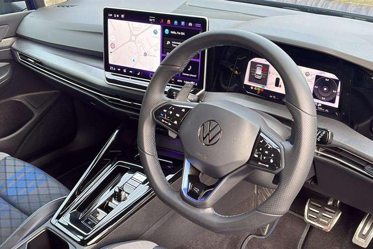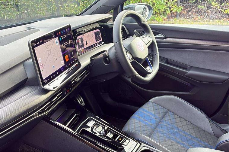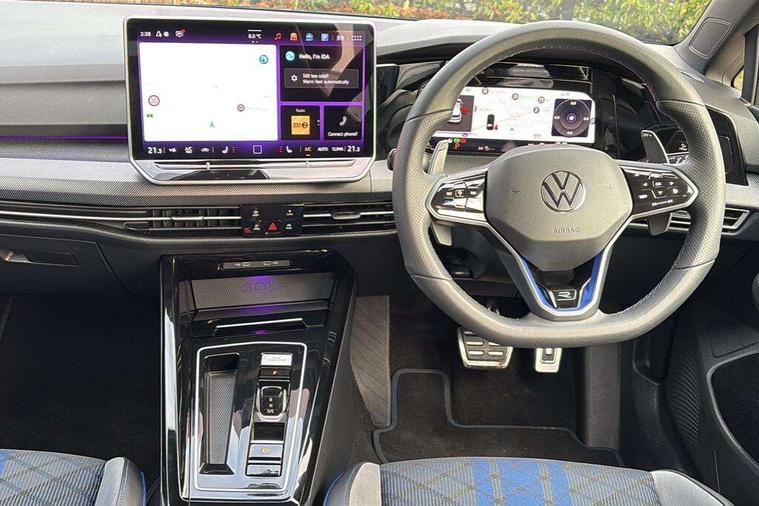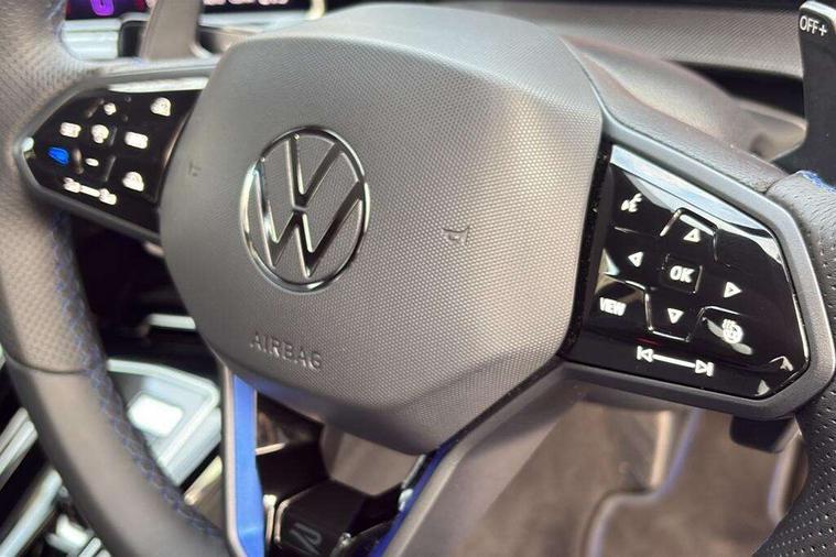 Activated carbon canister, Adaptive cruise control (ACC), Advanced driver attention and drowsiness monitor, Dynamic road sign display, E-Sim card for online connectivity, eCall emergency call system, Electronic maximum speed limit increased to 270 km/h, includes driving Modes 'drift' and 'special', larger roof spolier and GPS laptimer + G-Meter, Multi-color Digital cockpit pro, selection of different info profile possible, Multifunction front facing camera for distance control, Navigation system, Oncoming vehicle braking when turning including swerve support, Side assist blind spot lane change system, rear traffic alert and exit warning system, Speed limiter, Speedo, rev counter, electronic odometer, trip, service interval display, exterior temperature and fuel gauge, Traffic jam assist, Voice enhancer and voice control, Warning signal and warning light for front and rear seatbelts not fastened, We connect plus preparation, We connect preparation, Wireless app connect, All wheel drive - 4Motion, Petrol Particulate Filter, Start-stop system with battery regeneration (recuperation - energy recovery during braking), XDS electronic differential lock for improved traction and handling, 2 USB C ports in front, 2 USB charging sockets on the centre console in the rear charging capacity upto 45W, Digital radio reception (DAB), Diversity antenna for FM reception, Gaming platform via car app, Infotainment system with 12.9" display, Mobile phone interface with inductive charging feature, 3rd brake light, Auto dimming rear view mirror, Automatic headlamp activation with Coming home and Leaving home feature, Black badge on B-pillar, Black mirror caps, Black strips on radiator grille and headlights, Body colour door handles, Darkened headlights, Darkened R Logos and VW logos in front, rear and on fender, Exterior mirrors convex on the left and aspherical on the right, Front and rear electric windows, Front fog lamps and cornering light, Heat insulating windshield made of laminated glass, Illuminated lighting animation with wake up/goodbye scenario, LED matrix headlights with ambient light V2, advanced high beam, dynamic range contol with cornering, LED rear lamp with indicator, poor weather, LED separate daytime running light, R name plate, Rain sensor, Rear fog light on one side and reversing lights on both sides, Rear side wing doors, Rear tinted glass 65% light absorbing from B pillar backwards, Rear windscreen washer and wiper with interval delay, Remote electrically foldable door mirrors, puddle lights and reverse activated passenger's door mirror, Welcome light with surround lighting, 12V socket in front centre console, 12V socket in luggage compartment, 3 rear head restraints, 3 seat bench in 2nd row, 30 colour ambient lighting, illuminated center console storage compartment in front, Air care climatronic 3 Zone automatic climate control with rear air conditioning control panel, Aluminium gearshift handle, Brushed stainless steel pedals, Chrome plated radiator grille inserts, air vent surrounds and light switch surrounds, Entry lights, Front + rear black carpet mats, Front centre armrest, Integrated front head restraints, ISOFIX anchors for child seats on outer rear bench seats and on front passanger seat compatible for i-Size, Luggage compartment lighting, Rear cupholder and loadthough, Single front passenger seat, Soul black instrument panel, Soul black roof lining, Split folding backrest with centre armrest and unsplit rear seat bench, Sun visors with illuminated vanity mirrors, Driver assistance pack - Golf Estate/Hatchback Auto, R styling pack - Golf, Technology park and comfort pro package - Golf Hatchback, 3 point height adj front seatbelts + pretensioners, 3 rear three point seatbelts, ABS, Autonomous emergency braking front assist with pedestrian and cyclist monitoring, Child locks on rear doors, Driver and front passenger airbag with front passenger airbag deactivation, Electronic parking brake with auto hold, ESC (Electronic Stability Control), Extended pedestrian protection measures, Front and rear black brake calipers with darkened R-logo, Hill start assist, Rear disc brakes, Two tone horn, Tyre pressure loss indicator, Volkswagen roadside assistance, Anti theft wheel bolts, Preparation for alcohol interlock, 19" Estoril alloy wheels in black with progressive steering, Sporty vehicle dynamics, Tool kit for tyre mobility set, Tyre mobility kit Includes 12V compressor and tyre sealant, Wheel hub cover with darkened R-logo,