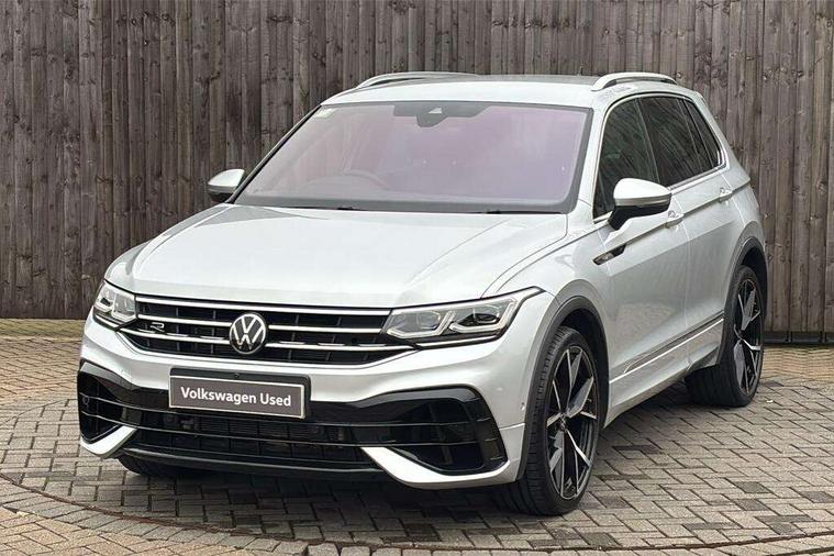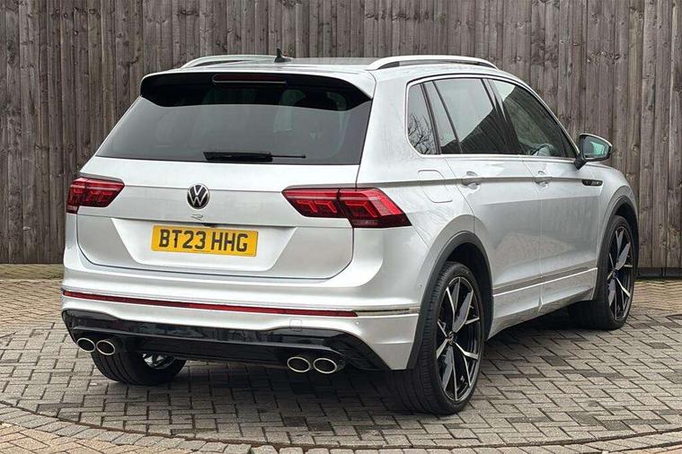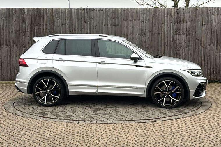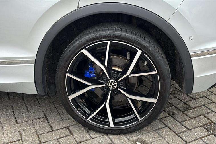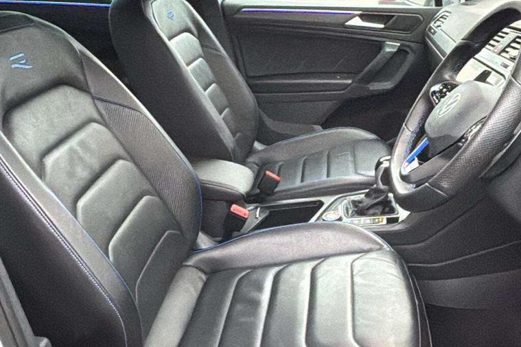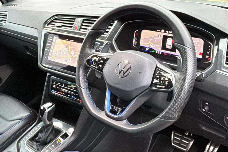Adaptive cruise control ACC stop and go including speed limiter, App-Connect incl. App-Connect Wireless for Apple CarPlay and Android Auto, Bluetooth phone integration system, Distance control assist, Driver alert system, Driver profile selection, Dynamic road sign display, eCall emergency call system, Electromechanical speed sensitive power steering, Engine start/stop button, Instrument cluster mph speedometer Great Britain, Lane keeping system Lane Assist, Lights on warning, Motorised electric tailgate operated via key fob, drivers door and foot movement under tailgate, Multifunction front facing camera, Outside temperature display, Premium multifunction display with multi colour display, Rev counter, Revision / skills operating concept travel assistant, Service interval indicator, Speed limit display, Start/stop system with regenerative braking, Tailgate/trunk lid unlocking from outside, Trip computer, Warning sound and light for doors and tailgate open, ACC - Adaptive chassis contol with adaptive dampers, All wheel drive - 4Motion, Battery regeneration during braking, XDS electronic differential lock for improved traction and handling, 4 X 20 watt output, 8 Speakers, Diversity antenna for FM reception, SD card slot, Simultaneous pairing of 2 compatible mobile devices, SMS functionality - read, compose and send SMS messages using touch-screen display, Title and cover art display, USB C ports, Auto dimming interior rear view mirror, Automatic headlight control system, Body colour door handles, Body coloured door mirrors with integrated indicators, Chrome matt mirror covers, Chrome moldings on the side windows, Coming/leaving home lighting function, Dynamic headlight range control, Front and rear electric windows, Front illuminated door sills with R logo, Heated rear window, High level 3rd brake light, IQ light-Adv high beam, Dynamic light assist for LED matrix headlamp+LED separate DRL+DCL, dark red rear LED tech, Poor weather light+ cornering light, Laminated safety glass windshield, heat and sound insulating, LED rear number plate lights, License plate carrier in front and rear, Poor weather light and cornering light, Privacy glass for rear side windows and rear window, R-Logo light projection, R-Logo on radiator grille with side panels and rear, R-specific diffuser, painted black with cut out for trailer hitch, R-Specific front and rear bumpers, Rain sensor windscreen wipers, Rear fog lamp, Rear side wing doors, Rear spoiler in R style, Rear windscreen washer and wiper with interval delay, Side and rear windows in heat insulating glass, Silver anodised roof rails, Trailer Stability Programme, Windscreen wipers/ intermittent wipe + 4 position delay, 12V outlet in center console rear and in luggage compartment, 12V outlet in front and tray, 2 cup holders in front, 2 LED front reading lights, 2 LED rear reading lights, 3 bench rear seats in 2nd row, 3 rear headrests, 4 load lashing points, 40:20:40 split folding rear seats, Air Care Climatronic 3 zone automatic climate control with enhanced air filter and controls in the rear, Backrest release for left front seat, Black headlining, Climate control unit rear with touch function, Door and side trim panel in foam film, insert in leatherette, Floor mats with R-Logo and stitching, Front centre armrest, Front footwell illumination, Front seats head restraints (x-adjustment), Height adjustable front seats, Height/reach adjust steering wheel, Instrument lighting white adjustable panel illumination, Interior light with delay, Isofix Preparation 2 Rear child seats, Leather gear knob, Lighting door sill trim at front with R Logo, Lockable cooled glovebox, Luggage compartment lighting, Luggage net, Pedals and footrest in stainless steel, R Specific key caps, R-specific sport skin with R Logo in active Info dsiplay, R-taster (direct selection of race mode/ flap control), Rear bench seat asymetrically split folding, longitudinally movable and folding with load-through hatch and center armrest, Remote unlocking for rear seat backrest, Removable luggage cover, Removable rear headrests, Safety optimised front head restraints, Single front passenger seat, Sliding/reclining rear seats, Standard rear seat release, Storage compartment in driver's door, Storage compartment in passenger's door, Storage compartment in rear doors, Storage compartments in luggage area left and right, Storage tray on dashboard, Sun visors with illuminated vanity mirrors, Top sports seats integrated headrest, blue R-Logo in front seats, seat centre panels and outer rear seats in fabric inner side bolster art Velors, Variable boot floor, height adjustable and removable, Easy open and close pack with safelock - Tiguan, 3 point seat belt for centre rear seats, 3 point seat belts with seat belt pretensioners for the outer rear seats, Active bonnet, Curtain airbags for front and rear passengers, Driver/Front Passenger airbags, Drivers knee airbag, Electronic parking brake with auto hold, Electronic Stability Control with driver steering recommendation, ABS, ASR, EDL, EDTC and trailer stabilization, Front assist with autonomous emergency braking (for Adaptive Cruise Control ACC up to 130 mph), Front disc brakes, Front passenger airbag deactivation, Front side airbags, Height adjustable front 3 point seatbelts + pretensioners, Hill hold control, Manual child proof rear door locks, Pedestrian monitoring system, Power assisted brakes, Proactive passenger protection system in combination with front assist, Rear disc brakes, Rigid safety cell with front and rear crumple zones, Two tone horn, Tyre pressure monitoring system, Warning sound and light for front seat belts if unfastened, Anti theft alarm system with interior monitoring, backup horn and towing protection, Anti theft wheel bolts, Central locking system with safelock radio remote control and 2 remote control folding keys, Electronic engine immobiliser, Tool kit, Tyre mobility kit Includes 12V compressor and tyre sealant,