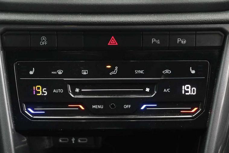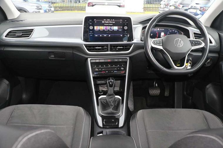 10.25" Digital cockpit pro, Bluetooth mobile phone interface, Driver alert system with fatigue detection, Driver tips and journey analysis, Emergency call service, Lane keeping system Lane Assist, Modified key software - reduce switch off time for key status change to Long no motion, Online services, Park assist including front and rear parking sensors, Service interval indicator, Tailgate/trunk lid release from outside, Think blue trainer driver tips and journey analysis, Warning sound and light for front seatbelts unfastened, Wireless app connect, Battery regeneration during braking, Start/stop function with battery regeneration, Diversity antenna for FM reception, Front and rear 6 speakers, Music playback - MP3, WMA and AAC files, Premium USB cable in choice of either Apple or Android smartphone compatibility, SD card slot, Simultaneous pairing of 2 compatible mobile devices, Title and cover art display, We Connect and We Connect Plus functionality, 3rd brake light, Auto dimming interior rear view mirror, Automatic hazard lights activation under emergency braking, Automatic headlight control with LED separate daytime running lights with coming/leaving home function, Body colour sports bumpers with silver metallic underbody fascia, Dynamic headlight range control with self adjusting whilst driving, Extended roof spoiler, Exterior mirrors aspherical on driver side, convex on front passenger side, External USB type C socket and charging sockets, Front windscreen wiper with intermittent wipe and 4 position delay, Heated rear window, LED Plus headlamps, LED rear combination lamps, LED rear number plate lights, LED tail lamp rear comination lamps, Light mode for poor weather, rain, fog or snow, Power windows with comfort operation and circuit breaker, Rain sensor, Rear exhaust tailpipe, Rear fog light on one side and reversing lights on both sides, Rear side wing doors, Rear wash/wipe with intermittent wipe setting, Remote electrically foldable door mirrors, puddle lights and reverse activated passenger's door mirror, 12V power socket in centre console, 3 rear head restraints, 3 seat bench in 2nd row, 4 load lashing points in luggage compartment, Air care climatronic air conditoning system with active combination filter and 2-zone temperature control, Chrome plated radiator grille inserts, air vent surrounds and light switch surrounds, Door and side trim panel with leatherette insert, Drawer under drivers seat, Front + rear carpet mats, Front centre armrest, Front comfort sports seats, Front cupholders x 2, Front footwell illumination, Instrument lighting, white adjustable panel illumination, Interior ambient lighting and surround lighting, Interior light delay, Isofix child seat preparation, Leather gearshift handle, LED interior light with switch off delay/dimmer and 2 front/rear LED reading lights, Load-through provision with cup holder when folded down ('Unsplit rear seat bench, split folding backrest, with centre armrest), Luggage compartment lighting, Non-folding front passenger seat backrest, Single front passenger seat, Storage compartment in left and right luggage area, Storage compartment in rear doors, Storage compartments in driver and front passenger doors, Sunvisors with illuminated vanity mirrors, Variable boot floor, height adjustable and removable, Driver assistance pack without proactive passenger protection - T-Roc, 3 point height adj front seatbelts + pretensioners, 3 point seatbelts in outer rear with ECE label, ABS, Child locks on rear doors, Driver and front passenger airbag with front passenger airbag deactivation, Driver and front passenger safety-optimised head restraints, Drivers seatbelt reminder, Electronic parking brake, Electronic Stability Control (ESC) inc EDL (Electronic Differential Lock) and ASR (Traction Control), Front and rear passengers curtain airbag system including front side airbags, Front assist with city emergency braking and pedestrian monitoring, Front seat side impact airbags, Predictive pedestrian protection, Rear disc brakes, Single tone horn, Tyre pressure loss indicator, Volkswagen roadside assistance, Alarm with interior protection, Anti-theft alarm system with interior monitoring, backup horn, and towing protection, Remote central locking with SAFELOCK, radio remote control with 2 remote control folding keys, Trims for alloy wheels,