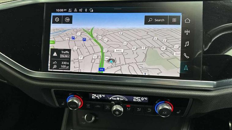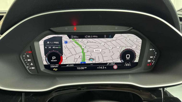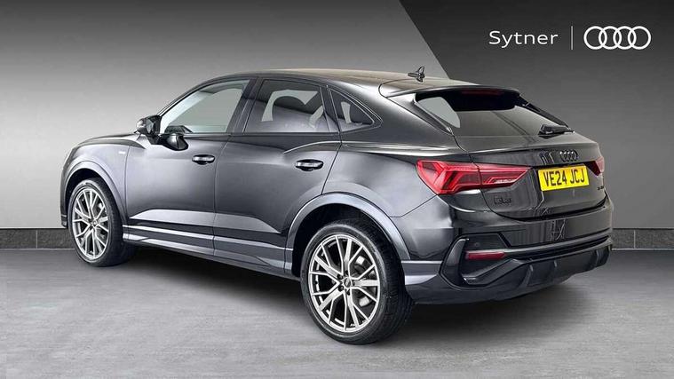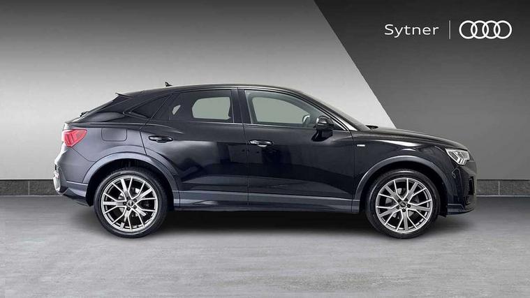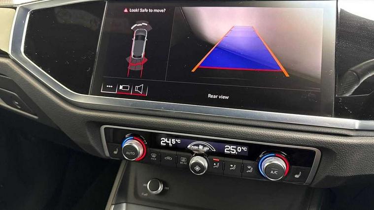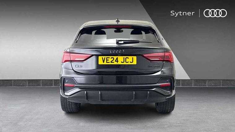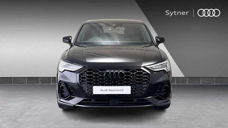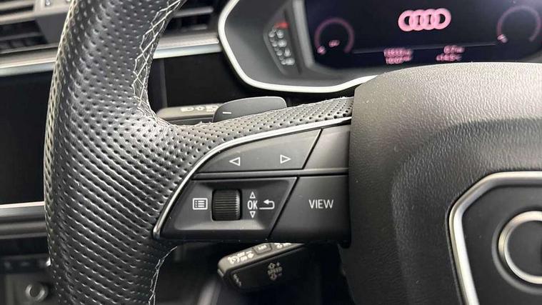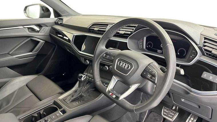 Audi connect safety and service, Audi drive select, Audi lane departure warning, Audi smartphone interface includes wireless Apple carplay/Android Auto, Audi Virtual Cockpit - 10.25" display, Bluetooth interface, Camera based traffic sign recognition, Distraction and Fatigue warning, Legal emergency call, MMI Navigation Plus with high resolution 10.1 inch touchscreen colour display, Power operated tailgate, Progressive steering, Service interval indicator, Start stop system with recuperation, Voice control system with natural language interaction, Sports suspension, 2 USB-C ports with charge and data functions, 6 passive loudspeakers, DAB digital radio module, Acoustic windscreen, Audi Beam uses LEDs to project the Audi logo onto the ground as you exit your Q3, Auto dimming door mirrors, Auto dimming frameless rear view mirror, Diffuser grille in grained matt black, Diffuser trim in selenite silver, Electrically folding, adjustable and heated door mirrors with integrated LED side indicators and kerb view function for passenger side, Front and rear electric windows, Front fog lights, Front underbody protection in manhattan grey paint finish, High gloss black finish B and C pillars, LED Dynamic rear indicators, LED headlights with LED daytime running lights, LED rear lights, LED third brake light, Privacy glass dark tinted rear and rear-side windows (from B-pillar backwards), Rain and light sensors, Rear side wing doors, Rear underbody protection in matt black, Rear wiper, S line front and rear bumpers and side skirts in contrasting Manhattan grey paint finish, Variable front intermittent wipers, 12V socket in rear centre console, 3 seat bench in 2nd row, 40:20:40 folding with manual adjustment for 60:40 forwards/backwards position and backrest angle, Adjustable rear seat bench/backrest with centre armrest and cupholder, Black cloth headlining, Dual zone electronic climate control, Electric lumbar support, Front and rear black floor mats with contrast stitching, Front and rear headrests, Front centre armrest, Height and reach adjustable steering wheel, Illuminated door sill trims with S logo, ISOFIX child seat mounting for front passenger with airbag deactivation and outer rear seat including top tether attachment point for outer rear seats, Luggage compartment sill protection in stainless steel, Manual front seats with height adjustment, Perforated leather gearknob, Single front passenger seat, Stainless steel pedals, Twin leather upholstery with front sport seats + S embossing, Black styling pack - Q3, Non smoking pack - Q3, 3x3 point rear seatbelts, 6 airbags - Driver, front passenger, curtain and side windows, Audi pre-sense front with pedestrain and cyclist recognition, Electrically operated child locks on rear doors, Electromechanical parking brake, Electronic stabilisation control including ABS, ASR and EDL, Front seatbelt reminder, Hill descent control, Hill hold assist, Pre sense basic, Seatbelt monitoring, Tyre pressure warning, Warning triangle and first aid kit, Anti theft alarm, Anti theft wheel bolts, Immobiliser, Remote central locking, Aluminium look interior elements, Detail dashboard around MMI touch colour display in glass look, black with surround in aluminium look, Leatherette door armrest, Piano black inlay,