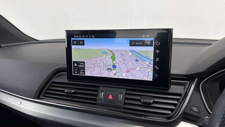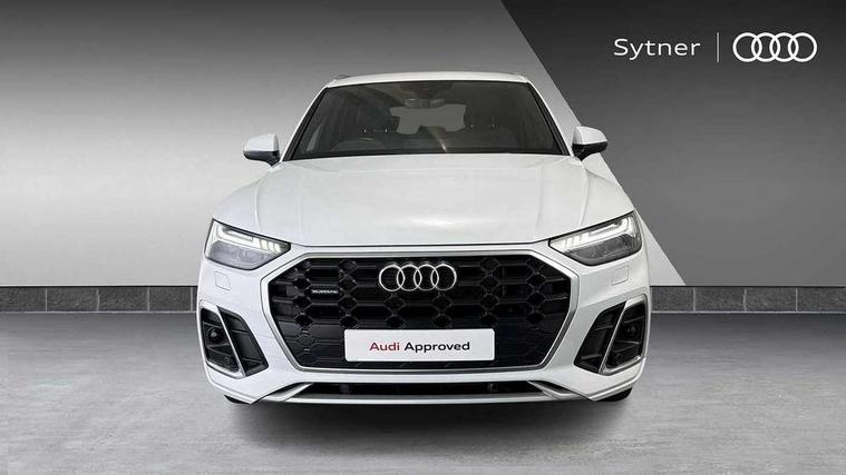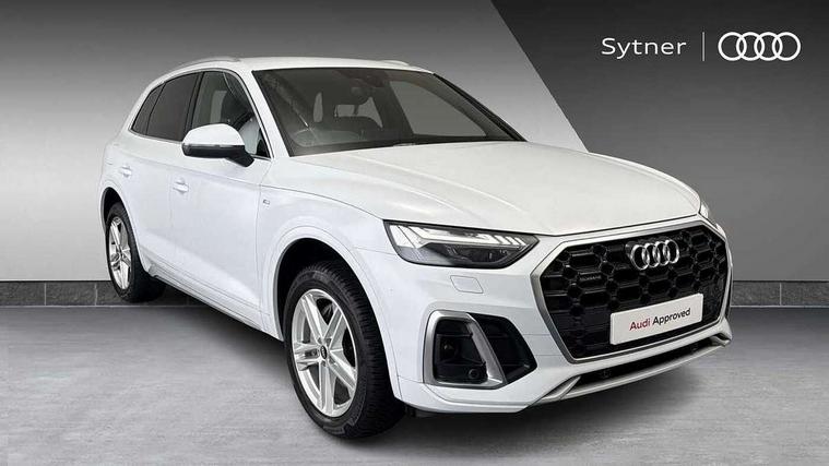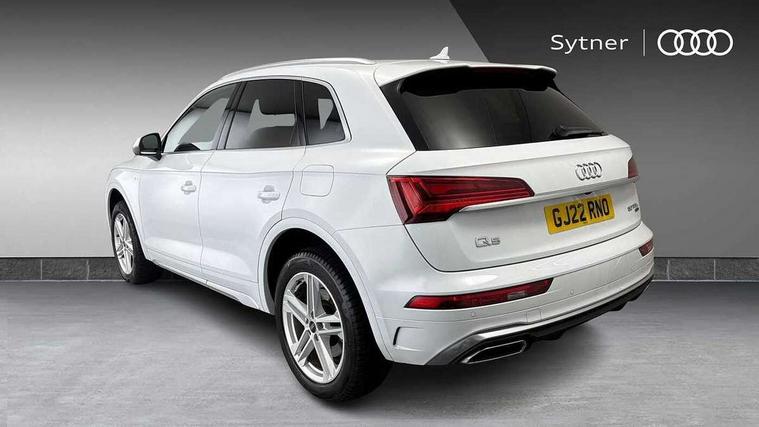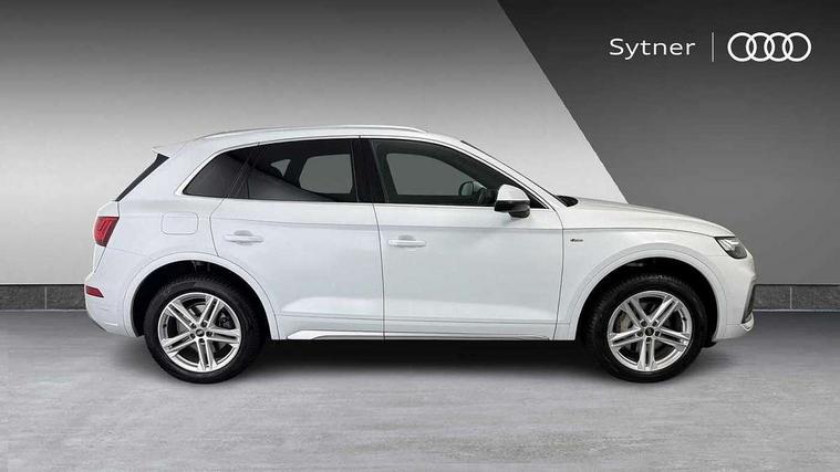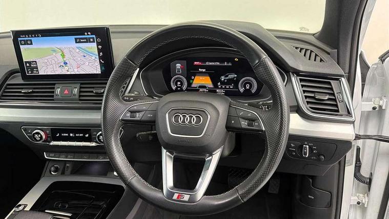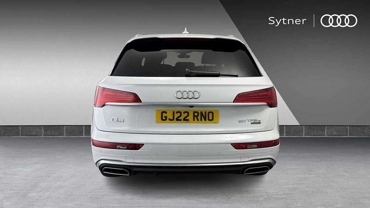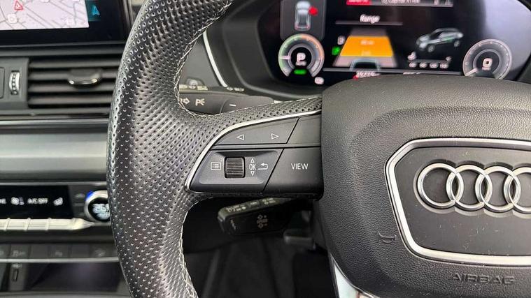 Audi connect safety and service (e-call), Audi connect with Amazon Alexa Integration, Audi drive select, Audi virtual cockpit plus with 12.3" screen and three different layout designs, Audi wireless smartphone interface, Automatic start-stop system with coasting functionality and efficiency programme, Bluetooth interface, Electro - mechanical power assisted steering, MMI navigation plus with 10.1" touch screen, Power tailgate, Reversing camera, Service interval indicator, Voice control system with Audi hotword activation "Hey Audi", 3 pin 10 amp domestic charging cable, 7.4 kW onboard charger, Dynamic suspension, Quattro on demand, Type 2 mode 3 22kW 32 amp charging cable, Type 2 socket for AC charging, DAB Digital radio, 3rd brake light, Acoustic windscreen, Aluminium roof rails, Audi matrix LED headlights with dynamic front and rear indicators, Auto dimming door mirrors, Auto dimming rear view mirror, Automatic headlights and windscreen wipers, Body colour bumpers, Body colour door mirrors, Body colour rear diffuser with matt aluminium silver surrounds, Body colour underbody protection, Chrome plated exhaust trims, Daytime running lights, Door sills in Selenite silver, Electric adjustable/heated/folding door mirrors, Front air inlet surrounds in aluminium, Front and rear electric windows, Front radiator grille in honeycomb design, Headlight washers, Lower bumpers painted in contrast Manhattan grey, Rear chrome trim strip below lights, Rear privacy glass and rear side windows, Rear side wing doors, Rear wiper, Roof bars, S Line badges on the front wings, S Line front and rear bumpers, S Line rear spoiler, S Line side skirts, 2 x USB charging port with aux input socket, 3 rear headrests, 40:20:40 split folding 3 rear bench seat in 2nd row with rear centre armrest, Black cloth headlining, Comfort front centre armrest, Contrast stitching on seats, steering wheel and gear lever gaiter, Deluxe 3 zone electronic climate control, Front/rear floor mats, Gear lever in black leather, Heated front seats, Height adjustable front head restraints, Height/reach adjustable steering column, Illuminated door sill trims with S logo, ISOFIX child seat mounting and top tether, Manual seat adjustment with 4-way electric lumbar support, Rear seat bench plus, Single front passenger seat, Sunvisors with vanity mirrors, Tool kit, Trunk roller cover, High gloss pack - Q5, LED interior light pack - Q5, 3 point seatbelts on all seats, 6 airbags - Driver, front passenger, curtain and side airbags, Electrically operated child locks on rear doors, Electromechanical parking brake, Electronic stabilisation control including ABS, ASR and EDL, Front passenger airbag deactivation, Hill descent control, Hill hold assist, Multi collision brake assist, Pop-up bonnet for pedestrian protection, Pre sense city, Seat belt force limiter, Seatbelt monitoring, Tyre pressure warning, Warning triangle and first aid kit, Anti theft alarm, Anti-theft wheel bolts, Keyless Go access/ignition system, Remote central locking, Matt brushed aluminium inlays, Tyre repair kit,