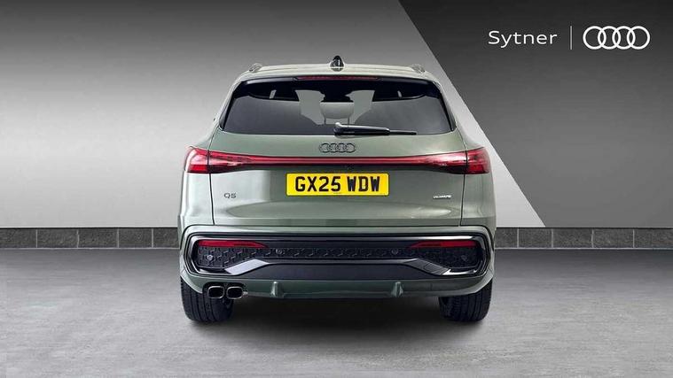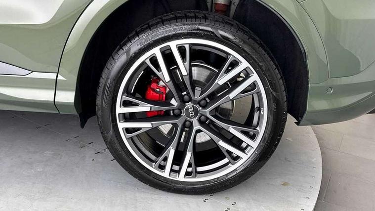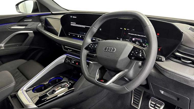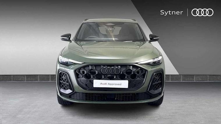Adaptive cruise control, Advanced driver attention alert, Audi application store, Audi connect emergency call and service, Audi drive select, Audi smartphone interface, Audi virtual cockpit plus with 11.9" OLED colour display, Camera based traffic sign recognition, Fatigue monitor, Front cross traffic intersection assist, Lane change assistant with exit warning system, rear cross traffic alert and rear turn assist, Lane departure warning with emergency assist, MMI 10.9" front passenger touch display, MMI navigation plus with high resolution 14.5" OLED touchscreen colour display, Park assist plus, Parking system plus with 360 display, PAS, Reversing camera, Swerve assist and turn assist, Top view camera, Traffic sign based speed limiter, 2 USB-C ports in both the front and rear, Audi sound system impressive sound with 10 loudspeakers including centre speaker and subwoofer, 6-channel amplifier with a total output of 180 watts, DAB Digital radio, Smartphone compartment with wireless charging, Active digital light signatures - Six additional combinations of active daytime running light signature, Auto dimming rear view mirror, Black roof rails, Coming/leaving home lighting function, Electrically adjustable heated and folding + automatically dimming exterior mirrors, Exhaust tailpipes in dark chrome, Front and rear electric windows, Front door sill trims with aluminium inlays, illuminated with 'S' logo, Full body paint finish, Headlight cleaning system, Heated rear window, High beam assist, High gloss window surrounds, Inlay and front air inlets in matt anthracite chrome, LED rear lights pro incl. dynamic rear indicators and illuminated light strip with animated coming and leaving home function, Logo projection light in exterior mirrors, Matrix LED headlights, Memory function for door mirrors, Privacy glass, Projection light for rear window, Radiator grille in phantom black, Rear and side windows with heat insulating glass, Rear honeycombe grille in matt black with inlay in matt anthracite chrome, Rear side wing doors, Rear wash/wipe, S Line badge on the front wings, Towbar preparation, Windscreen with acoustic glazing, 3 rear head restraints, 3 seat bench in 2nd row, 3 spoke leather steering wheel with multi-function buttons with touch control, flattened on top and bottom, with S badging and contrast stitching, 4 way electric lumbar support for driver and front passenger, 40:20:40 split folding rear seat bench with centre armrest and cup holders, Comfort centre armrest, Deluxe 3 zone electronic climate control, Dinamica microfiber/leather upholstery, Electrically adjustable front seats with memory function for driver's side, Front and rear floor mats, Front sport seats with integrated head reastrains, Headlining in black cloth, Heated front seats, i-Size child seat mounting on the front passenger side and outer rear seats, i-Size and top tether on the outer rear seats, Interior trim in aluminium look, Luggage compartment lid, electrically opening and closing, Manual steering column adjustment, Single front passenger seat, Softwrap in Dinamica, Stainless steel pedals and footrest, Steering wheel grips in perforated leather and shift paddles, Ambient lighting package plus - Q5, Black styling package plus - Q5, Storage and luggage compartment pack - Q5, 3x3 point rear seatbelts, ABS, Acoustic vehicle alerting system, Convenience key with safelock, Driver and front passenger airbag with passenger airbag deactivation, Electric child safety locks, First aid kit with warning triangle and high visibility vests, Front emergency brake assist, Front side airbags with head airbag system and front interaction airbag, Hill hold assist, Occupant detection in rear seat area, Proactive passenger protection system for front, sides and rear, Red brake calipers, Side airbags in front and rear with head airbag system and front interaction airbag, Tyre pressure loss indicator, Anti theft alarm, Anti-theft wheel bolts, Remote control key with SAFELOCK and keyless go, Accent surfaces and control buttons in gloss black, Black dashboard with contrast stitching, Steel grey seat stitching, Upper and lower interior elements in dinamica microfiber, Tyre repair kit,