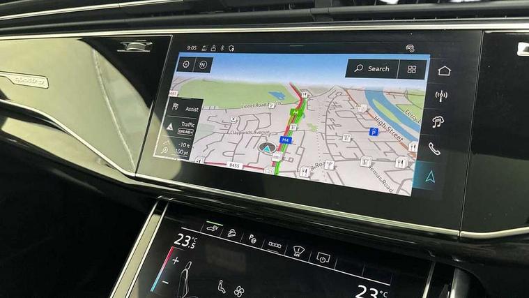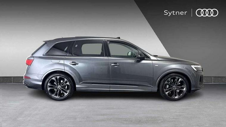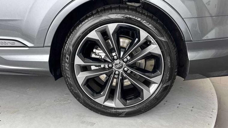 Audi connect safety and service (e-call), Audi connect with Amazon Alexa Integration, Audi drive select (Auto, Comfort, Dynamic, Efficiency, Individual, Off-road and All road), Audi phone box light with wireless charging, Audi virtual cockpit - 12.3" high-resolution classic display with fully customisable instrument cluster, Bluetooth interface, Camera based traffic sign recognition, Electromechanical power steering, MMI navigation plus with MMI touch screens includes 10.1" and 8.6" screens with haptic feedback, Natural voice recognition, Operating buttons in Matte black, Parking system plus with 360 degree display (front, rear and side sensors) - acoustic and visual park assist system, Power operated tailgate, Rear view camera, Smartphone interface includes wireless Apple carplay/Android Auto, Start/stop system, 85 litre fuel tank, Adaptive air sports suspension, Quattro all wheel drive with self locking centre differential, Audi music interface - front 2 USB-C ports with charger and data functions, Audi sound system with 6 channel amplifier, 180 watt amplifying capacity and 10 loudspeakers including subwoofer, DAB digital radio module, Aluminium window trim, Audi Beam uses LEDs to project S emblem with red rhombus onto the ground when opening the side doors (front/rear), Auto dimming frameless rear view mirror, Black exhausts, Black roof rails, Electrically adj heated/folding + automatically dimming exterior mirrors with memory + automatic kerb side function for passenger side exterior mirror, Heat insulating glass in windshield, Integrated LED indications in door mirrors, LED 3rd brake light, LED daytime running lights, LED rear tail lights, Loading edge protection in stainless steel, Matrix LED headlights with dynamic front and rear indicators, Privacy glass - dark tinted rear and rear side windows from B-pillar backwards, Rear side wing doors, Rear wiper, 3 seat bench in 2nd row, 3 zone climate control, Black carpets, Black cloth headlining, Comfort front centre armrest, Electric adjustable front seat with 4 way lumbar support, driver memory functionality, Folding rear seats, Front head restraints, Front/rear floor mats, Heated front seats, Illuminated door sill trims with S logo, ISOFIX child seat mounting for front passenger seat and 2 outer rear seats with top tether child seat mounting for all 3 rear seats, LED interior ambient lighting, Luggage compartment cover, Luggage compartment sill protection in stainless steel, Rear head restraints, Single front passenger seat, Sunvisors with illuminated vanity mirrors, Black styling pack plus - Q7, 3 point seatbelts on all rear seats, Audi pre sense basic, Audi pre sense front, Child locks on rear doors, Convenience key with safelock and gesture tailgate, Driver and front passenger, front side and curtain airbags, Electromechanical parking brake, Electronic Stabilisation Control (ESC) including ABS, ASR and EDL, Extended pedestrian protection measures, Hill hold assist, Seatbelt reminder, Tyre pressure loss indicator, Warning triangle and first aid kit, Anti theft alarm with tow away protection, Anti-theft wheel bolts and wheel loosening detection, Keyless Go, Remote central locking, Black dashboard, Polished oak trim with grey finish inlay, Tool kit, Tyre repair kit,