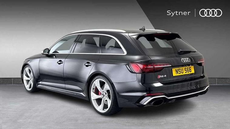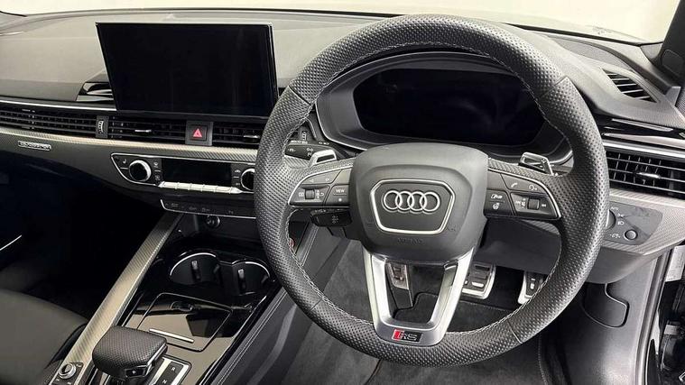 7" Colour driver information system, Audi connect safety and service (e-call), Audi drive select, Audi side assist, Audi smartphone interface, Audi virtual cockpit with RS specific display, Automatic start-stop system with coasting functionality and efficiency programme, Bluetooth interface, Camera based traffic sign recognition, Electromechanical power steering, Email, calendar and text messages displayed via MMI, Lane departure warning, MMI Navigation plus with MMI touch includes 10.1" high resolution colour MMI display, 3D map, Power opening/closing tailgate, Service interval indicator, Voice control system, 58 Litre fuel tank, Quattro sports differential, 2 USB charging ports, Audi sound system, DAB digital radio module, 3rd brake light, Acoustic windscreen, Audi Beam uses LEDs to project the RS logo onto ground as you exit your RS4, Audi matrix LED headlights with LED rear lights + dynamic front and rear indicators, Auto dimming rear view mirror, Automatic headlights + automatic windscreen wipers, Blue tinted glass, Body colour door handles, Electric front windows, Electric rear windows, Electrically folding auto dimming/adjustable/heated door mirrors with memory function, LED side indicators and kerb view function for passenger side, Flared front and rear wheel arches, Front bumper with enlarged air inlets, Front spoiler in matt aluminium look finish, Headlight range control, High beam assistant, High gloss black triangular aperture at rear door, Honeycomb design grille with quattro logo, Lateral air inlets next to front headlights, LED daytime running lights, LED indicators in door mirrors, Matt aluminium door mirrors, Privacy glass with rear acoustic glazing, Rain and light sensors, Rear side wing doors, Rear wiper, Roof rails in aluminium matt look finish, Roof spoiler, RS 4 badges on grille and rear, RS4 dual branch chrome tailpipes with left and right oval pipes, Side sill extensions in body colour with high gloss black inserts, 3 seat bench in 2nd row, 40/20/40 split folding rear seats with rear centre armrest, Black cloth headlining, Deluxe 3 zone electronic climate control, Door armrests and knee pad in leatherette, Electric load area cover, Electrically adjustable front seats, Front centre armrest, Front headrests, Heated front seats, Heated steering wheel, Height and reach adjustable steering wheel with full size airbag, Illuminated door sill trims with RS4 logo, ISOFIX child seat mounting and top tether, Luggage compartment carpet, Rear headrests, Retractable load area cover, Single front passenger seat, Stainless steel pedals, Sunvisors with vanity mirrors, LED Interior light pack - RS4, Non Smokers pack, 3 point seatbelts on all rear seats, Adaptive driver and front passenger airbags, Attention and drowsiness assist, Electromechanical parking brake, Electronic stabilisation control including ABS, ASR and EDL, Enhanced braking system, Front head airbags, Front seatbelt pretensioners + load limiters, Front side airbags, Hill hold assist, Manual child lock in rear doors, Multi-Collision braking, Pop-up bonnet for pedestrian protection, Pre sense city, Rear side airbags, Seatbelt monitoring, Traction control, Tyre pressure warning, Variable restraint system, Warning triangle and first aid kit, Anti theft alarm, Anti-theft wheel bolts, Immobiliser, Keyless Go, Remote central locking, Remote control key with RS emblem, Antracite aluminium race inlays, Tool kit, Tyre repair kit,