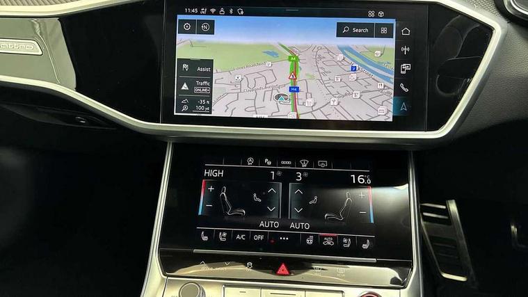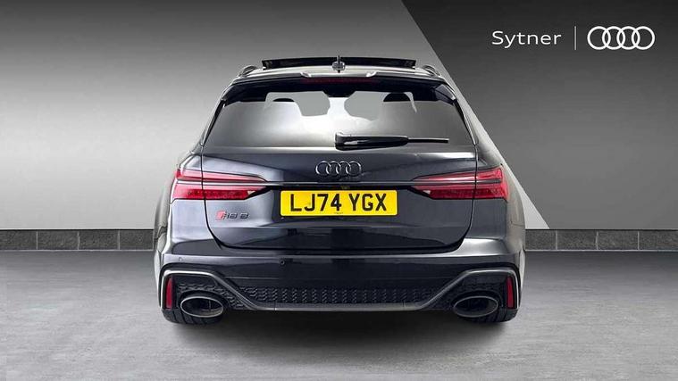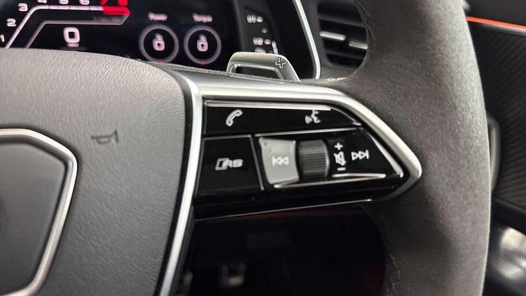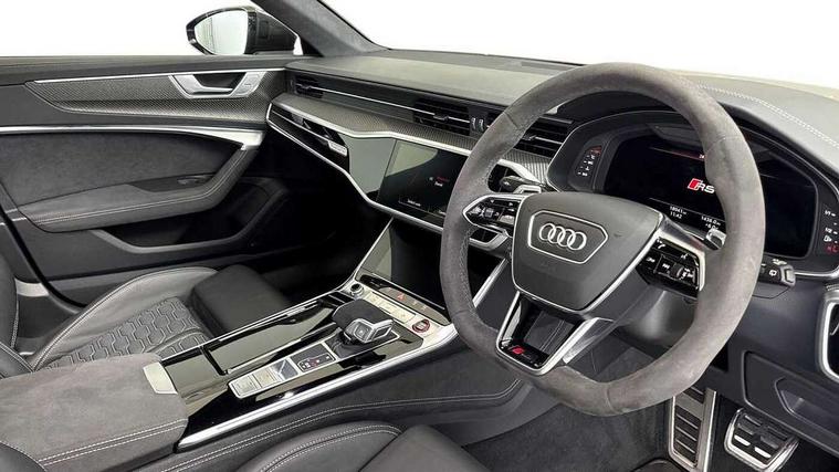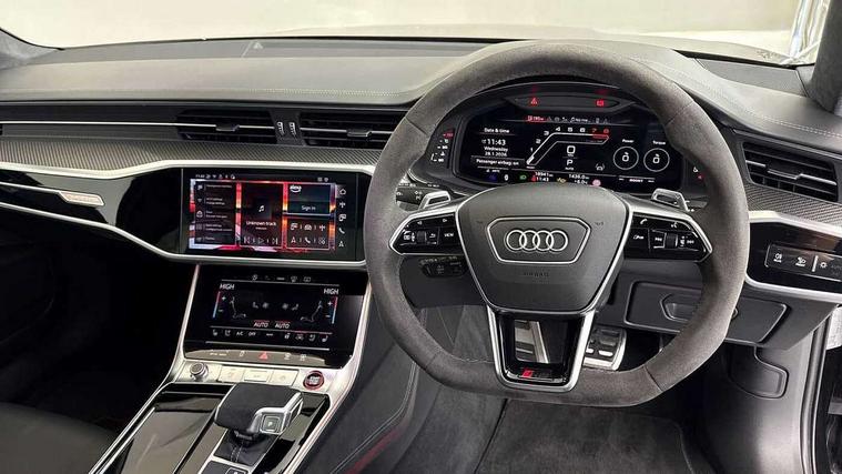 Audi connect safety and service (e-call), Audi connect with Amazon Alexa Integration, Audi drive select with 2 configurable RS modes, Audi smartphone interface with app store includes wireless Apple carplay, Android auto and Amazon alexa integration, Audi virtual cockpit plus with RS specific design and 12.3" display with additional graphic display options, Automatic start/stop system, Bluetooth interface, Dynamic all wheel steering, Head up Display, Lane departure warning system, MMI navigation with MMI touch + twin touch screens 10.1" and 8.6" with haptic and acoustic feedback, Night vision assistant, Operating buttons in black, glass look with haptic feedback including extended aluminium look, Power door closure, Power operated tailgate, Service interval indicator, Surround view camera system, Voice control system, 48V Mild hybrid technology, 73 litre fuel tank, Increased top speed to 174mph, Quattro sports differential, RS Sports suspension plus with dynamic ride control, 2 USB-C ports with charging functionality in the rear, Audi music interface, Bang & Olufsen 3D Premium Sound System, DAB Digital radio, 3rd brake light, Adaptive windscreen wipers with integrated washer jets, Black window trims, Electric front/rear windows, Electrically adjustable, heated and folding door mirrors with integrated LED indicators and kerb view function for passenger side, Frameless auto dimming interior rear view mirror, HD Matrix LED headlights with Audi laser light with dynamic light design and dynamic turn signal, Headlight washers, Heat insulating darkened glass in side and rear windows, LED daytime running lights, LED rear combination lamps with dynamic light design and dynamic turn signal, Panoramic glass sunroof, Privacy glass with rear/side windows and acoustic glazing side windows, Radiator grille in honeycomb structure, large front air inlets and rear diffuser in gloss black, Rain and light sensors, Rear side wing doors, Rear wiper, RS front bumper with air inlets on both side, RS rear spoiler in body colour, RS sports exhaust system with high gloss black oval tailpipe trims, Without tow bar preparation, 3 seat bench in 2nd row, 4 way electric lumbar support for driver and front passenger, 4 zone deluxe automatic climate control, Audi phone box light, Electric steering wheel adjustment, Electrically adjustable front seats with driver memory, Entry LED with RS Performance projection (Audi Beam) in front and rear, Front and rear headrests, Front centre armrest, Front seat ventilation, Heated front and rear seats, Illuminated front and rear door sill trims with aluminium inlays and RS6 logo, ISOFIX and Top Tether child seat mounting for the outer rear seats, ISOFIX child seat mounting and Top Tether with front passenger airbag deactivation, RS sports seat plus, Single passenger seat, Stainless steel pedals and foot rest, Air quality pack - RS6, Ambient lighting pack plus - RS6, City assist pack - RS6 Performance/carbon/vorsprung, Park assist pack with park assist plus - RS6, Storage pack - RS6, Tour pack - RS6 Performance/carbon/vorsprung, 3 point rear seatbelts, Direct tyre pressure monitoring system, EBD - Electronic brakeforce distribution, Electromechanical parking brake, Electronic Stability Control (ESC) including ABS, ASR and EDL, Extended pedestrian protection measures, Manual child lock in rear doors, Side airbags, front and rear including head airbag system and illuminated belt buckles, Warning triangle and first aid kit, Anti theft alarm with tow away protection, Immobiliser, Keyless Go, Performance tyres, Tyre repair kit,