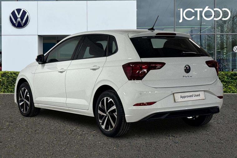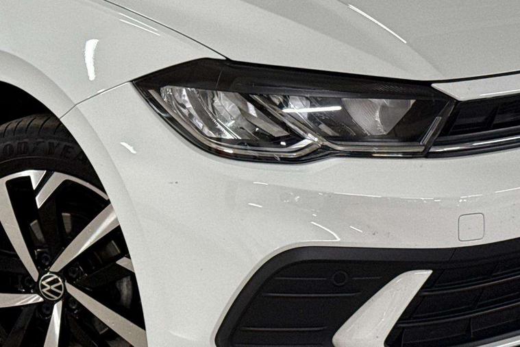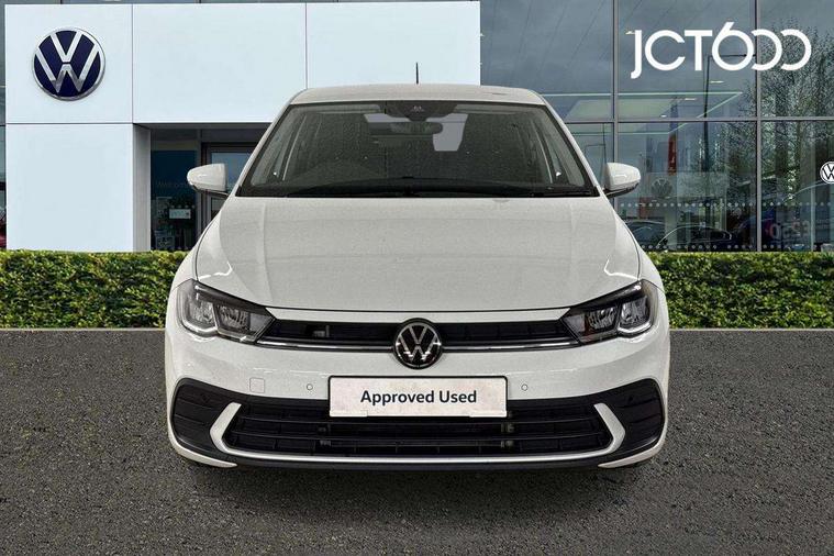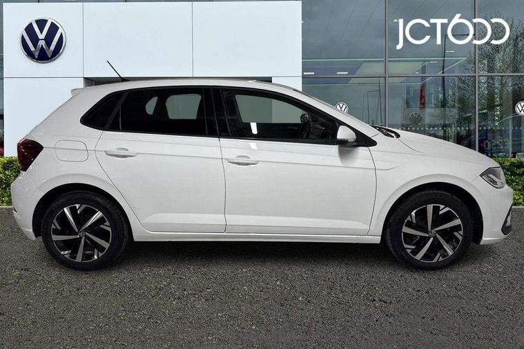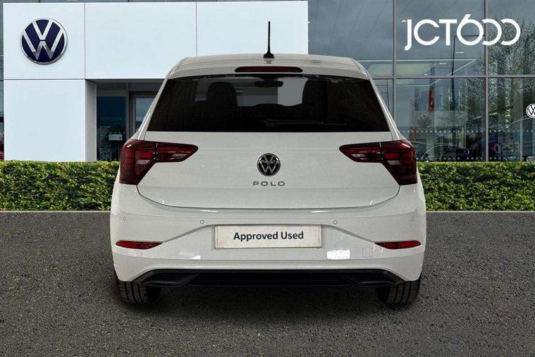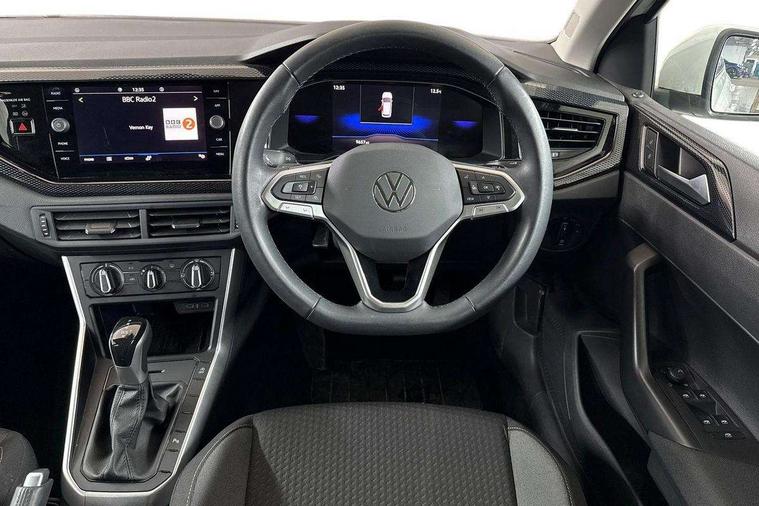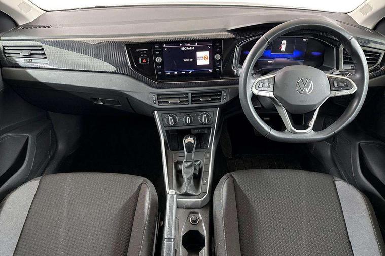 Advanced driver attention and drowsiness monitor, Bluetooth mobile phone interface, Dynamic road sign display, Emergency call service, Multifunction front facing camera for distance control, Park distance control, Power assisted speed sensitive steering, Predictive adaptive cruise control without follow-to-stop and speed limiter, Preparation for navigation system with media and internet package, Preparation for We connect and We connect plus, Rear view camera, Speedo and rev counter, electronic odometer, trip, service interval display and exterior temperature gauge, Standard rear axle, Travel Assist - Lane keeping system and traffic jam assist, Travel assist including emergency assist, Trip computer, Warning signal and warning light for front and rear seatbelts not fastened, Washer fluid level indicator, Wireless app connect, Front wheel drive, Rear shock absorpion, Start-stop system with battery regeneration (recuperation - energy recovery during braking), DAB Digital radio, Diversity antenna for FM reception, Front and rear 6 speakers, Automatic dimming interior rear view mirror, Automatic headlight control with LED separate daytime running lights with coming/leaving home function, Body colour bumpers with chrome inserts, Body colour door handles, Body colour door mirrors, Electric front windows, Engine badge deletion, Headlight range adjustment, Heat insulating and laminated safety glass windshield, LED Headlights, LED rear combination lamps, Power folding adjustable/heated exterior mirrors and front passenger exterior mirror lowering function, Rain sensor, Rear electric windows, Rear fog light, Rear side wing doors, Rear tinted glass from B-pillar backwards approx 65% tinted, Rear windscreen washer and wiper with interval delay, Third brake light, 12V power socket in centre console, 2 front and 2 rear reading lights with switch off delay and dimmer, 2 USB-C ports in the front, 2 USB-C charging sockets on the center console in the rear, 3 rear head restraints, 60/40 split folding rear seat and rear seat bench not split, Ceramique roof lining, Chrome plated radiator grille inserts, air vent surrounds and light switch surrounds, Door and side trim panel, Driver and front passenger seat height adjustment, Driver/passenger sunvisors with illuminated vanity mirrors, Front centre armrest, Front seat backrest storage pockets, Front standard seats, Handbrake lever handle in leather, Hartley/Thomas cloth upholstery, Headliner in recycled material, Isofix child seat preparation easy-fit (for two outer rear seats, and front passenger seat) compatible with I-size, Leather trimmed gear knob, Luggage compartment cover, Luggage compartment lighting, Removable luggage compartment floor, Single front passenger seat, Standard climatic zones, Standard pedal cluster, Three spoke leather wrapped multifunction steering wheel with shifting paddles, Light and vision pack - Polo, 3 point height adj front seatbelts + pretensioners, 3 point seat belt for centre rear seat, 3 point seatbelts, outer rear with ECE lable, ABS, Driver and front passenger airbag with front passenger airbag deactivation, Drivers and front passengers safety optimised head restraints, ESC (Electronic stability control) + EDL (Electronic Differntial lock) and ASR (Traction control), Extended and predictive pedestrian/ cyclist protection, Front assist with autonomous emergency braking (for Adaptive Cruise Control ACC up to 130 mph), Front curtain and side airbags with center airbag, Front disc brakes, Hill hold control, Manual child lock in rear doors, Rear drum brakes, Single tone horn, Tyre pressure loss indicator, Alarm with interior protection, Anti-theft alarm system with interior monitoring, backup horn, and towing protection, Anti-theft wheel bolts, Electronic engine immobiliser, Lava stone black gloss/matt decorative inserts in dash and front door panels, 16" Torsby alloy wheels, Low rolling resistance tyres,