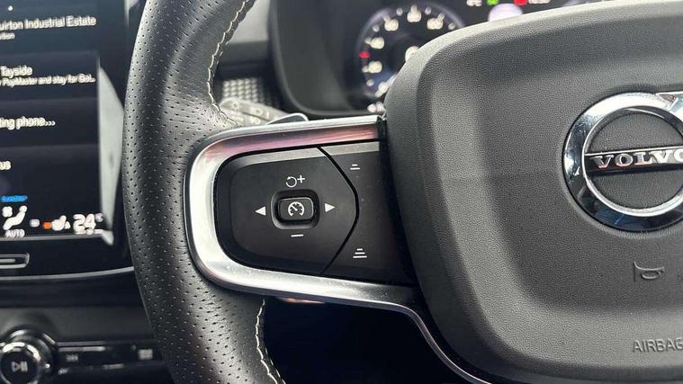 12.3" Active TFT crystal driver's instrument display, 9" centre console portrait touch screen, Adjustable steering wheel force, Bluetooth hands free telephone kit, Drive mode selector, E-call, Lane keep assist with driver alert control, Oncoming Lane Mitigation, Sensus navigation with European mapping and traffic information, Speed limiter, Speed sensitive steering, Voice control system, Volvo on call, DAB Digital radio, Steering wheel mounted remote controls, Active bending headlights, Adaptive brake lights with high level LED brake lights, Auto dimming interior mirror, Automatic headlamp levelling, Black stone door mirrors, Black stone roof, Colour coordinated auto folding and heated power door mirrors, Dark tinted glass for rear windows + rear screen + side luggage area window, Dual integrated exhaust pipes with high gloss black surround, Electrically adjustable and heated door mirrors, Embossed rear side roof pillar, Front and rear electric windows, Front tread plates, Headlamp cleaning system, Heated front windscreen, Heated washer nozzles, High gloss black front and rear skid plate, High gloss black lower front bumper, High gloss black mesh front grille with high gloss black surround, High gloss black roof rails, High gloss black window trim, Home safe and approach lighting, LED front fog lights with static cornering light function, LED Headlights + Active high beam incorporating daytime running lights, Rain sensor windscreen wipers, Rear wiper, Roof antenna, Roof spoiler, Visible VIN plate, 12V socket in front tunnel console and luggage compartment, 2 zone electronic climate control with Clean zone air quality system + pollen filter + cooled glovebox, 3 spoke leather steering wheel with chrome trim, 60/40 split folding rear seat, A-pillar parking ticket holder, Ambient front door and instrumental panel lighting, Black headlining, Bright metal luggage threshold, Centre console cupholders and storage, Driver seat height/tilt/lumbar adjust, Driver's side lower dashboard credit card storage compartment, Extended front seat cushions, Front door pocket and front cupholder illumination, Front footwell illumination, Front tunnel net pocket and integrated waste bin, Glovebox bag hook, Heated front seats, Height/reach adjustable steering column, High gloss centre tunnel deco, Illuminated luggage compartment, Illuminated tailgate, Illuminated vanity mirrors + ticket holder, Isofix attachments on outer rear seats, Leather coloured key integrated remote, Leather/nubuck upholstery, Load protection net, Lockable/illuminated glovebox, Multicolour theatre lights, Passenger seat adjustable for lumbar support, Perforated leather gearknob, Perforated leather steering wheel with gearshift paddles, Power driver seat with memory + exterior mirrors memory, Rear armrest / integral cup holders / storage tray, Rear reading and courtesy lights, Sports pedals, Underfloor stowage compartment, 3x3 point rear seatbelts, City safety, Drivers knee airbag, DSTC-Dynamic Stability and Traction Control, Dual stage driver/passenger airbags, Electronic parking brake with auto hold, Fasten seatbelt reminder, First aid kit, Hill descent control, Hill start assist, Inflatable curtain, Passenger airbag cut-off device, Road sign information display, Run off Road Mitigation, Run off Road Protection, Seatbelt reminder and pretensioners, SIPS (Side Impact Protection System), SIPS airbags, Slippery road and hazard light alert, Tyre pressure monitoring system, Vehicle deceleration control with Anti-lock Brake System, Electronic Brake Distribution and Emergency Brake Assist, Warning triangle, WHIPS whiplash protection system - front, Anti-theft alarm including immobiliser/volume sensor + level sensor, Fuel flap with deadlocking system, Key integrated remote control central locking, Locking wheel nuts, Private locking for tailgate, Cutting edge aluminium inlay,