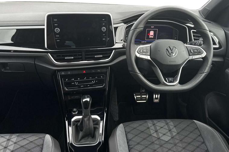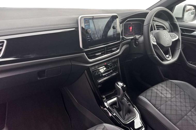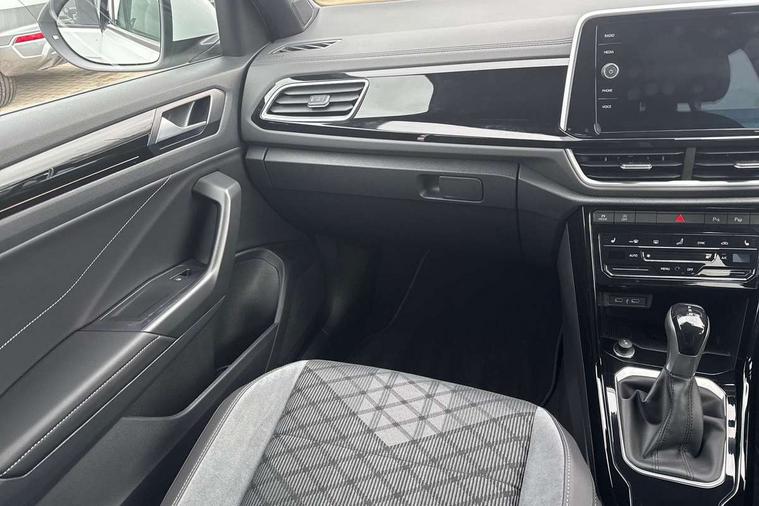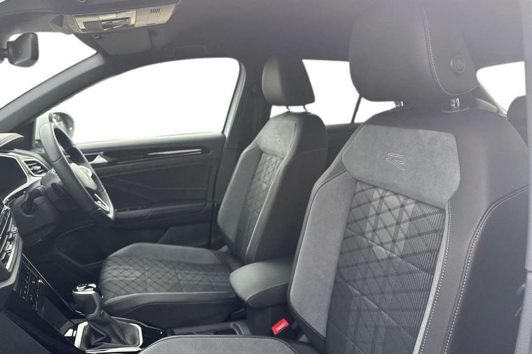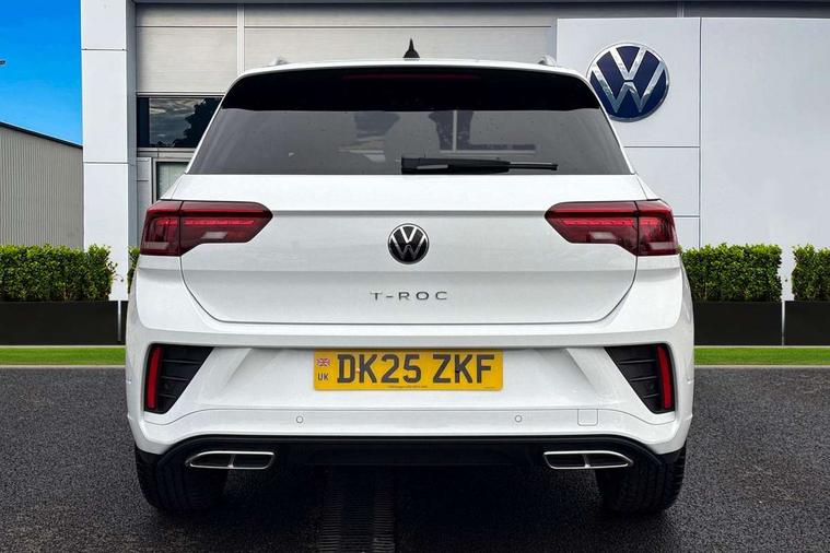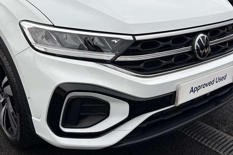 10.25" Digital cockpit pro, Advanced driver attention and drowsiness monitor, Dynamic road sign display, Emergency call service, Lane keeping system Lane Assist, Mobile phone interface, Modified key software - reduce switch off time for key status change to Long no motion, Online services, Park assist including front and rear parking sensors, Service interval indicator, Tailgate/trunk lid release from outside, Think blue trainer driver tips and journey analysis, Warning sound and light for front seatbelts unfastened, Wireless app connect, Battery regeneration during braking, Start/stop function with battery regeneration, DAB Digital radio, Diversity antenna for FM reception, Front and rear 6 speakers, Music playback - MP3, WMA and AAC files, Premium USB cable in choice of either Apple or Android smartphone compatibility, SD card slot, Simultaneous pairing of 2 compatible mobile devices, Title and cover art display, We Connect and We Connect Plus functionality, Auto dimming interior rear view mirror, Automatic hazard lights activation under emergency braking, Automatic headlight control with LED separate daytime running lights with coming/leaving home function, Body coloured exterior mirror housings and door handles, Electrically adjustable and heated door mirrors, Extended roof spoiler, Exterior mirrors aspherical on driver side, convex on front passenger side, External USB type C socket and charging sockets, Front windscreen wiper with intermittent wipe and 4 position delay, Heated rear window, LED 3rd brake light, LED rear combination lamps, LED rear number plate lights, Power windows with comfort operation and circuit breaker, Privacy glass for rear side windows and rear window, R-Line design body coloured bumpers, Rain sensor, Rear exhaust tailpipe, Rear fog light on one side and reversing lights on both sides, Rear side wing doors, Rear wash/wipe with intermittent wipe setting, Remote electrically foldable door mirrors, puddle lights and reverse activated passenger's door mirror, 12V power socket in centre console, 3 rear head restraints, 3 seat bench in 2nd row, 4 load lashing points in luggage compartment, Air care climatronic air conditoning system with active combination filter and 2-zone temperature control, Black roof lining, Chrome plated decorative trims, Chrome plated radiator grille inserts, air vent surrounds and light switch surrounds, Door and side trim panel with leatherette insert, Front + rear carpet mats, Front centre armrest, Front cupholders x 2, Front footwell illumination, Front reading light, Front scuff plates with R Line logo, Front seat back storage pockets, Glove compartment door with light, Instrument lighting, white adjustable panel illumination, Interior ambient lighting and surround lighting, Interior light delay, Isofix child seat preparation, Leather gearshift handle, Load-through provision with cup holder when folded down ('Unsplit rear seat bench, split folding backrest, with centre armrest), Luggage compartment lighting, Single front passenger seat, Stainless steel pedals, Storage compartment in left and right luggage area, Storage compartment in rear doors, Storage compartments in driver and front passenger doors, Sunvisors with illuminated vanity mirrors, Variable boot floor, height adjustable and removable, Driver assistance pack without proactive passenger protection - T-Roc, 3 point height adj front seatbelts + pretensioners, 3 point seatbelts in outer rear with ECE label, ABS, Child locks on rear doors, City emergency braking and pedestrian monitoring, Driver and front passenger airbag with front passenger airbag deactivation, Driver and front passenger safety-optimised head restraints, Drivers seatbelt reminder, Electronic parking brake, Electronic Stability Control (ESC) inc EDL (Electronic Differential Lock) and ASR (Traction Control), Front and rear passengers curtain airbag system including front side airbags, Hill start assist, Predictive pedestrian protection, Rear disc brakes, Two tone horn, Tyre pressure loss indicator, Volkswagen roadside assistance, Piano black decorative inserts in dashboard and front door trim panels, Trims for alloy wheels,