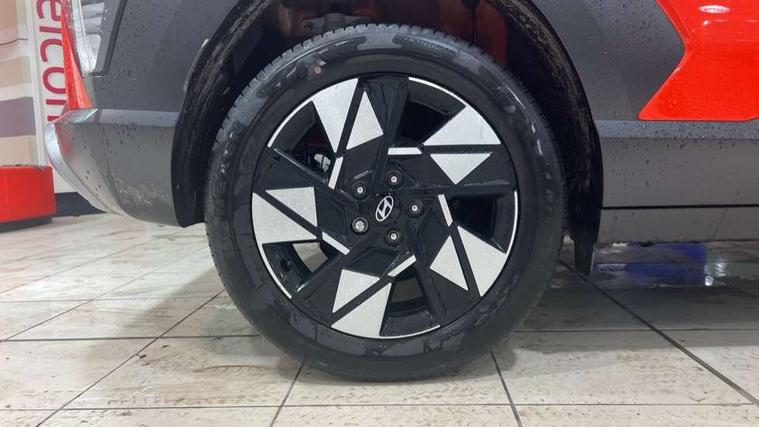 12.25" digital instrument cluster, 12.3" touchscreen centre console display satellite navigation with bluelink, live services and mapcare, Blind spot collision avoidance assist, Blind spot view monitor, Bluetooth connectivity with voice recognition, Driver status monitor (DSM), Driver supervision instrument cluster with 12.3" LCD display, eCall emergency call system, Feature on demand - Enabled, Forward collision avoidance assist (FCA 1.5) - Car, pededstrian, cycle and junction turning, Front parking sensor, HDA - Highway Drive Assist Level 1.5, Height adjustable power tailgate, Intelligent speed limit assist, Lane follow assist, Lane keep assist, Leading vehicle departure alert (LVDA), Parking Collision Avoidance Assist-Reverse (PCA-R), Parking distance warning - side, Parking system with rear camera and guidance system, PAS, Rear cross traffic collision avoidance (RCCA), Rear parking sensor, Rear view camera with dynamic guidelines, Roadside assistance, Safe exit warning (SEW), Smart cruise control with stop and go functionality, Surround view monitor, Wireless phone charging pad, Wireless Smartphone Integration includes Apple CarPlay and Android auto, 2 front USB C and 2 rear USB C charging points, Bose Premium Audio system with 7 premium speakers + subwoofer, DAB Digital radio, Steering wheel audio, phone and cruise controls, Auto dimming rear view mirror, Automatic headlights with dusk sensor, Automatic windscreen wipers with rain sensor, Black painted wheel arch inserts, Body colour exterior door handles, Body coloured door mirrors, Door mirror LED indicator lights, Electric front windows with anti-trap mechanism and one touch control, Electric rear windows, Electric sunroof, Electrically adjustable and heated door mirrors, Horizon centre LED DRL, LED projector headlights, LED taillights, LED upper and lower rear lights, Power folding door mirrors, Privacy glass - Rear windows and tailgate, Rain sensor, Rear roof spoiler with integrated LED brake light, Rear side wing doors, Rear skid plate - silver, Rear wiper, Roof rails, Solar glass with front door glass and windscreen, Tinted glass in front and rear doors, Windscreen auto defog function, 12V power outlet in front console, 2 zone climate control, 3 seat bench in 2nd row, 40/20/40 split folding rear seat, Adjustable head restraints, Ambient lighting, Driver and passenger front seat pockets, Driver's seat electric adjustments, Driver's seat lumbar support, Driver/passenger sunvisors and illuminated vanity mirrors, Floor mats, Front passenger's seat electric adjustments, Heated front seats, Heated rear seats, Heated steering wheel, Height/reach adjustable steering column, Leather steering wheel, Leather upholstery, LED centre interior light, LED front interior light, Luggage compartment LED lighting, Luggage net, Luggage shelf, Metal paint effect interior door handles, Rear centre armrest with cupholders, Shift by wire SBW, Single front passenger seat, Ventilated front seats, Vertical adjustment rear head restraints, Trailer wiring package - Kona, Airbag - front, front side, curtain and centre front airbag, Anti-lock brake system (ABS), Childproof rear door locks, Downhill brake control, Electric parking brake, Electronic stability control, Fixed 3 point for second row centre passenger seatbelt, Hill start assist control (HAC), Rear seat alert, Tyre pressure monitoring system, Alarm/immobiliser, Rear occupant alert, Remote central locking, Smart key with keyless entry and start/stop button, Five year annual vehicle health checks, 18" Alloy wheels, Temporary mobility kit (TMK),