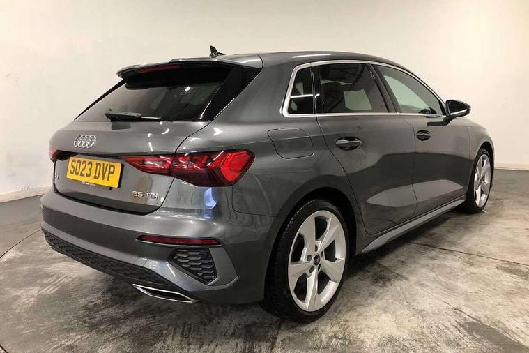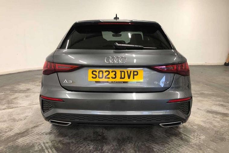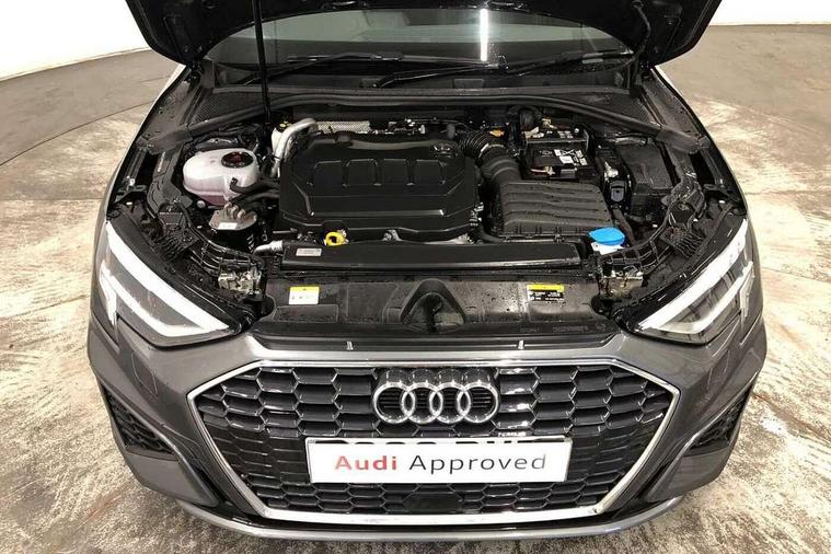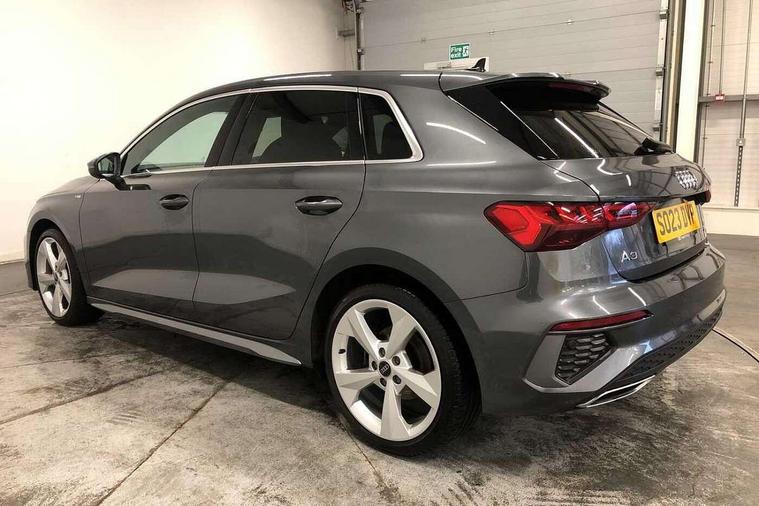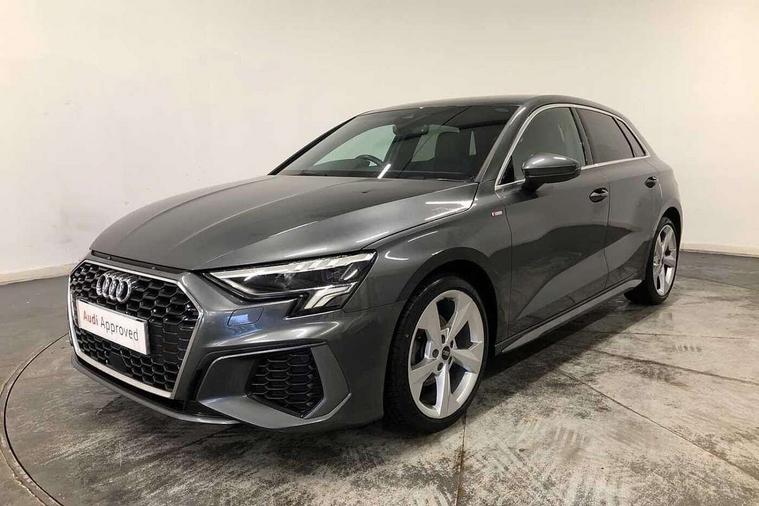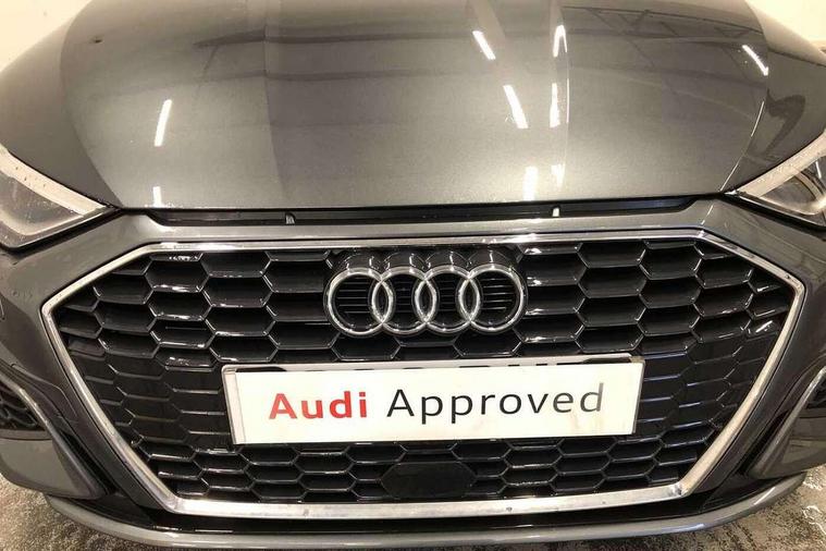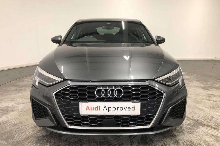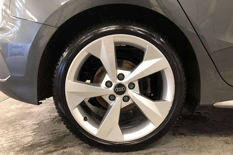 Audi drive select (Auto, Comfort, Dynamic, Efficiency and Individual), Audi smartphone interface, Audi Virtual Cockpit - 10.25" digital and colour instrument cluster, Automatic start/stop system with recuperation, Bluetooth interface, Camera based traffic sign recognition, Collision avoidance assistant, e-Call (emergency call), Electromechanical power speed sensitive steering, Lane departure warning system, MMI Navigation Plus with high resolution 10.1" colour touch screen display, Service indicator, Trip computer, Voice control system with natural language interaction, Sports suspension, 2xUSB-C connection with data and charging functions, 6 passive loudspeakers, DAB Digital radio, 3rd brake light, Acoustic glass windscreen, Aluminium window trim, Auto dimming frameless rear view mirror, Body colour exterior mirrors, Electrically adjustable/heated/folding/auto dimming door mirrors with integrated LED indications + kerb view function for passenger side, Front electric windows, Illuminated aluminium inserts front door sills with S logo, LED daytime running lights, LED headlights with LED rear lights and dynamic rear indicators, Light and rain sensors, Privacy glass - dark tinted rear window, rear door and side windows, Rear electric windows, Rear side air outlets in grained matt black, Rear side wing doors, Rear wiper, S line bumpers, S roof spoiler, 12V socket and storage compartment in front centre console, 3 seat bench in 2nd row, 3 spoke leather multifunction steering wheel with paddle shift, 4 way electrically adjustable lumbar support for driver and front passenger, 60/40 split folding rear seat bench, Black cloth headlining, Dual zone electronic climate control, Front and rear centre armrest in leather, Front and rear headrests, Front/rear floor mats, Height and reach adjustable steering wheel, Interior lighting - glove compartment light and right hand side, Luggage compartment floor covering, Manual boot compartment lid, Manually adjustable front seats, Seat side bolsters, Single front passenger seat, Stainless steel pedals and front footrest in black, Twin leather upholstery with front sports seats S embossed logo, Aluminium interior elements pack - A3 Sportback, LED interior lighting pack - A3 Sportback, S line styling pack - A3 Sportback, 3x3 point rear seat belts, Driver and front passenger airbag with passenger airbag deactivation, Electronic Stabilisation Control (ESC) including ABS, ASR and EDL, First aid kit with warning triangle and 2 safety vests, Front side airbags with head airbags and interaction airbag, Pre-sense front with pedestrian and cyclist detection, Seatbelt monitoring, Tyre pressure loss indicator, Anti theft alarm, Anti-theft wheel bolts, Electronically operated child lock, Immobiliser, Remote control central locking, Dark spectrum aluminium inlays, accent surfaces in the dashboard and centre console in platinum grey silk effect paint finish,