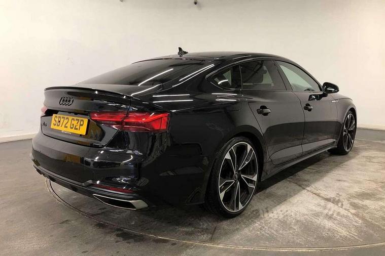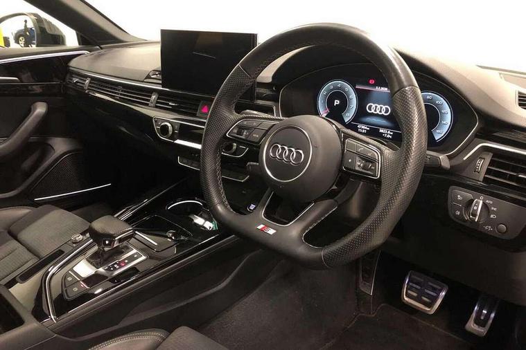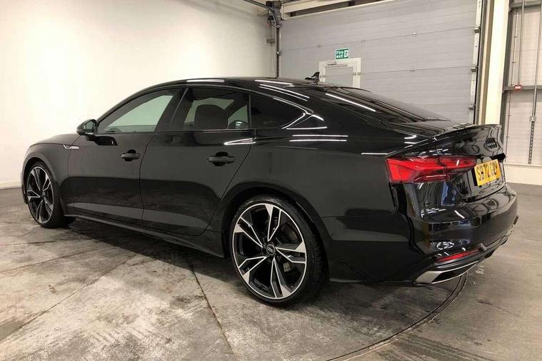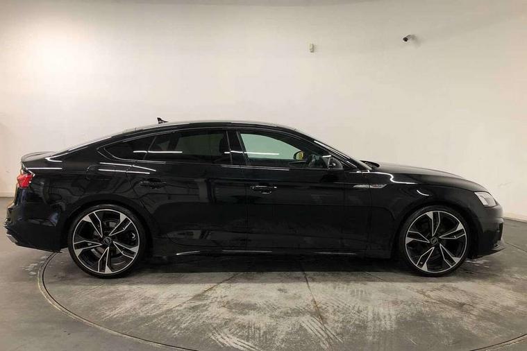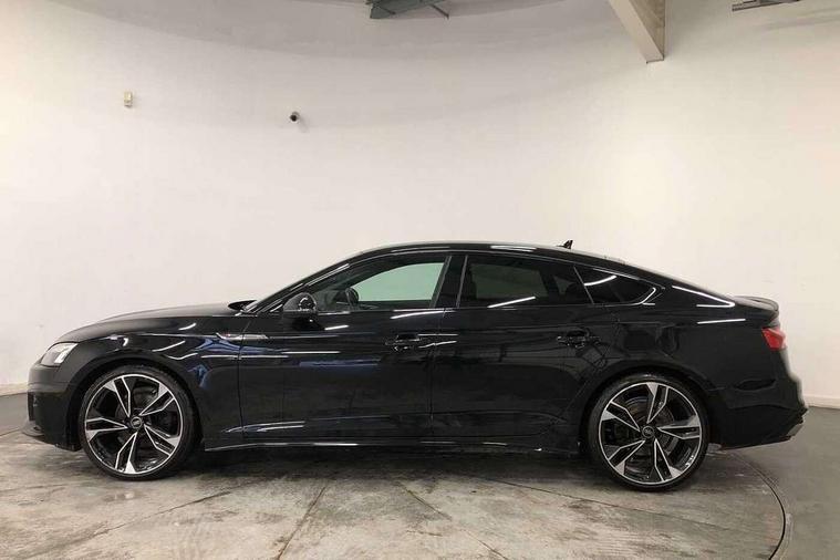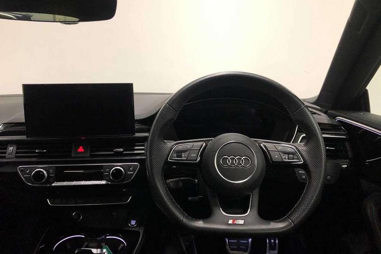 Audi connect safety and service (e-call), Audi connect with Amazon Alexa Integration, Audi drive select (Auto, Comfort, Dynamic and Individual), Audi parking system plus with front and rear sensors, Audi smartphone interface, Audi virtual cockpit - 12.3" full colour digital instrument cluster, vehicle/engine speed, Radio/media information+Driver assistance systems, Automatic start-stop system with coasting functionality and efficiency programme, Bluetooth interface, Electro-mechanical power steering, Email, calendar and text messages displayed via MMI, MMI nav+ with MMI touch - 10.1" high resolution MMI display, touch sensitive, 3D map, route/country info, dynamic route guide, personal route assist, Power operated tailgate, Rear view camera, Service interval indicator, Voice control system, Sports suspension lowered by 23mm, 8 passive loudspeakers, CD player, DAB digital radio reception, Two additional USB ports for rear passenger in rear centre console, Two SDXC card slots, Audi Beam uses LEDs to project the Audi logo, Audi matrix LED headlights with LED rear lights + dynamic front and rear indicators, Auto dimming door mirrors, Auto dimming rear view mirror, Black door mirror housings, Body colour door handles, Body colour front spoiler lip, Body colour side sill trim, Electric adjustable heated door mirrors, Electric folding door mirrors, Electric front windows, Exhaust tailpipe trims in grey, Front and rear bumpers with side skirts, Front fog lights, Honeycomb structure radiator grille in grained matt black, Kerb-view function for passenger side, LED daytime running lights, LED side indicator lights integrated into door mirrors, LED third brake light, Privacy glass, Rain and light sensors, Rear diffuser in matt titanium black with trim strip in matt aluminium silver, Rear side wing doors, S model rear spoiler in black, Side air inlets in grained matt black with matt aluminium silver inlay, Variable front intermittent wipers, Windscreen with acoustic glazing, 3 seat bench in 2nd row, 4 way electric lumbar support for driver and front passenger, 40/20/40 split folding 3 seater rear bench seat, Adjustable steering column, Black cloth headlining, Black perforated leather gearknob, Contrast stitching on seats, steering wheel and gear lever gaiter, Deluxe 3 zone electronic climate control, Front centre armrest, Front head restraints, Front/rear floor mats, Heated front seats, Illuminated door sill trim with S logo, ISOFIX child seat mounting and top tether, Luggage compartment mat, Manual seat adjustment, Rear centre armrest, Rear headrests, Single front passenger seat, Stainless steel pedals, Sunvisors with vanity mirrors, Black styling pack - A5 Coupe/Sportback, LED interior light pack - A5/RS5, 3x3 point rear seatbelts, 6 airbags - Driver, front passenger, curtain and side airbags, Electromechanical parking brake, Electronic Stabilisation Control (ESC) including ABS, ASR and EDL, Front passenger airbag deactivation, Height adjustable front seatbelts, Hill hold assist, Manual child lock in rear doors, Multi collision brake assist, Pop-up bonnet for pedestrian protection, Pre sense city, Seatbelt monitoring, Tyre pressure warning, Variable restraint system, Warning triangle and first aid kit, Anti theft alarm system, Anti theft wheel bolts, Immobiliser, Keyless Go, Remote central locking, Piano black finish inlay, 20" 5 twin spoke polygon design alloy wheels in gloss anthracite black and gloss turned finish, Tool kit, Tyre repair kit,