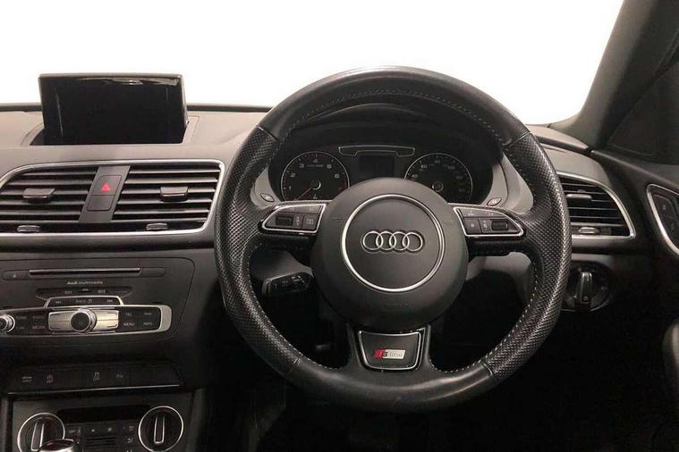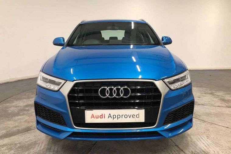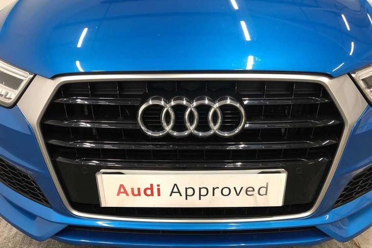 6.5" colour display screen, Audi drive select, Cruise control, Electro-mechanical PAS, Low washer fluid indicator, MMI - Multi Media Interface control system, On board computer, Remote electric boot opening/closing, Service interval indicator, Voice control system, Dynamic suspension, Audi music interface, DAB digital radio module, Acoustic windscreen, Aluminium window surround, Auto dimming rear view mirror, Body colour door mirrors, Body coloured bumpers, Chrome exhaust tailpipe, Coming home function, Door mirror integrated indicators, Front and rear electric windows, Front fog lights, Front lip spoiler, Heated windscreen washer jets, LED daytime running lights, LED headlights with headlight washers, LED rear lights, Light and rain sensor for auto activation of lights and windscreen wipers, Loading sill protector in stainless steel, Rear diffuser with platinum insert, Rear wiper, S Line body styling, Sunband for windscreen, 12V socket in rear centre console, 3 spoke multi-function Q design steering wheel with paddle shift, Aluminium door sill trims, Black cloth headlining, Door sill trim strips, Dual zone climate control, Electric front lumbar adjustment, Front and rear headrests, Front and rear velour floor mats, Front centre armrest with storage compartment and angle adjustment, Front sports seats, Height/reach adjust steering wheel, ISOFIX on front passenger and rear outer seats, Jack and tool kit, Perforated leather gearknob, Retractable luggage cover, Split fold rear seat, Storage compartment and 12V socket, Under floor storage in luggage area, 3x3 point rear seatbelts, ABS+Electronic Brake force Distribution, Curtain airbags, Driver and passenger airbags, Driver and passenger side airbags, EDL + ASR, Electrically operated child locks on rear doors, Electromechanical parking brake, ESP, First aid kit, Front passenger airbag deactivation, Head airbags, Seatbelt warning light, Tyre pressure monitoring system, Warning triangle, Locking wheel bolts, Remote central locking, Thatcham category 1 alarm + immobiliser, Matt brushed aluminium fascia and door trim inlays,