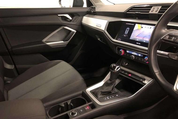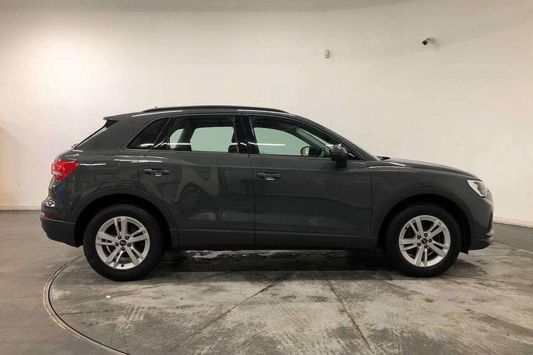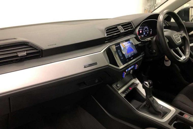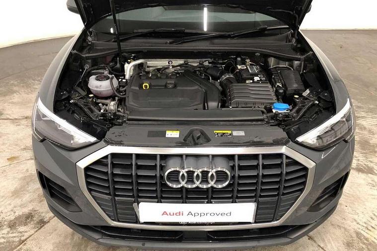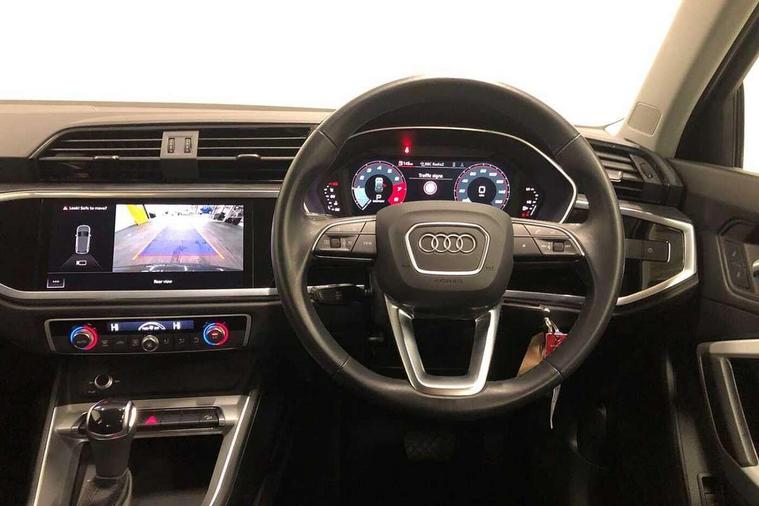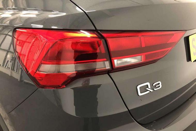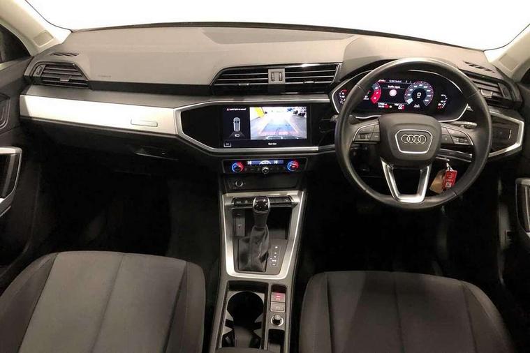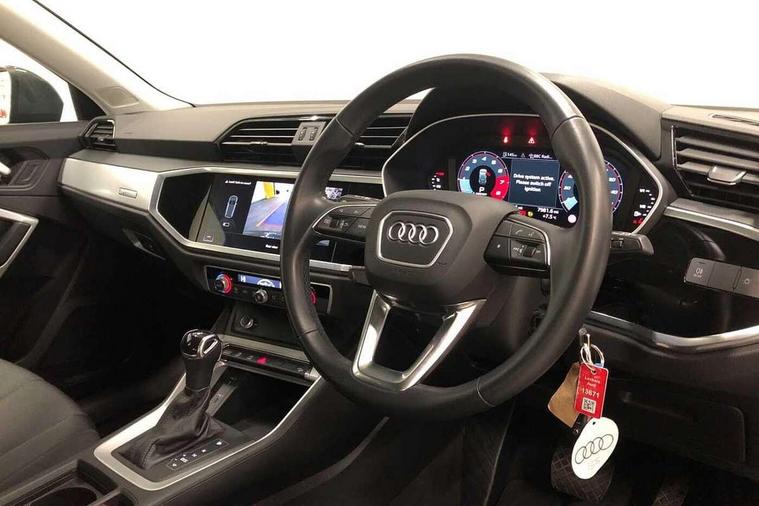 Amazon alexa Integration, Audi drive select, Audi lane departure warning, Audi Virtual Cockpit - 10.25" display, Bluetooth interface, Camera based traffic sign recognition, Legal emergency call, MMI Navigation Plus with high resolution 10.1 inch touchscreen colour display, Power operated tailgate, Progressive steering, Service interval indicator, Smartphone interface includes wireless Apple carplay/Android Auto, Start stop system with recuperation, Voice control system with natural language interaction, Standard suspension, 2 USB-C ports with charge and data functions, 6 passive loudspeakers, DAB digital radio module, Acoustic windscreen, Auto dimming frameless rear view mirror, Black roof rails, Body colour door mirrors, Diffuser in grained anthracite, Electrically folding, adjustable and heated door mirrors with integrated LED side indicators and kerb view function for passenger side, Exterior bumper with wheel arch trims and side sill trims in grained black matt, Front and rear electric windows, Grained radiator protective grille, Halogen rear lights, LED headlights with LED daytime running lights, Rain and light sensors, Rear side wing doors, Rear wiper, Third brake light, Variable front intermittent wipers, 12V socket in rear centre console, 3 seat bench in 2nd row, 3 spoke multi-function leather steering wheel, 40:20:40 folding with manual adjustment for 60:40 forwards/backwards position and backrest angle, Dual zone electronic climate control, Front and rear floor mats, Front and rear headrests, Front and rear roof module including reading lights, Front centre armrest, Glove compartment lighting, Height and reach adjustable steering wheel, ISOFIX child seat mounting for front passenger with airbag deactivation and outer rear seat including top tether attachment point for outer rear seats, Luggage compartment light, Lunar silver cloth headlining, Manual front seats with height adjustment, Single front passenger seat, Stainless steel luggage compartment sill finisher, Non smoking pack - Q3, 3x3 point rear seatbelts, 6 airbags - Driver, front passenger, curtain and side windows, Audi pre-sense front with pedestrain and cyclist recognition, Electrically operated child locks on rear doors, Electromechanical parking brake, Electronic stabilisation control including ABS, ASR and EDL, Front seatbelt reminder, Hill descent control, Hill hold assist, Pre sense basic, Seatbelt monitoring, Tyre pressure warning, Warning triangle and first aid kit, Anti theft alarm, Anti theft wheel bolts, Immobiliser, Remote central locking, Detail dashboard around MMI touch colour display in glass look, black with surround in aluminium look, Micrometallic silver inlay, 17" 5 twin spoke design alloy wheels,
