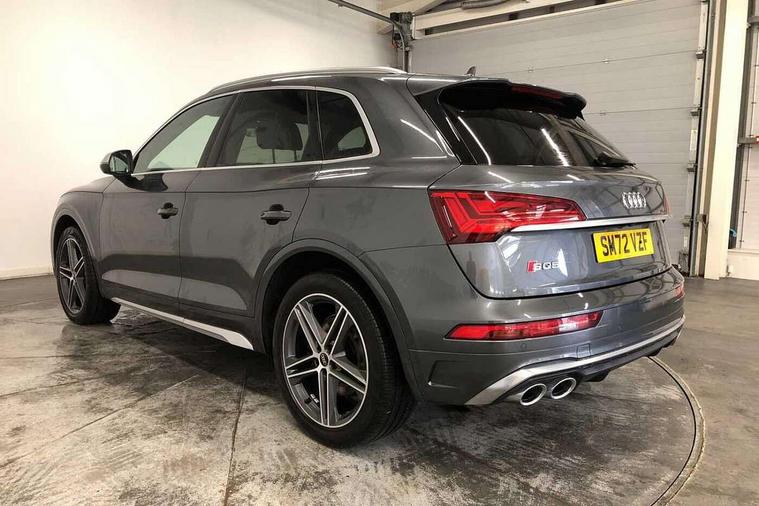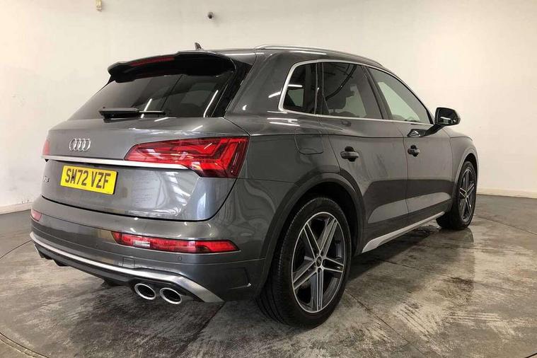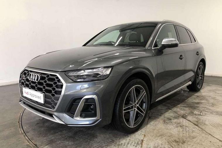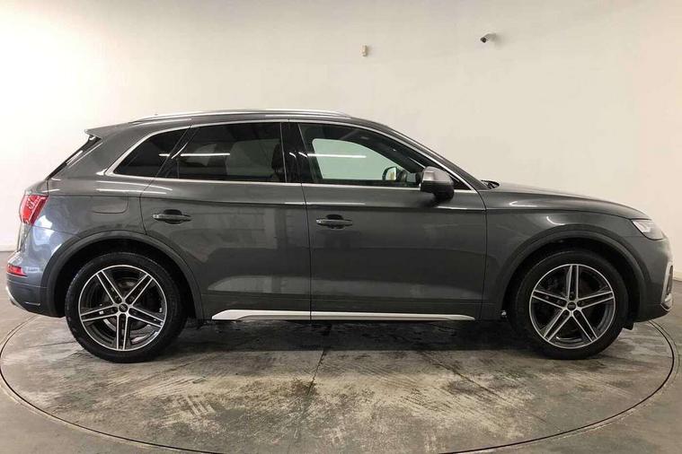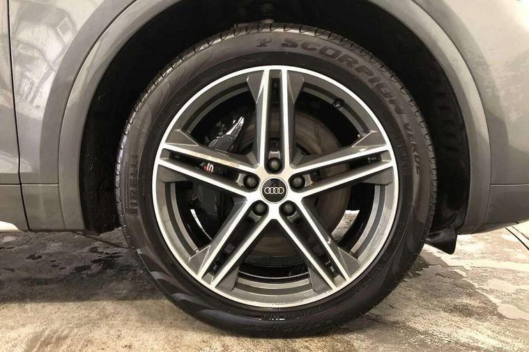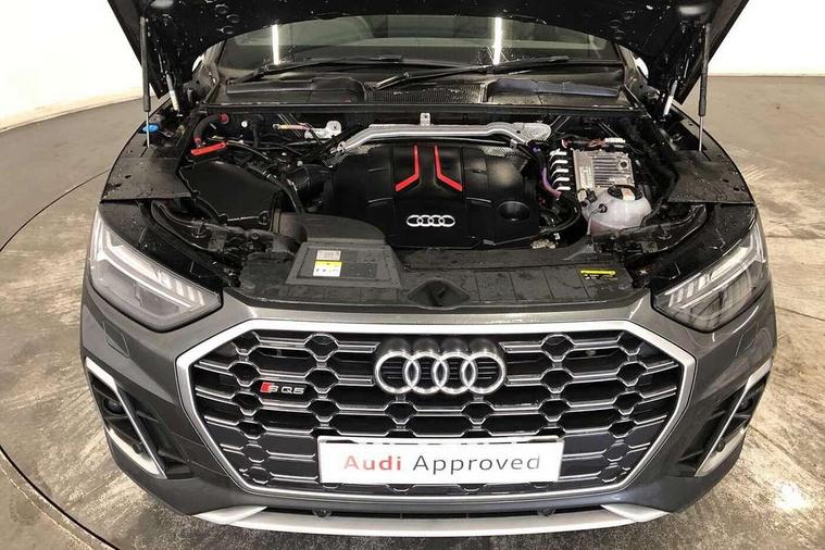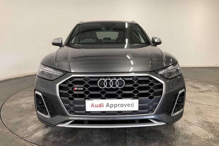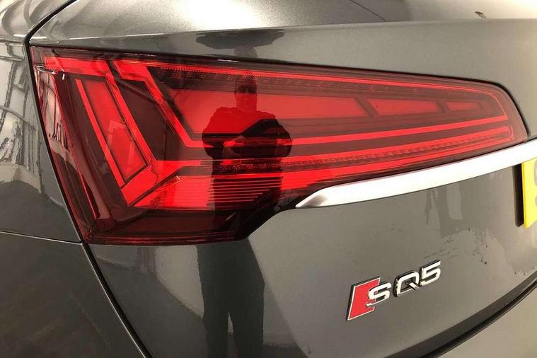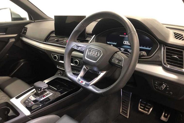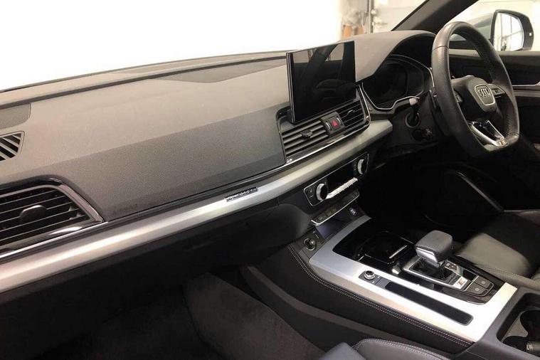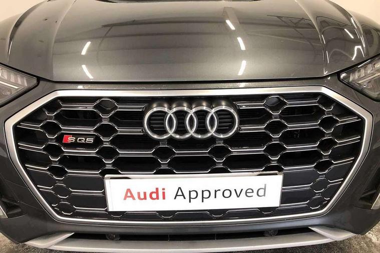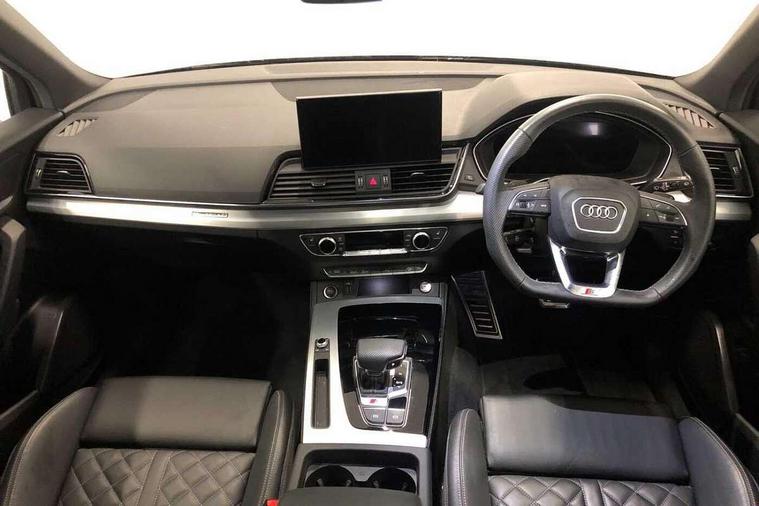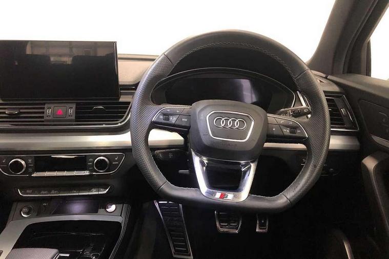 Audi connect safety and service (e-call), Audi connect with Amazon Alexa Integration, Audi drive select, Audi virtual cockpit plus with 12.3" screen and three different layout designs, Audi wireless smartphone interface, Automatic start-stop system with coasting functionality and efficiency programme, Bluetooth interface, Electro - mechanical power assisted steering, MMI navigation plus with 10.1" touch screen, Power tailgate, Reversing camera, Service interval indicator, Voice control system with Audi hotword activation "Hey Audi", 70 litre fuel tank and 24 litre AdBlue tank, Diesel particulate filter, Quattro on demand, S sports suspension, 2 x USB charging port with aux input socket, Audi sound system, DAB Digital radio, Acoustic windscreen, Aluminium roof rails, Audi beam, Audi beam with Audi rings logo, Auto dimming door mirrors, Auto dimming rear view mirror, Automatic headlight adjustment, Automatic headlights and windscreen wipers, Body colour bumpers, Body colour rear diffuser with matt aluminium silver surrounds, Body colour underbody protection, Chrome plated exhaust trims, Daytime running lights, Door sills in Selenite silver, Electric adjustable/heated/folding door mirrors, Front air inlet surrounds in titanium black, Front and rear electric windows, Front radiator grille in honeycomb design, Headlight washers, High gloss black B pillar trims and triangular rear door trim, High level LED brake light, Lower bumpers painted in contrast Manhattan grey, Rear chrome trim strip below lights, Rear privacy glass and rear side windows, Rear side wing doors, Rear wiper, Roof bars, S front and rear bumpers, S Line rear spoiler, S Line side skirts, S specific rear diffuser, 3 rear headrests, 4 way electric lumbar support for driver and front passenger, 40:20:40 split folding 3 rear bench seat in 2nd row with rear centre armrest, Black cloth headlining, Comfort front centre armrest, Contrast stitching on seats, steering wheel and gear lever gaiter, Deluxe 3 zone electronic climate control, Fine Nappa leather upholstery with diamond pattern contrast stitching + front sport seats with S embossed logo, Front/rear floor mats, Fully electrically adjustable seats, Gear lever in black leather, Heated front seats, Height adjustable front head restraints, Height/reach adjustable steering column, Illuminated door sill trims with S logo, ISOFIX child seat mounting and top tether, Luggage compartment cover, Massage function for front seats, Rear seat bench plus, Removable luggage compartment floor, Single front passenger seat, Stainless steel pedals, Sunvisors with vanity mirrors, Extended interior upholstery pack - Q5, High gloss pack - Q5, LED interior light pack - Q5, 3 point seatbelts on all seats, 6 airbags - Driver, front passenger, curtain and side airbags, Electrically operated child locks on rear doors, Electromechanical parking brake, Electronic stabilisation control including ABS, ASR and EDL, Front passenger airbag deactivation, Hill descent control, Hill hold assist, Multi collision brake assist, Pop-up bonnet for pedestrian protection, Pre sense city, Seat belt force limiter, Seatbelt monitoring, Tyre pressure warning, Warning triangle and first aid kit, Anti theft alarm, Anti-theft wheel bolts, Keyless Go access/ignition system, Remote central locking,