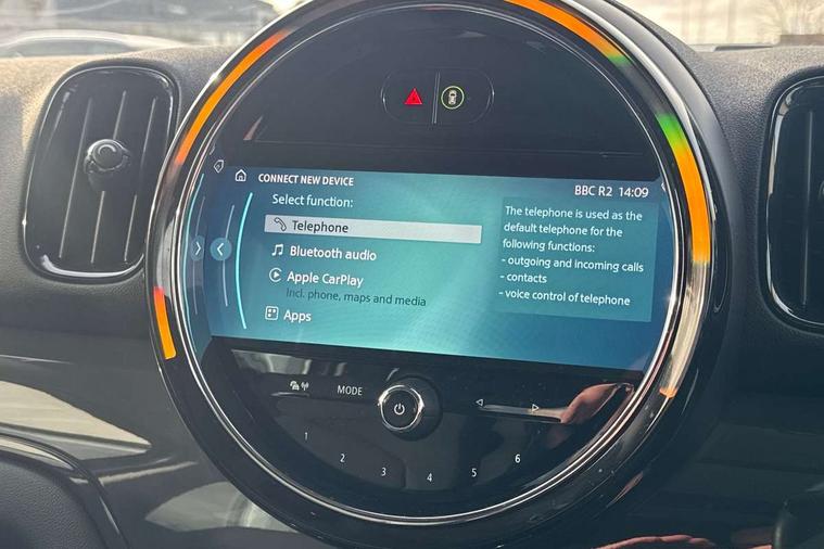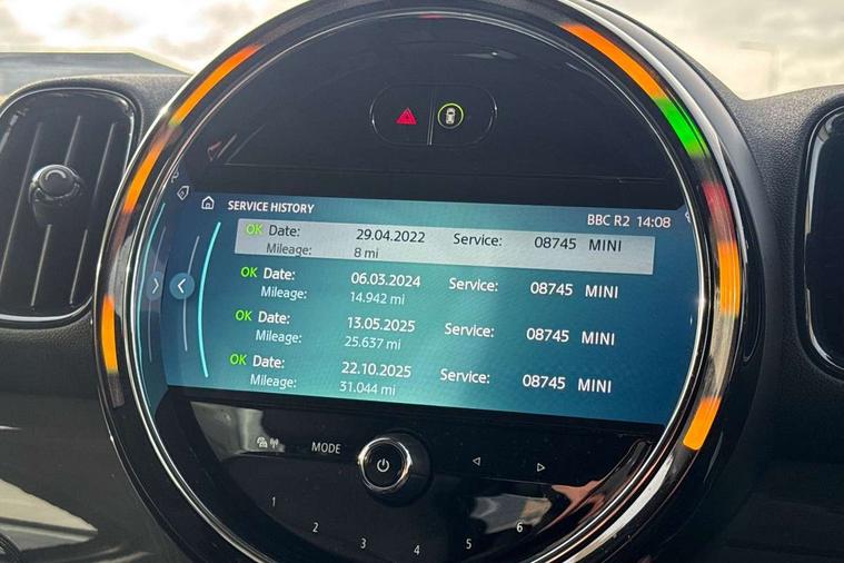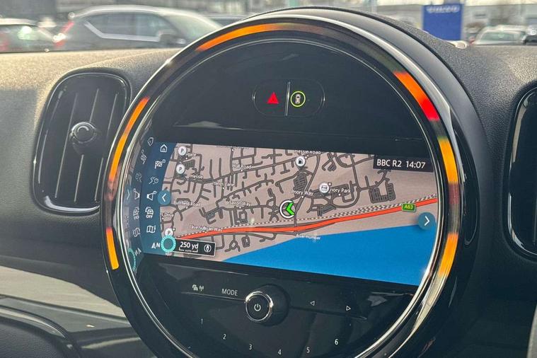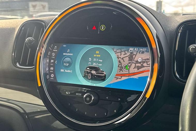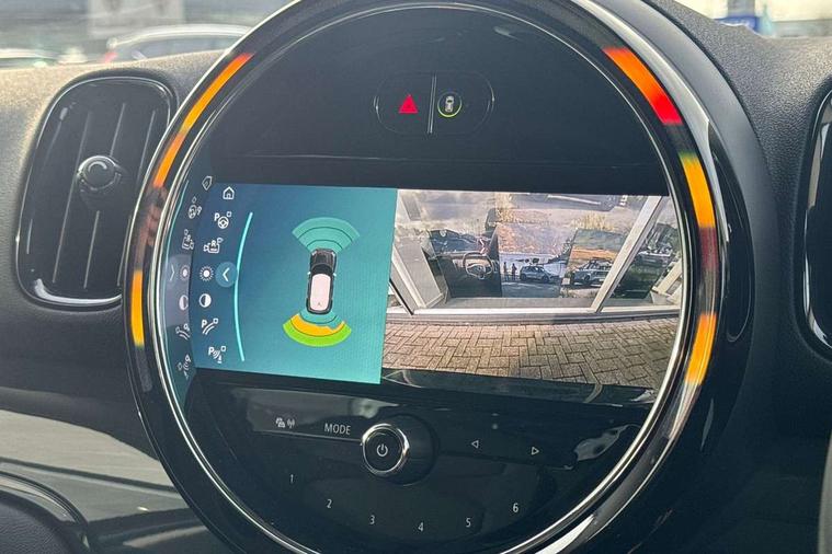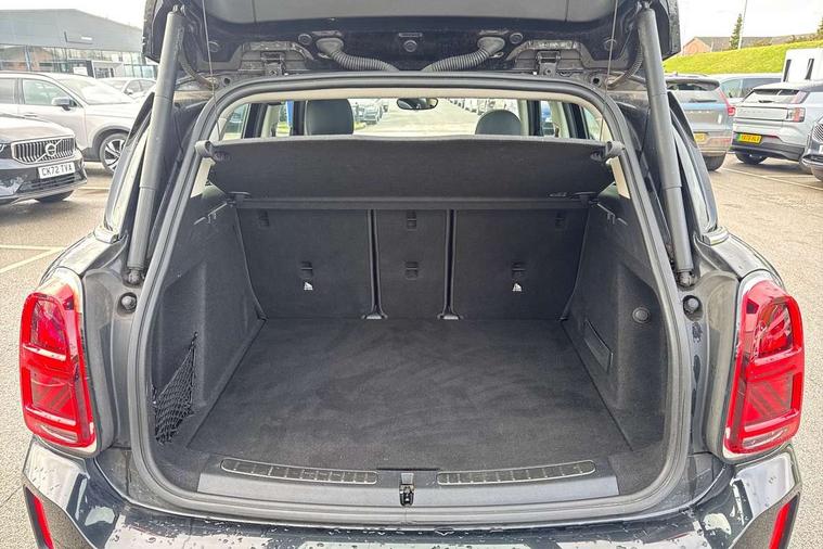 Active Guard incl speed limiting and lane departure functions with auto steering, and front collision warning with brake intervention, Automatic start/stop function with brake energy recuperation, Compatible mobile phone bluetooth with audio streaming, Cruise control with brake assist, Electro-mechanical speed dependant steering assistance, Instrument cluster, Mini E-call, On board computer, Rear parking distance control, 51 Litre fuel tank, Automatic transmission, Double Vanos system, Fully variable valve control, High precision injection, Performance Control, FM tuner and DAB digital radio, 3rd brake light, Body colour fuel filler cap, Day time driving lights, Door sill strips, Dynamic brake lights, Electric windows, Heated rear window, Heated windscreen washer jets, LED fog lights, LED Headlights, Left exhaust tailpipe with chrome finisher, Model logo, Model logo on Tailgate, Radiator grille, Rain sensor with auto headlights, Rear fog lights, Rear side wing doors, Rear window wiper, Side scuttle panel with integrated indicator, Split rear doors, Sun/heat protection glass, White indicator lenses, 12V socket in centre console, 3 seat bench in 2nd row, 3 spoke sport leather steering wheel + limiter function and audio controls, 360L luggage compartment capacity, 4 lashing eyes in luggage compartment, 40:20:40 split folding rear seats, Chrome interior highlights, Colour line - Carbon black, Cupholders, English handbook, Floor mats, Front headrests, Glove compartment, Headliner with grab handles and clothes hooks, Height and length steering column adjustment, Interior lighting with 12 basic colours selectable via toggle switch in roof, Isofix rear child seat preparation, Leather gearshift lever and handbrake gaiters, LED reading lights, vanity mirror lights, front foot well light and spotlight on front seats, Manual air conditioning, Mechanical seat adjustment, driver seat height adjust, forward/back and front seats backrest, Multifunction steering wheel, Passenger seat height adjuster, Rear headrests, Single front passenger seat, Storage compartments in doors, Sunvisors with vanity mirrors, Excitement pack - Countryman, Navigation pack - Countryman, 2 tone horn, 3 point seatbelts on all seats, 6 Airbags - front, side, head and seat belt tensioners, Anti-lock braking system (ABS), DSC - Dynamic Stability Control, Electronic handbrake, Front and rear disc brakes, Hill start assist, Manual rear child locks, Tyre pressure monitoring system, Alarm system with tilt sensor, monitoring doors, bonnet interior and tailgate, Auto drive away locking, Deadlocking function, Electronic vehicle immobiliser, Locking wheel bolts, Start/stop toggle with keyless go, Tool kit,