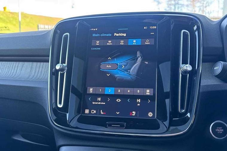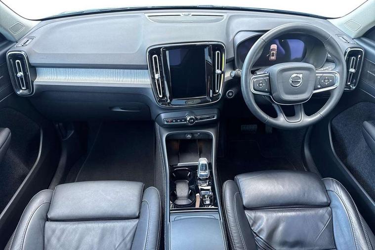 12.3" Progressive Driver Display, 360 degree surround view parking camera with side proximity sensors, 9" centre console portrait touch screen, Adjustable steering wheel force, Bluetooth hands free telephone kit, E-call, Front park assist, Google automatic services - Nav with google maps, apple carplay/android auto, voice recognition with google assistant, Hands free power tailgate, Lane keep assist with driver alert control, Oncoming Lane Mitigation, Rear park assist, Speed limiter, Speed sensitive steering, Wireless/Inductive Mobile Phone Charging, Dynamic chassis, DAB Digital radio, Premium Sound by Harman Kardon, Dolby Pro Logic II Surround Sound, Dirac Unison, 12 speakers/600W and subwoofer, Steering wheel mounted remote controls, Active bending pixel LED headlights with adaptive shadow technology, Active high beam incorporating daytime running lights, Adaptive brake lights with high level LED brake lights, Auto dimming interior mirror, Automatic headlamp levelling, Dark tinted windows for rear door side windows and cargo compartment, Front aluminium tread plates, Front and rear electric windows, Headlight cleaning system, High gloss black front and rear skid plate, High gloss black mesh front grille with high gloss black surround, High gloss black window trim, Home safe and approach lighting, Integrated roof rails in high gloss black, LED front fog lights, Power glass tilt and slide panoramic sunroof with sun curtain, Puddle lights, Rain sensor with automatic windscreen wiper activation, Rear side wing doors, Rear wiper, Roof antenna, Roof spoiler, Visible VIN plate, 12V socket in front tunnel console and luggage compartment, 2-Zone electronic climate control with CleanZone air quality system and pollen filter, 3 seat bench in 2nd row, 3 Spoke tailored steering wheel with chrome trim, 60/40 versatile split folding rear seat, A-pillar parking ticket holder, Ambient front door and instrumental panel lighting, Centre console cupholders and storage, Flexible load floor and grocery bag holder, Floor mats, Front door pocket and front cupholder illumination, Front footwell illumination, Front headrests, Front reading light and theatre lighting, Front seat cushion extensions, Front tunnel pocket, Glovebox bag hook, Heated front seats, Height adjustable passenger seat, Height/reach adjustable steering column, High gloss centre tunnel deco, Illuminated glovebox, Illuminated luggage compartment, Illuminated tailgate, Illuminated vanity mirrors, Integrated waste bin, Isofix attachments on outer rear seats, Load protection net, Multi directional lumbar support, Power driver seat with memory + exterior mirrors memory, Power folding rear headrests, Power passenger seat, Rear armrest / integral cup holders / storage tray, Rear reading and courtesy lights, Single front passenger seat, Underfloor cargo storage, Climate pack without heated front seats - XC40, Driver assist pack - XC40, 3x3 point rear seatbelts, City safety with steering support with Pedestrian + cyclist + front collision warning with full auto brake and rear auto brake, Drivers knee airbag, Dual stage driver/passenger airbags, Electronic parking brake with auto hold, First aid kit, Front and outer rear seatbelt reminder and pretensioners, Front seats SIPS airbags, Hill descent control, Hill start assist, Inflatable curtain, Passenger airbag cut-off device, Power child locks on rear doors, Road sign information display, Run off Road Mitigation, Run off Road Protection, SIPS (Side Impact Protection System), Slippery road and hazard light alert, Stability and Traction Control with Spin control, Engine Drag Control and Corner Traction Control, Tyre pressure monitoring system, Vehicle deceleration control with Anti-lock Brake System, Electronic Brake Distribution and Emergency Brake Assist, Warning triangle, WHIPS whiplash protection system - front, Anti-theft alarm including immobiliser/volume sensor + level sensor, Key integrated remote control central locking + fuel flap with deadlocking system and auto open/close power windows, Keyless drive includes keyless entry and keyless start, Locking wheel nuts,