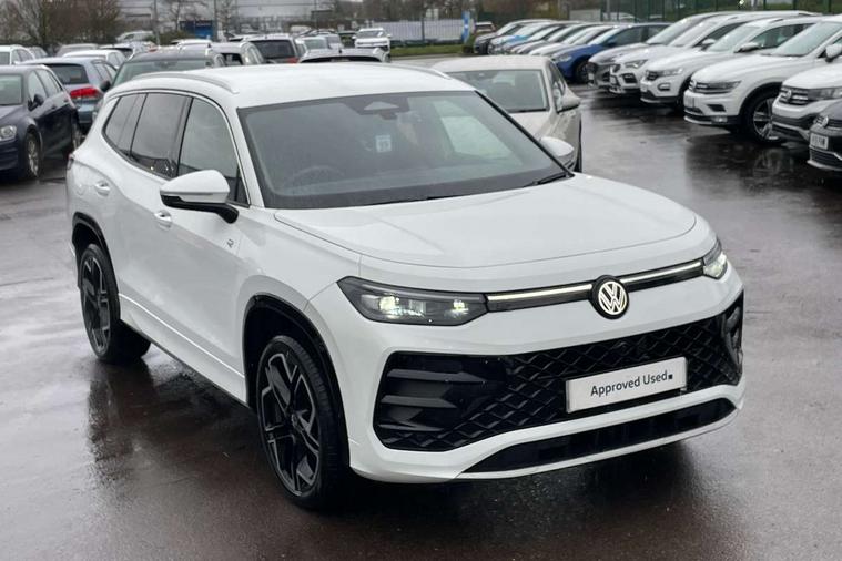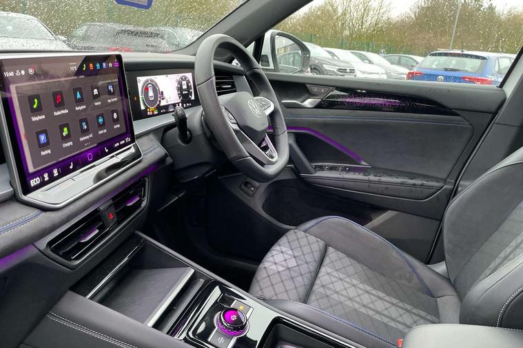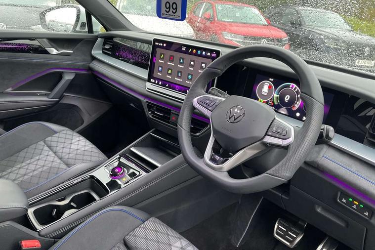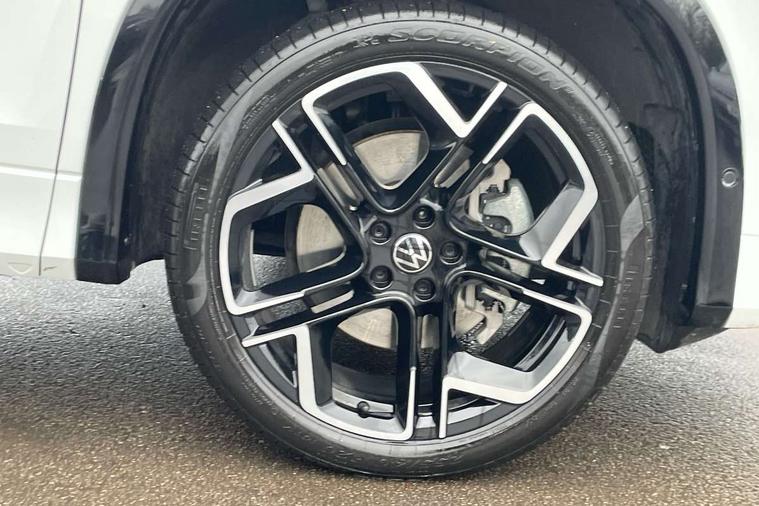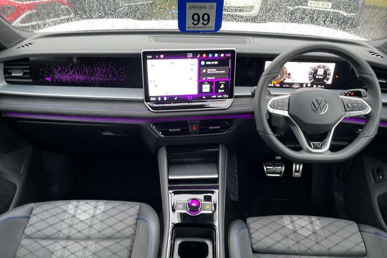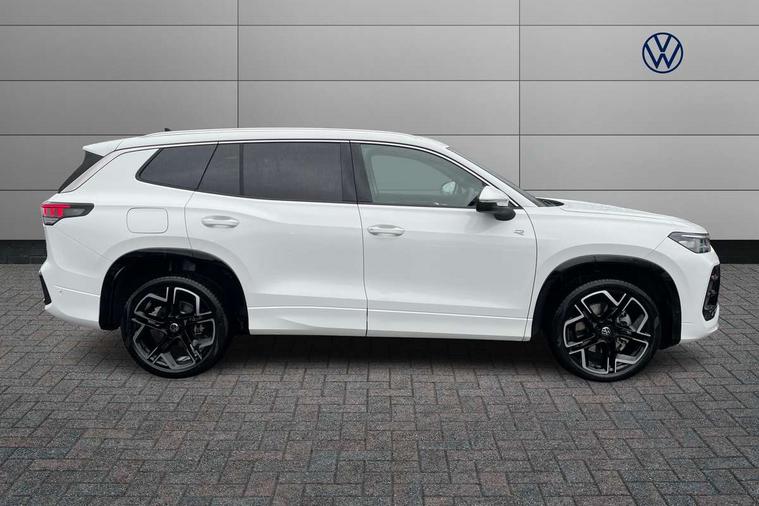 Adaptive cruise control (ACC), Digital Cockpit Pro - 10.25" high resolution dash display screen with customisable menus and information, Driver alert system, Driver attention monitoring system, Dynamic road sign display, E-Sim card for online connectivity, eCall emergency call system, Lane change system, Side assist, Rear traffic alert and Exit warning system, Multifunction front facing camera, Oncoming vehicle braking when turning including swerve support, Progressive steering, Start/stop system with regenerative braking, Voice activation spoken voice commands for telephone and navigation system, Warning signal and warning light for front and rear seatbelts not fastened, Wireless App-Connect, Adaptive chassis control DCC pro includes driving mode selection, Charging cable Mode 2 Type 2 / G (10A), Charging cable Mode 3 Type 2 / 3 (16A), Front shock absorption G08, Front wheel drive, Rear shock absorption, Digital radio reception (DAB), Diversity antenna for FM reception, Air intake with Chrome trim, Auto dimming interior rear view mirror, Automatic headlight control system, Body colour door handles, Chrome moldings on the side windows, Coming/leaving home lighting function, Dynamic headlight range control with dynamic cornering light, Exterior mirrors convex on the left and aspherical on the right, Heat insulating glass in side and rear windows, Illuminated Volkswagen logo rear with animation, Laminated safety glass windshield, heat insulating, LED 3rd brake light, LED separate signature day time running light, Puddle lights, Rain sensor windscreen wipers, Rear fog light on one side, reversing light on both sides, Rear side wing doors, Rear wiper, Reverse activated passenger's door mirror, Surround lighting with welcome light, Volkswagen logo in front, illuminated lighting animation with wake up/goodbye scenario and illuminated door handles, 10 colour interior ambient lighting, 12V outlet in center console rear and in luggage compartment, 3 rear headrests, 3 rear seat bench in 2nd row, split folding, longitudinally movable and folding with load-through hatch, Black roof lining, Brushed stainless steel pedals, Carpet mats, front and rear, Centre console with illuminated storage compartment with sliding cover and two drinks holders, Chrome elements on the mirror switch and power window switches and door pulls, Door and side trim panel insert in Art velour, Flat luggage compartment floor, Front centre armrest, Front scuff plates in aluminium, ISOFIX anchors for child seats on outer rear seats and front passenger seat compatible with i-Size, Mechanical rear seat release, Power adjustable lumbar support in front, Single front passenger seat, Sports comfort seats in front, Sun visors with illuminated vanity mirrors, 3 Point seat belts in front with pretensioners, 3 point seatbelts in outer rear with ECE label, Autonomous emergency braking front assist with pedestrian and cyclist monitoring, Driver and front passenger airbag with front passenger airbag deactivation, Electronic parking brake with auto hold, First aid kit with warning triangle and safety vest, Front and rear curtain airbags, Front and rear side airbags, Front centre airbag, Front disc brakes, Hill start assist, Rear disc brakes, Two tone horn, Decorative material set R-Line, Interior door handle in matte chrome, Tool kit for tyre mobility set, Tyre mobility kit including compressor and sealing foam. In lieu of spare wheel,