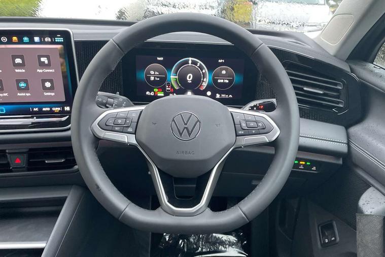 Adaptive cruise control (ACC), Advanced driver attention and drowsiness monitor, Bluetooth mobile phone interface, Car2X technology, Digital Cockpit Pro - 10.25" high resolution dash display screen with customisable menus and information, Dynamic road sign display, E-Sim card for online connectivity, eCall emergency call service, Front Assist - Autonomous emergency braking with pedestrian and cyclist monitoring, Lane change system, Side assist, Rear traffic alert and Exit warning system, Lane keeping system Lane Assist, Oncoming vehicle braking when turning including swerve support, Park assistance plus with front and rear parking sensors, Power assisted steering with speed sensitive, Start/stop system with regenerative braking, Warning signal and warning light for front and rear seatbelts not fastened, Wireless App-Connect, Adaptive chassis control DCC pro includes driving mode selection, Charging cable Mode 3 Type 2 / 3 (16A), Front shock absorption, Front wheel drive, Rear shock absorption, Digital radio reception (DAB), Diversity antenna for FM reception, Auto dimming interior rear view mirror, Automatic headlight control system, Body coloured bumpers and air intake with chrome trim, Body coloured door handles, Body-coloured exterior mirror housings, Coming/leaving home lighting function, Heat insulating glass in side and rear windows, Heat insulating windshield, Heated rear window, High level 3rd brake light, Illuminated door handle recesses, Illuminated lightline between headlamps, Puddle lights and reverse activated passengers door mirror, Rain sensor windscreen wipers, Rear fog light on one side, reversing light on both sides, Rear side wing doors, Rear wiper, 12V outlet in center console rear and in luggage compartment, 12V socket in centre console, 3 bench rear seats in 2nd row, Air care climatronic 3 zone air conditioning system with rear air conditioning control panel, Carpet mats, front and rear, Ceramique headlining, Door and side trim panel in foam film and woven fabric, Front centre armrest, ISOFIX anchors for child seats on outer rear seats and front passenger seat compatible with i-Size, Mechanical rear seat release, Power adjustable lumbar support in front, Rear bench seat, split folding, longitudinally movable and folding with load-through hatch and centre armrest, Safety optimised front head restraints, Single front passenger seat, Sun visors with illuminated vanity mirrors, Three rear head restraints, Variable luggage compartment floor, Comfort package with park assist plus and Safelock - Tiguan, Design package - Tiguan Life/Match, 3 point seat belt for centre rear seats, 3 Point seat belts in front with pretensioners, 3 point seatbelts in outer rear with ECE label, Driver and front passenger airbag with front passenger airbag deactivation, Electronic parking brake with auto hold, Front and rear curtain airbags, Front and rear side airbags, Front centre airbag, Front disc brakes, Hill start assist, Manual child proof rear door locks, Rear disc brakes, Two tone horn, Warning triangle, Soul instrument panel, Tyre mobility kit including compressor and sealing foam,