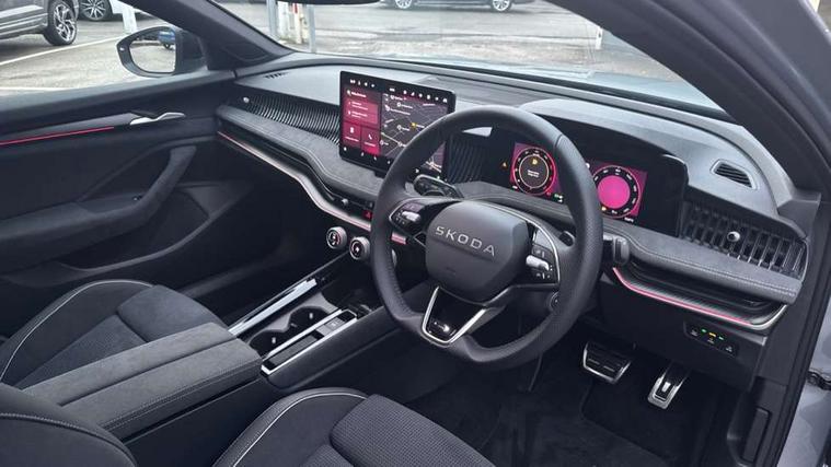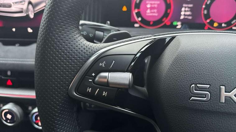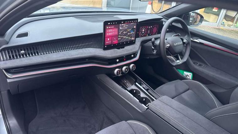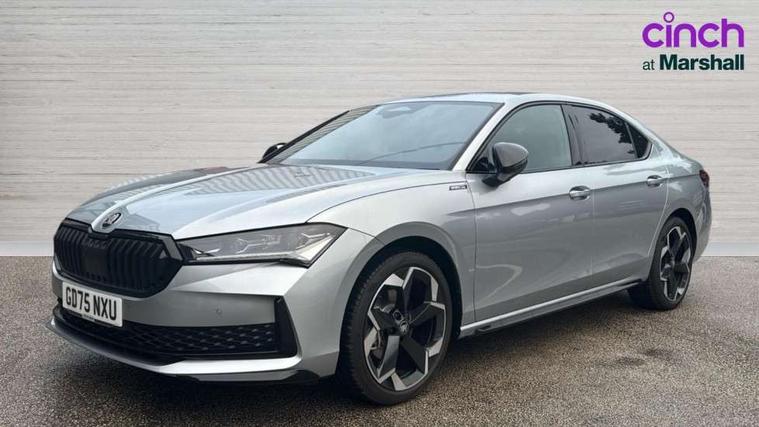 13" touchscreen display with satellite navigation, 4x USB-C ports (2x in front centre console and 2x in rear) (45W), Adaptive cruise control with speed assist, lane assist plus and traffic tram assist, Blind spot detection with door exit warning, Bluetooth system, CareConnect and Emergency Call, ChatGPT functionality, Driver fatigue sensor, Easy boot close funtion, Front assist with extended predictive pedestrian protection, Front cross traffic assist, PAS, Quick start all heating software functionality, Stop/start engine system, Traffic sign recognition, Turn assist with evasive assistance, Virtual Cockpit - 10.25" digital display, Voice control system, Washer for rear camera, Wireless charging for one smartphone (15W) with cooling function, Wireless smartlink apple carplay, SmartLink+ android auto, Dynamic chassis control plus with progressive dynamic steering, DAB Digital radio, Display cleaner, FM radio connection, Web radio connection, Acoustic side windows and interior noise suppression, Backdrop lighting, Black exterior styling window and grille surrounds, Body colour door handles, Dynamic range control with poor weather light and integrated fog light, Electrically adjustable, heated, folding and driver side auto-dimming door mirrors with memory function, integrated indicators and logo projection, Frameless auto-dimming rear view mirror with USB-C, Gloss black door mirrors, Ice scraper in fuel tank cap, LED 3rd brake light, Light assist with High beam control, Light assistant (coming/leaving home/tunnel light), Privacy glass, Rear fog lights (x2), Rear side wing doors, Skoda lettering in black, Sportline badging, Sports bumpers, Windscreen wipers with rain sensor, 12V socket 1x centre console 1x boot, 14-way electrically adjustable, memory, front seats with 4-way pneumatic lumbar support, and extendable thigh support with smart comfort entry aid, 2x cargo elements in boot, 2x light in boot, 3 seat bench in 2nd row, 60:40 Split folding rear seats, Aluminium pedals, Bottle holders in the front doors 1.5 litre bottle and rear 1.5 litre bottle, Cup holder in front with easy open mat, Front armrest with storage box, Front sports seats, Heated and ventilated front seats, Height adjustable front and rear head restraints, Illuminated glovebox, Interior lights with control switches, Isofix child seat fittings in outer rear and front passenger seats, LED front and rear reading lights, Single front passenger seat, Skoda lettering on steering wheel, Storage compartment with cover, Storage pockets on back of front seats, Sun visors with illuminated vanity mirrors, Ticket holder on A Pillar, Tri zone climate control, Umbrella in driver's door, Light and view package - Superb, Transport package - Superb Hatchback, 3 rear seatbelts, 8 Airbags - Front driver and passenger, front side driver and passenger, centre, curtain front and rear, drivers knee, Crew protect assist, Driver and passenger seatbelts with warning light, Electronic parking brake, ESC including ABS, EBV, MSR, ASR, EDS, HBA, DSR, RBS, CBC, multi-collision brake (MKB) and Auto hold, Hill hold assist, Power operated child lock in rear doors, Alarm with interior monitoring tilt sensor and back up horn, Backrest remote release from trunk, Electronic engine immobiliser, Keyless start/stop, Remote central locking with SAFE system, Third key, Walk away locking, Decorative front door sills, 19" Torcular polished black alloy wheels with anti theft wheel bolts,