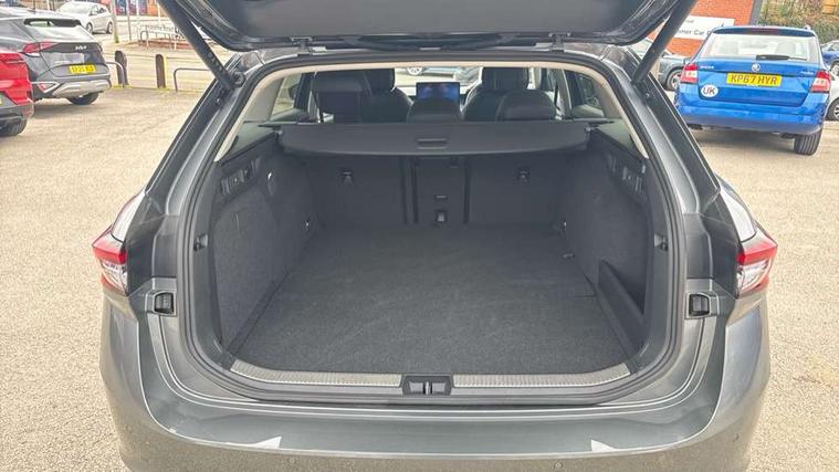 13" touchscreen display with satellite navigation, 4x USB-C ports (2x in front centre console and 2x in rear) (45W), Adaptive cruise control with speed assist, lane assist plus and traffic tram assist, Blind spot detection with door exit warning, Bluetooth system, CareConnect and Emergency Call, ChatGPT functionality, Drive mode selection, Driver fatigue sensor, Electrically operated boot with virtual pedal, Front assist with extended predictive pedestrian protection, Front cross traffic assist, PAS, Quick start all heating software functionality, Rear view camera with washer, Stop/start engine system, Traffic sign recognition, Turn assist with evasive assistance, Virtual Cockpit - 10.25" digital display, Voice control system, Wireless charging for one smartphone (15W) with cooling function, Wireless smartlink apple carplay, SmartLink+ android auto, DAB Digital radio, Display cleaner, FM radio connection, Web radio connection, Acoustic side windows and interior noise suppression, Backdrop lighting, Body colour door handles, Body coloured door mirrors, Chrome roof rails, Chrome window surround, Dynamic range control with poor weather light and integrated fog light, Electrically adjustable, heated, folding and driver side auto-dimming door mirrors with memory function, integrated indicators and logo projection, Frameless auto-dimming rear view mirror with USB-C, Front windscreen with heat-insulating glass, Ice scraper in fuel tank cap, LED 3rd brake light, Light assist with High beam control, Light assistant (coming/leaving home/tunnel light), Privacy glass, Rear fog lights (x2), Rear roof spoiler, Rear side wing doors, Rear windscreen wiper, Tow bar preparation, Unique dark chrome design logo on alloy wheels, Unique dark chrome grille surround with dark chrome rib elements, Windscreen wipers with rain sensor, 12V socket 1x centre console 1x boot, 12V socket and 2x cargo elements in boot, 14-way electrically adjustable, memory, front seats with 4-way pneumatic lumbar support, and extendable thigh support with smart comfort entry aid, 2 spoke multifunction steering wheel with DSG paddles, 3 seat bench in 2nd row, 4x foldable bag hooks in boot, 60:40 Split folding rear seats, Advanced massage function for front seats, Bottle holders in the front doors 1.5 litre bottle and rear 1.5 litre bottle, Cup holder in front with easy open mat, Front and rear footwell illumination, Front armrest with storage box, Front sports comfort seats, Heated and ventilated front seats, Height adjustable front and rear head restraints, Height adjustable front passenger seat, Illuminated glovebox, Interior lights with control switches, Isofix child seat fittings in outer rear and front passenger seats, LED front and rear reading lights, Multi colour ambient lighting, Single front passenger seat, Skoda lettering on steering wheel, Storage pockets on back of front seats, Sun visors with illuminated vanity mirrors, Ticket holder on A Pillar, Tri zone climate control, Umbrella in driver's door, Light and view package - Superb, Transport package - Superb Estate, 3 rear seatbelts, 8 Airbags - Front driver and passenger, front side driver and passenger, centre, curtain front and rear, drivers knee, Crew protect assist, Driver and passenger seatbelts with warning light, Electronic parking brake, ESC including ABS, EBV, MSR, ASR, EDS, HBA, DSR, RBS, CBC, multi-collision brake (MKB) and Auto hold, Hill hold assist, Power operated child lock in rear doors, Alarm with interior monitoring tilt sensor and back up horn, Backrest remote release from trunk, Electronic engine immobiliser, Keyless start/stop, Remote central locking with SAFE system, Third key, Walk away locking, Decorative front door sills, Tyre repair kit,
