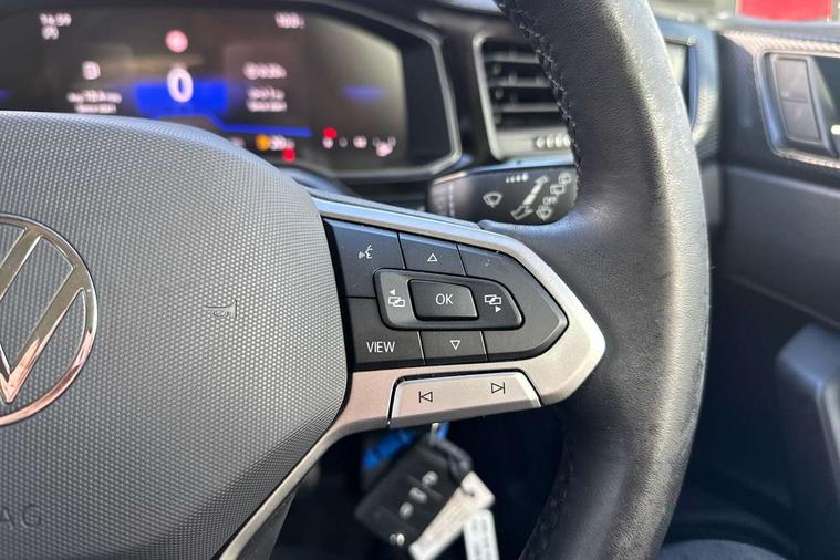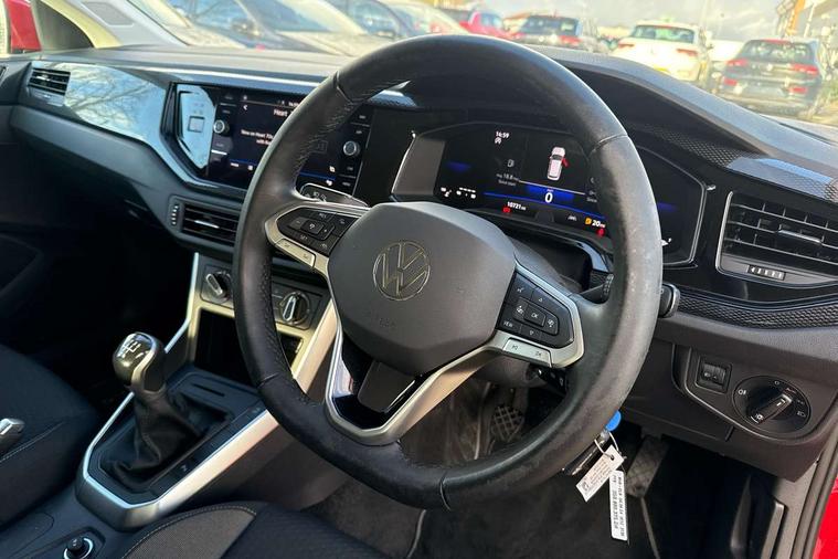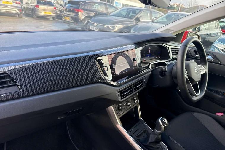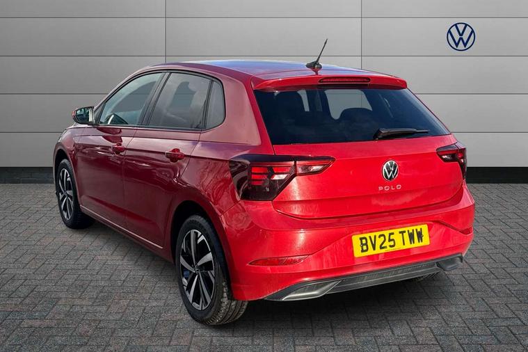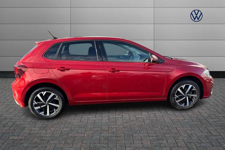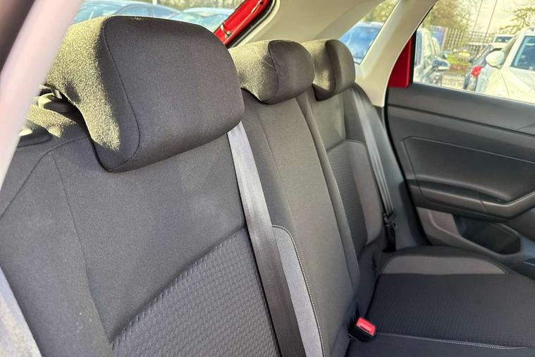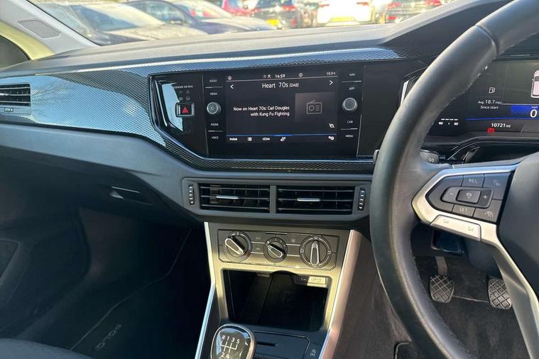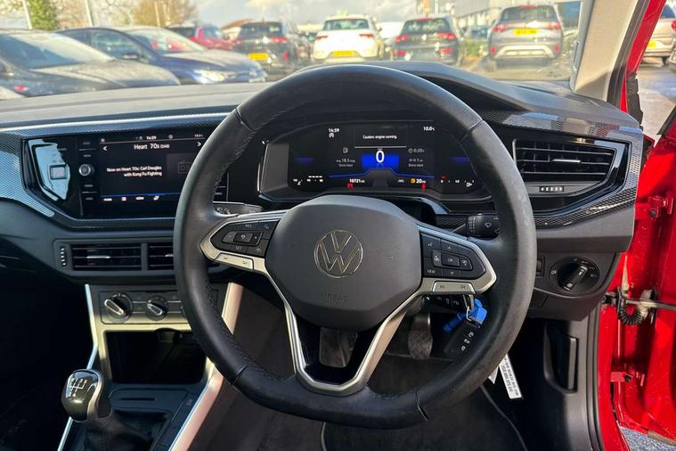 Adaptive cruise control without follow-to-stop and speed limiter, Advanced driver attention and drowsiness monitor, Bluetooth mobile phone interface, Dynamic road sign display, Emergency call service, Multifunction front facing camera for distance control, Park distance control, Power assisted speed sensitive steering, Preparation for navigation system with media and internet package, Preparation for We connect and We connect plus, Rear view camera, Speedo and rev counter, electronic odometer, trip, service interval display and exterior temperature gauge, Standard rear axle, Travel Assist - Lane keeping system and traffic jam assist, Travel assist including emergency assist, Trip computer, Warning signal and warning light for front and rear seatbelts not fastened, Washer fluid level indicator, Wireless app connect, Front wheel drive, Rear shock absorpion, Start-stop system with battery regeneration (recuperation - energy recovery during braking), DAB Digital radio, Diversity antenna for FM reception, Front and rear 6 speakers, Automatic dimming interior rear view mirror, Automatic headlight control with LED separate daytime running lights with coming/leaving home function, Body colour bumpers with chrome inserts, Body colour door handles, Body colour door mirrors, Electric front windows, Engine badge deletion, Headlight range adjustment, Heat insulating and laminated safety glass windshield, LED Headlights, LED rear combination lamps, Power folding adjustable/heated exterior mirrors and front passenger exterior mirror lowering function, Rain sensor, Rear electric windows, Rear fog light, Rear side wing doors, Rear tinted glass from B-pillar backwards approx 65% tinted, Rear windscreen washer and wiper with interval delay, Third brake light, 12V power socket in centre console, 2 front and 2 rear reading lights with switch off delay and dimmer, 2 USB-C ports in the front, 2 USB-C charging sockets on the center console in the rear, 3 rear head restraints, 60/40 split folding rear seat and rear seat bench not split, Ceramique roof lining, Chrome plated radiator grille inserts, air vent surrounds and light switch surrounds, Door and side trim panel, Driver and front passenger seat height adjustment, Driver/passenger sunvisors with illuminated vanity mirrors, Front centre armrest, Front seat backrest storage pockets, Front standard seats, Handbrake lever handle in leather, Hartley/Thomas cloth upholstery, Headliner in recycled material, Isofix child seat preparation easy-fit (for two outer rear seats, and front passenger seat) compatible with I-size, Leather trimmed gear knob, Luggage compartment cover, Luggage compartment lighting, Removable luggage compartment floor, Single front passenger seat, Standard climatic zones, Standard pedal cluster, Three spoke leather wrapped multifunction steering wheel, Light and vision pack - Polo, 3 point height adj front seatbelts + pretensioners, 3 point seat belt for centre rear seat, 3 point seatbelts, outer rear with ECE lable, ABS, Driver and front passenger airbag with front passenger airbag deactivation, Drivers and front passengers safety optimised head restraints, ESC (Electronic stability control) + EDL (Electronic Differntial lock) and ASR (Traction control), Extended and predictive pedestrian/ cyclist protection, Front assist with autonomous emergency braking (for Adaptive Cruise Control ACC up to 130 mph), Front curtain and side airbags with center airbag, Front disc brakes, Hill hold control, Manual child lock in rear doors, Rear drum brakes, Single tone horn, Tyre pressure loss indicator, Alarm with interior protection, Anti-theft alarm system with interior monitoring, backup horn, and towing protection, Anti-theft wheel bolts, Electronic engine immobiliser, Lava stone black gloss/matt decorative inserts in dash and front door panels, 16" Torsby alloy wheels, Low rolling resistance tyres,
