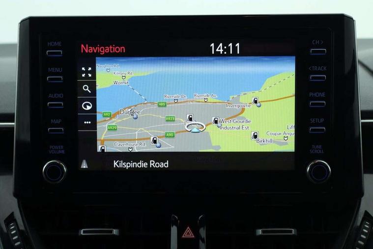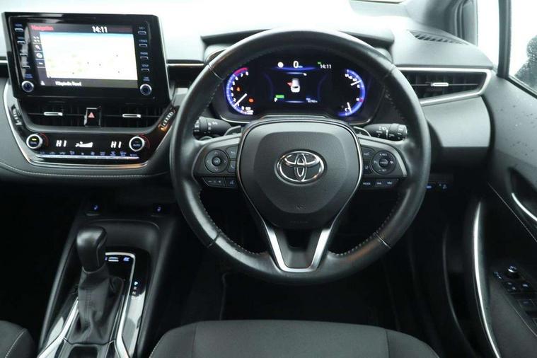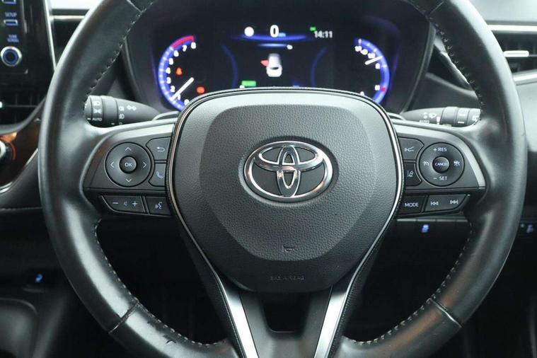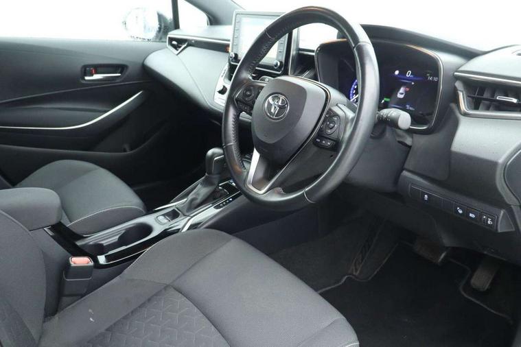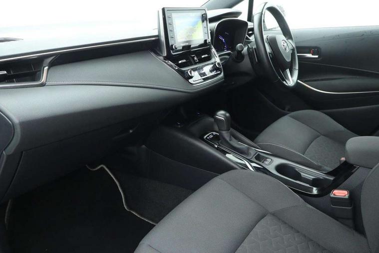 Adaptive cruise control, Bluetooth telephone connectivity, E-call, Electrically assisted power steering, Front parking sensor, Intelligent park assist, Push button start, Rear parking sensor, Reversing camera, Voice activation, Vehicle Stability Control (VSC), 2 ring combimeters with 7" colour TFT screen, 6 speakers, 8" multimedia and back monitor, AM/FM radio, DAB Digital radio, Toyota touch 2 with go navigation system, USB/AUX connectivity, Anti-jam protection on power windows, Auto dimming inside rear view mirror, Auto high beam, Auto up and down function on all power windows, Automatic folding mirrors, Automatic headlights, Automatic rear view mirror, Automatic wipers, Body coloured bumpers, LED daytime running lights, LED fog lights, LED Headlights, LED rear combi lights with LED lightguide, Power front windows, Power rear windows, Privacy glass, Rain sensor, Rear window wiper, Shark fin antenna, 3 rear headrests, Clean air filter, Dual zone automatic air conditioning, Fabric upholstery, Front head restraints, Heated seats, ISOFIX seat fixing (2 fixings on rear outer seats), Leather steering wheel and gear knob, Pollen filter, Power lumbar support, Tilt/telescopic steering column, Whiplash Injury Lessening (WIL) feature (active headrest) for seats, Parking pack - Corolla, Toyota safety sense 2 - Corolla, 3x3 point rear seatbelts, Anti lock braking system + Electronic brake force distribution, Brake assist function, Electronic parking brake, Front passenger airbag on/off switch, Front seatbelt reminder, HAC-Hill-start Assist Control, Rear seat belt reminder, Seatbelt pretensioners and force limiters, Supplemental restraint system (SRS) airbags - 7 airbags including driver, front passenger, curtain, side and knee airbags, Traction control, Tyre pressure warning system, Alarm/immobiliser, Space saver spare wheel,