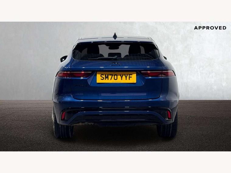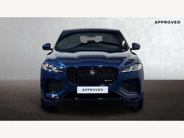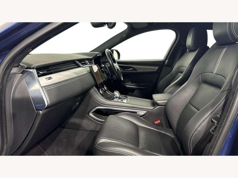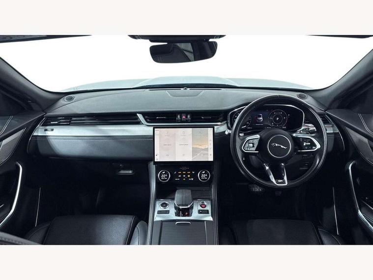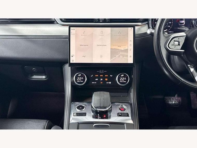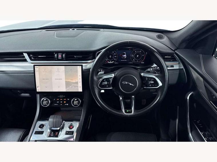 11.4" touchscreen, 3D surround camera, Android Auto, Apple car play, Bluetooth connectivity, Driver alert system, Driver condition monitor, Eco driving style assistant, Electric power assisted steering, InControl remote, Jaguar Toggle shift selector, Lane departure warning system, Lane keep assist, Outside temperature gauge, Personalisation profile management, Pivi pro connected navigation system with app interface and media storage, Pro services and wifi hotspot, Push button starter, Service interval indicator, Speed proportional steering, Start up sequence with movement in dials and lighting, Traffic sign recognition with adaptive speed limiter, Trip computer, Voice control system, 8 speed automatic transmission, All terrain progress control, All Wheel Drive (AWD), Open differential with torque vectoring by braking, AM/FM radio, Bluetooth streaming, DAB Radio (Digital Audio Broadcasting), Dynamic volume control, InControl apps, InControl protect, iPod integration, 3 flash lane change indicators, Approach Illumination, Auto dimming rear view mirror, Automatic headlights, Body colour door mirrors, Electric windows with one touch open/close and anti trap, F-Pace badge, Green tinted glass, Heated front windscreen + heated washer jets, Heated rear window with timer, Jaguar script and leaper, LED tail lights, Non acoustic front windscreen, R Dynamic badge on side door, Rain sensor windscreen wipers, Rear fog lights, Rear metal tread plates, Rear wiper, Trailer stability assist, Variable front intermittent wipers, 12V power point front, 3 rear headrests, Air distribution speed, Cabin lighting, Centre armrest console, Centre console with side storage, Door sill tread plates, Fold flat front seats, Front centre armrest with storage compartment, Front door storage space, Glovebox finisher with jaguar script, Heated steering wheel, Hooks in loadspace, Illuminated glovebox, Interior front door handles with separate locking switches, ISOFIX on outer rear seats, Jaguar sense, Luggage tie downs in loadspace, Mist sensing, Multifunction steering wheel, Overhead lighting console, Overhead stowage for sunglasses, Passive front head restraints, Premium carpet mats, R-Dynamic branded leather steering wheel, Rear air vents, Rear armrest with twin cupholders, Rear centre headrest, Rear door storage space, Reversible boot floor, Satin chrome gearshift paddles, Shopping bag hook, Sunvisors with illuminated vanity mirrors, Twin front cupholders with cover, Online Pack with data plan - F-Pace, 355mm front brakes and 325mm rear brakes, 3x3 point rear seatbelts, ABS, All surface progress control (ASPC), Brake pad warning light, DSC - Dynamic Stability Control, Electric parking brake (EPB), Front airbags with passenger seat occupant detector, Front and rear seatbelt reminder, Front side airbags, Full length side window curtain airbag, Hill launch assist, Power operated child locks, Torque vectoring brake, Traction control, Tyre pressure monitoring system, Immobiliser, Keyless start, Locking wheel nuts, Perimeter alarm, Remote central locking, Valet mode,