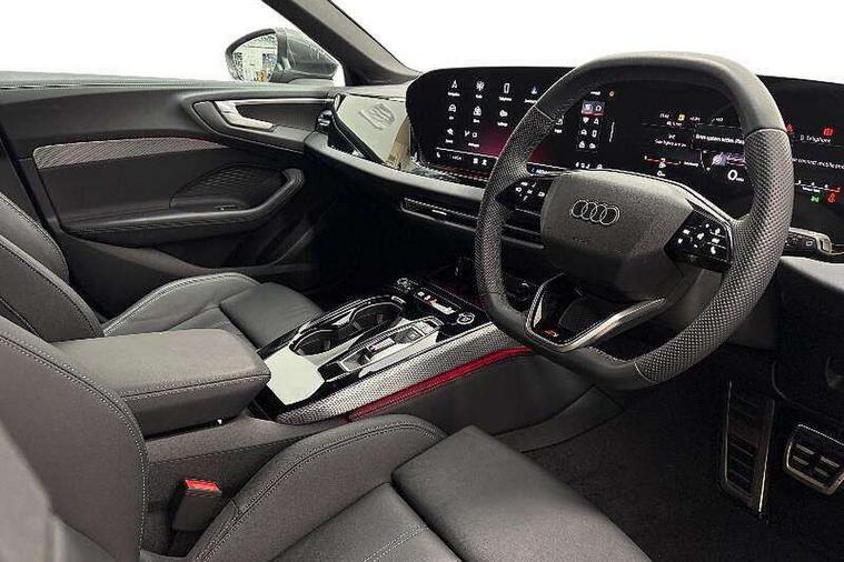 Adaptive cruise control, Advanced driver attention and fatigue montior, Audi application store, Audi assistant, Audi connect emergency call and service, Audi drive select, Audi smartphone interface, Audi virtual cockpit plus with 11.9" OLED colour display, Automatic start/stop system with coasting functionality, Camera based traffic sign recognition, Intersection assist, Lane departure warning, MMI navigation plus with high resolution 14.5" OLED touchscreen colour display, Park assist plus, Parking system plus with 360 display, Progressive steering with servotronic, Rear view camera, Swerve assist and turn assist, Traffic sign based speed limiter, Sports suspension lowered by 20mm, 2 USB-C ports in both the front and rear, Audi sound system impressive sound with 10 loudspeakers including centre speaker and subwoofer, 6-channel amplifier with a total output of 180 watts, DAB digital radio reception, Smartphone compartment with wireless charging, Aluminium roof rails, Aluminium window trims, Auto dimming rear view mirror, Body colour door mirrors, Door mirrors - electrically adjustable, heated, folding and auto dimming on both sides, Front and rear electric windows, Front door sill trims with aluminium inlays, illuminated with 'S' logo, High beam assist, LED headlights Plus incl. digital daytime running lights, turning light, all-weather light, motorway light, manouevring light and intersection light, LED rear lights pro incl. dynamic rear indicators and illuminated light strip with animated coming and leaving home function, LED third brake light, Privacy glass, Rear and side windows with heat insulating glass, Rear side wing doors, Rear wash/wipe, S Line badges on the front wings, S line bumpers, radiator grille and diffuser in phantom black and diffuser insert in matt anthracite, White rhombus logo projection light in exterior mirrors, Windscreen with acoustic glazing, 3 rear headrests, 3 seat rear bench, 3 spoke leather steering wheel with multi-function buttons with touch control, flattened on top and bottom, with S badging and contrast stitching, 3-zone automatic climate control, 40:20:40 split folding rear seat bench with centre armrest and cup holders, Comfort front centre armrest, Front and rear floor mats, Front seats with manual adjustment for position and 4-way electric lumbar support, Front sport seats with integrated headrest and S embossed logo, Headlining in black cloth, Heated front seats, i-Size child seat mounting on the front passenger side and outer rear seats, i-Size and top tether on the outer rear seats, Luggage compartment lid, electrically opening and closing, Manual steering column height and depth adjustment, Single front passenger seat, Stainless steel pedals and footrest, Steering wheel grips in perforated leather and shift paddles, Ambient lighting package plus - A5, 3x3 point rear seat belts, Driver airbag, Electric child safety locks, First aid kit with warning triangle and vests, Front emergency brake assist, Front passenger airbag, Front passenger airbag deactivation, Front side airbags with head airbag system and front interaction airbag, Hill hold assist, Seat belt monitoring with rear seat occupant reminder, Tyre pressure loss indicator, Anti theft alarm, Anti-theft wheel bolts, Keyless Go, Accent surfaces and control buttons in gloss black, Black dashboard with contrast stitching, Inlays in matt brushed aluminium with linear embossing, anthracite, Softwrap in leatherette with contrast stitching, Upper and lower interior elements in leatherette, Tyre repair kit,
