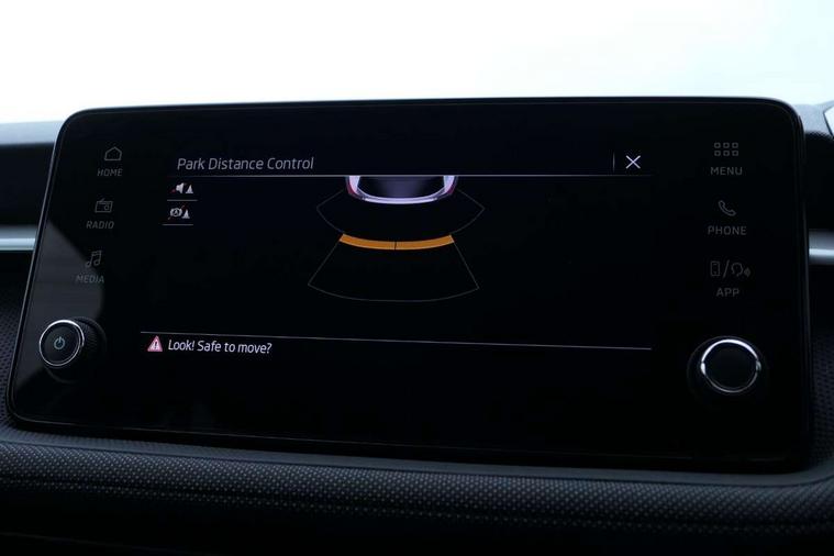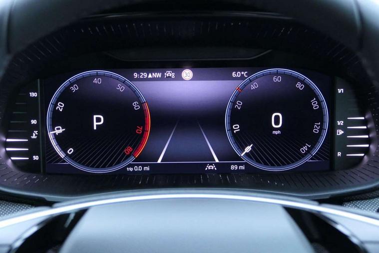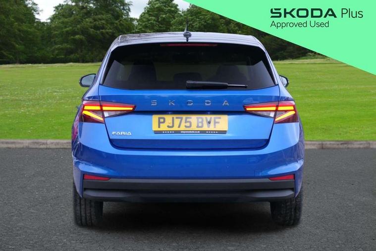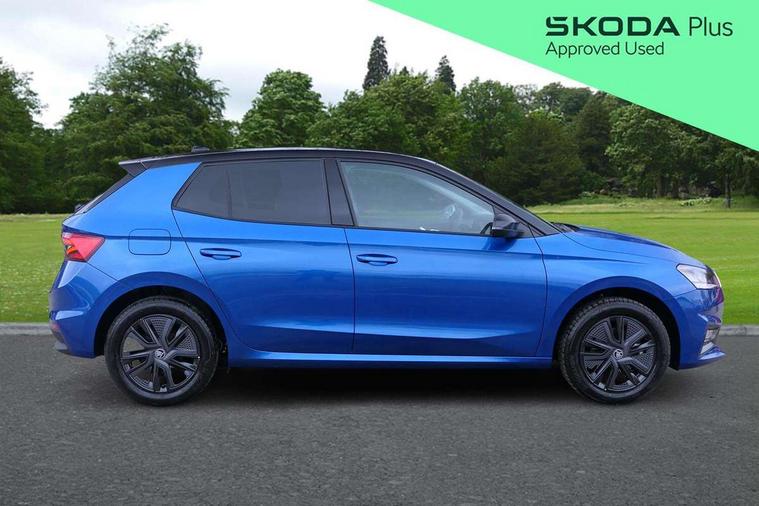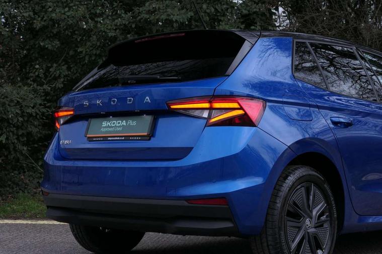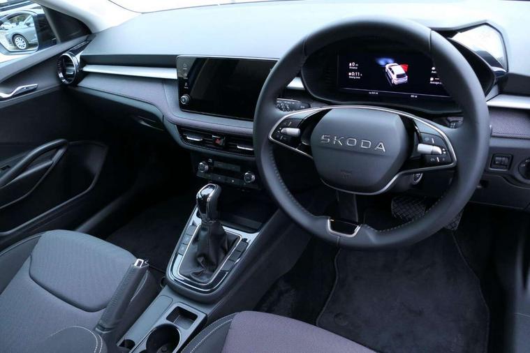 Advanced driver attention and drowsiness monitor, Bluetooth connection, Driver alert system, Electromechanical power steering, Exterior temperature gauge, Service interval indicator, Traffic sign recognition, Virtual cockpit with 10.25" colour display, Wireless SmartLink for Apple CarPlay and Android Auto, 6 Speakers (4 in front and 2 in rear), Auxiliary socket for external MP3 player, DAB digital radio reception, Auto dimming rear view mirror, Body coloured bumpers, Door mirror integrated indicators, Front and rear electric windows, Front window wiper intermittent control, Headlight range control - Automatic, Ice scraper in fuel cap, LED 3rd brake light, LED daytime running lights with coming and leaving home feature, LED rear lights, Privacy glass, Rear LED fog light, Rear side wing doors, Rear window wiper with washing nozzles, Roof mounted spoiler, SKODA tailgate lettering in chrome, Unique dark chrome design logo on alloy wheels, 2 reading lights in front and 2 reading lights in rear, 3 rear headrests, Backrest split and folding, Central console with removable cup holder and storage box, Chrome handbrake release button, Dual zone air conditioning with climatronic electronic control, Fabric upholstery, Front centre armrest, Gearshift knob/handle in leather, Grain satin black interior door handles, Hand brake lever handle in leather, Height adjustable front headrests, Height adjustable front seats, Height adjustable steering wheel, ISOFIX and TopTether anchorage points to the outer rear seats, ISOFIX and TopTether on the front passenger seat, Luggage compartment lighting, Manually adjustable lumbar support in front seats, Pollen filter, Rear seat bench unsplit, Single front passenger seat, Skoda lettering on steering wheel, Storm grey headlining, Sun visors with mirror and airbag label on passenger side, Textile floor mats, Ticket holder, Ambient lighting pack - Fabia Hatchback, 3-point height adjustable front seats belts with pretensioner and force limiter, Automatic warning lights in case of crash, Driver and passengers airbag with switch off function, e-Call+, ESC including ABS, MSR, ASR, EDS, HBA and XDS, Front and rear seat belt warning, FRONT ASSIST (AEB City and AEB Inter Urban), Front side airbags, Head airbags, Hill hold control, One tone horn, Pedestrian protection, Three rear 3-points safety seat belts with pretensioner and force limiter including stop function for outer rear seat belts, Tyre pressure monitoring system, Anti-theft alarm system including immobiliser, interior monitoring, backup horn, and towing protection, Central locking with radio remote control, interior controls, SAFE function and 2 foldable keys, Colour Edition air vents, Grain satin black central console cover, Metallic grey upper decorative trim, Satin black door and side trim panel in front, Textile Kota grey lower decorative inserts, Anti-theft wheel bolts protection, Super-low rolling resistance tyres,