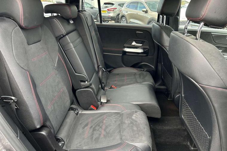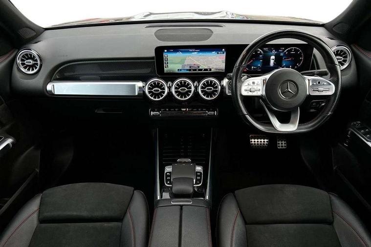10.25" Digital instrument cluster display screen, 10.25" Digital media screen display, Active lane keeping assist, Attention assist - Monitors steering behaviour and long journey fatigue, Brake pad wear indicator warning light, Car wash mode, Cruise control with limiter, DYNAMIC SELECT with a choice of driving modes (ECO, Comfort, Sport and Individual), Easy-pack tailgate, ECO start/stop function, Fluid level warning indicator for fuel, oil, coolant and washer fluid, Hard disk navigation, Hey Mercedes Voice activation, Lamp failure indicator, MBUX augmented reality for navigation, MBUX multimedia system with DAB digital radio and touchpad including satellite navigation, Mercedes me connect including emergency call system, accident recovery, breakdown management and maintenance, Outside temperature gauge, Owners manual and service booklet in English, Parameter steering system, Pre-installation for Vehicle Monitoring, Pre-installation for Vehicle set up, Pre-installation of private car share, Radio aerial integrated into front and rear windshields, Service indicator (ASSYST), Smartphone integration with Apple CarPlay and Android auto, Speed limit assist, Trip computer in multifunction display with current consumption indicator, Wireless charging, 23.8 litre AdBlue fuel tank, 60 litre fuel tank, Comfort suspension, Rear axle multi-link, DAB digital radio tuner, Mercedes Benz advanced sound system (225 W) with 10 speakers, 1 central speaker, speakers on doors, a tweeter on door, one sub woofer + boost amplifier, Pre installation for Mercedes Benz Link, USB (type C) port in front stowage compartment, USB (type C) ports (2) in stowage compartment, Adaptive brake lights, Aerial for GPS, AMG bodystyling door panels black grained with chrome plated inserts, AMG bodystyling front apron with chrome splitter, AMG bodystyling rear apron with diffuser optics and chrome trim element, AMG specific front and rear bumper including underride guard in high gloss chrome, Beltline strips and weather strip in chrome, Body coloured door handles with chrome insert for keyless entry, Body coloured door mirror caps, Electric adjustable and heated door mirrors with integrated LED side indicators, Exhaust system with dual flow exhaust pipes (non-functional), Front and rear electric windows, Headlamp assist automatic headlamp activation, Heated glass rear windscreen + timer control, High level LED third brake light, Interior mirror with black reading lamps and frameless, LED high performance headlamps with integrated LED daytime running lights, LED tail lamp, Polished aluminium roof rails, Pre-installation for trailer coupling, Privacy glass with dark tinting on rear side windows and rear window, Radiator grille with pins in chrome and single louvre with chrome insert, Rain sensor windscreen wipers, Rear fog lamp, Two visible tailpipe trim elements exhaust, 3 spoke multifunction sport steering wheel in nappa leather, Air conditioning - Two zone thermotronic luxury automatic climate control with display, AMG sports pedals with brushed stainless steel surfaces and black rubber studs, Artico man-made leather/Microfibre Dinamica upholstery with red contrast stitching, Automatic child seat recognition sensor, Black floor mats with AMG lettering, Black roof lining, Fore/aft adjustment rear seats, Freight packaging with tie-down hooks, Front centre armrest with stowage, Front door sills with illuminated Mercedes lettering, Front passenger grab handle with brushed side silver chrome, Galvanished gear shift paddles on steering wheel, Heated front seats, Height/reach adjustable steering column, Interior lighting - 64 colour Ambient lighting, Luggage net on driver/front passenger seat backrest, Net in front passenger footwell, Rear armrest with two integral cup holders for drinks, Sports seats with adjustable head restraints, Stowage compartment in centre console, Stowage compartment with retractable cover, Third row of seats for two people on rear seat, Third row of seats with isofix and top tether child seat fixing points, Touchpad on center console, Twin front cup holders, Two outer rear seat isofix and top tether child seat fixing points, Interior lighting with light and sight pack - GLB, Keyless Go comfort pack - GLB, Mirror pack - GLB, Off-road engineering package - GLB, Parking pack - GLB, Seat comfort pack - GLB, 3 rear 3 point seatbelts, Active bonnet pedestrain safety measure which detects an impact and raises bonnet by 65mm, Active brake assist includes forward collision warning system with autonomous braking, Adaptive brake assist with hold function and hill start assist, Airbags - kneebag for driver, Anti-lock braking system (ABS) with brake assist, Childproof locks manually operated for rear doors and electrically operated for rear power windows, Crash responsive emergency lighting, Driver and front passenger head and sidebags, Driver and front passenger windowbags, Dual stage driver and front passenger airbags, Electronic parking brake, Electronic stability programme with acceleration skid control, ESP curve dynamic assist, Front and rear seatbelt reminder, Front brake callipers with Mercedes Benz lettering, Front passenger seat occupancy sensor, Perforated and ventilated front brake discs, Tyre pressure monitoring system, Warning triangle and first aid kit, Remote central locking and crash sensor with emergency opening function, Urban guard vehicle protection - Anti theft alarm system, tow away protection with visual and acoustic warning and alarm siren, Vehicle key with decorative surround in chrome, Black air vents with chrome surround, Carbon structure trim, 19" AMG 5 twin spoke light alloy wheels painted in tantalite grey with high sheen finish, Summer tyres, Tirefit tyre sealant kit,